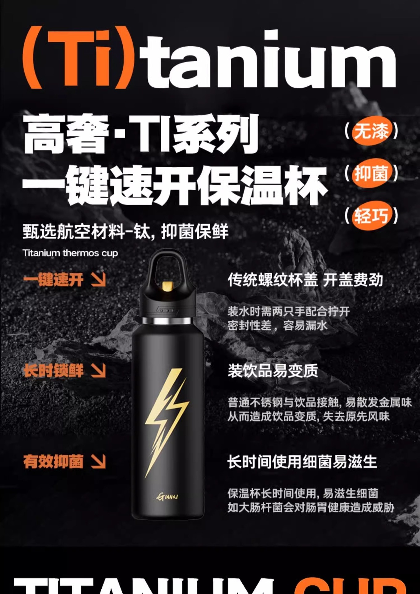 - 【闪电覆钛+独立茶仓】活力橙370ml