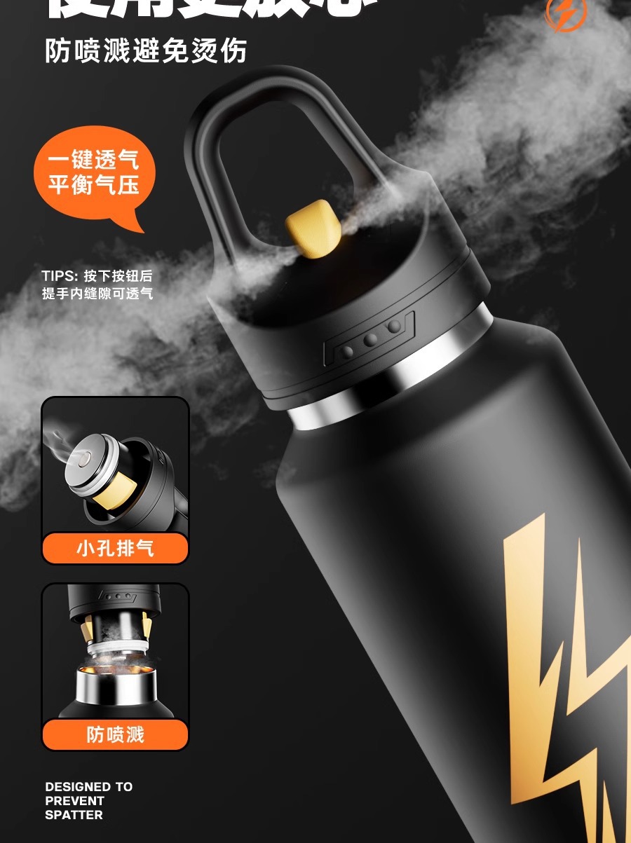 大容量一键开盖保温杯男生运动水杯大容量2025新款覆钛杯泡茶杯子