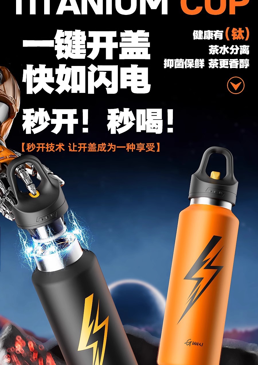 - 【闪电覆钛+独立茶仓】活力橙900ml