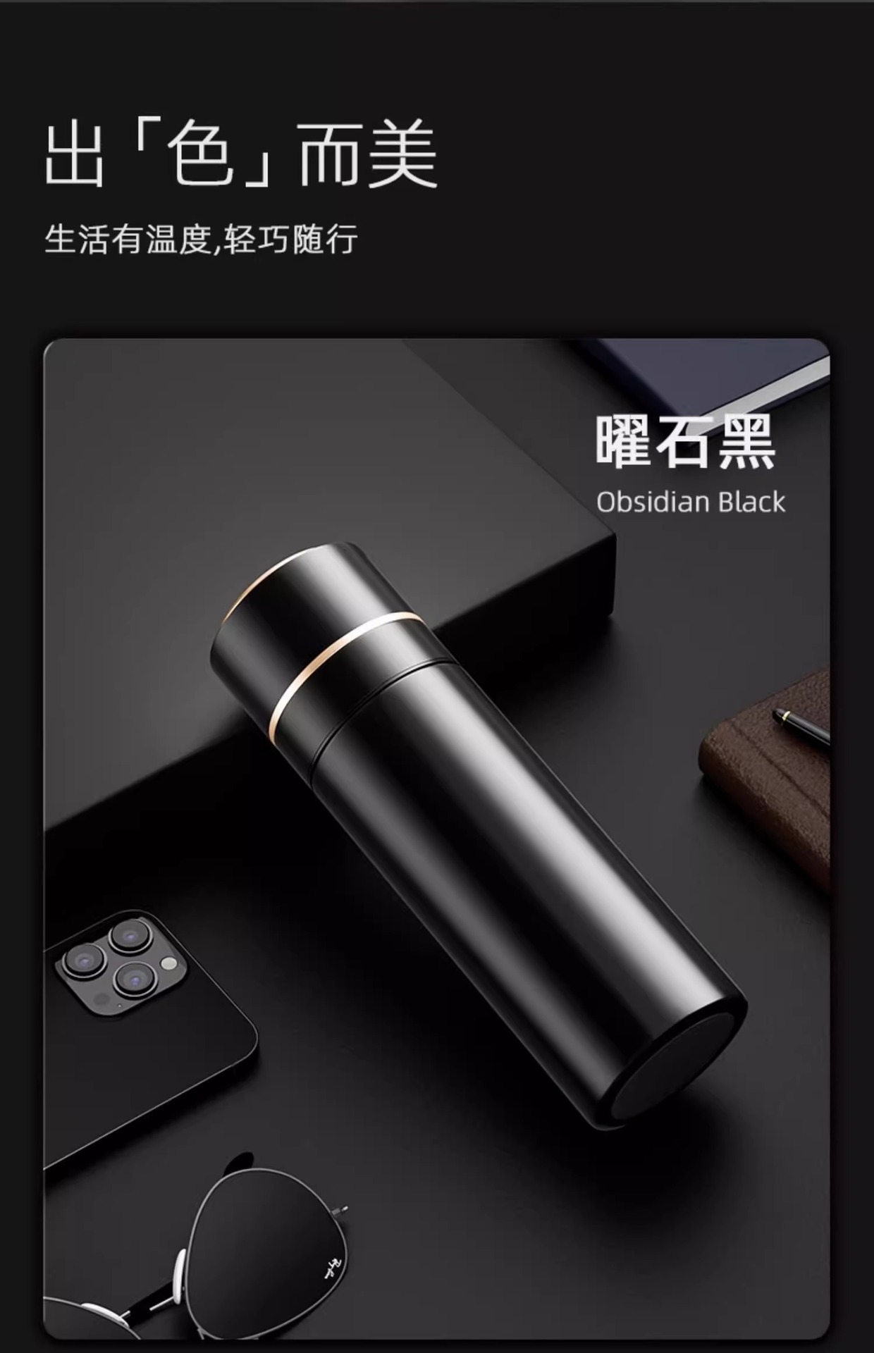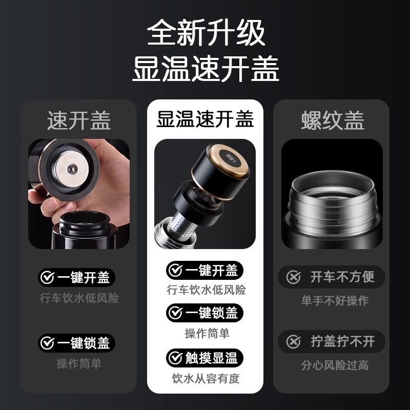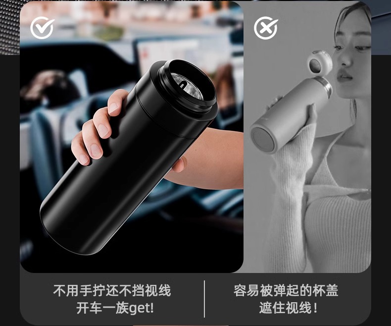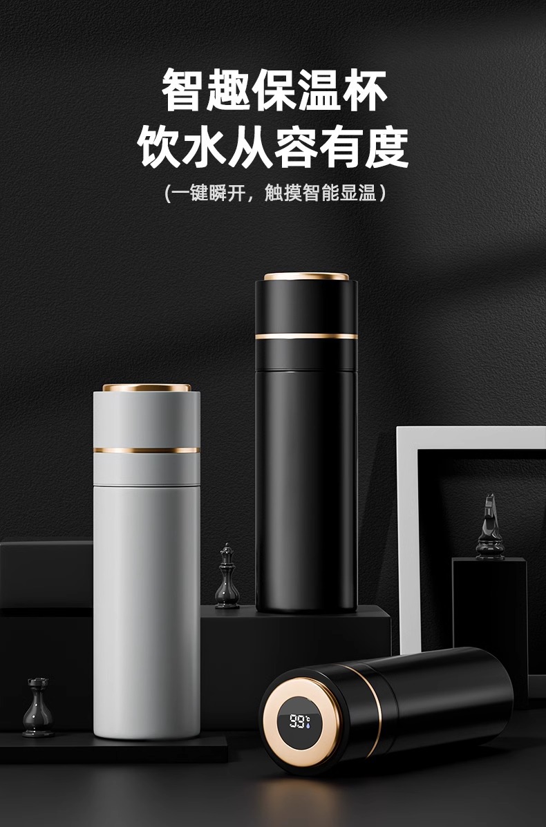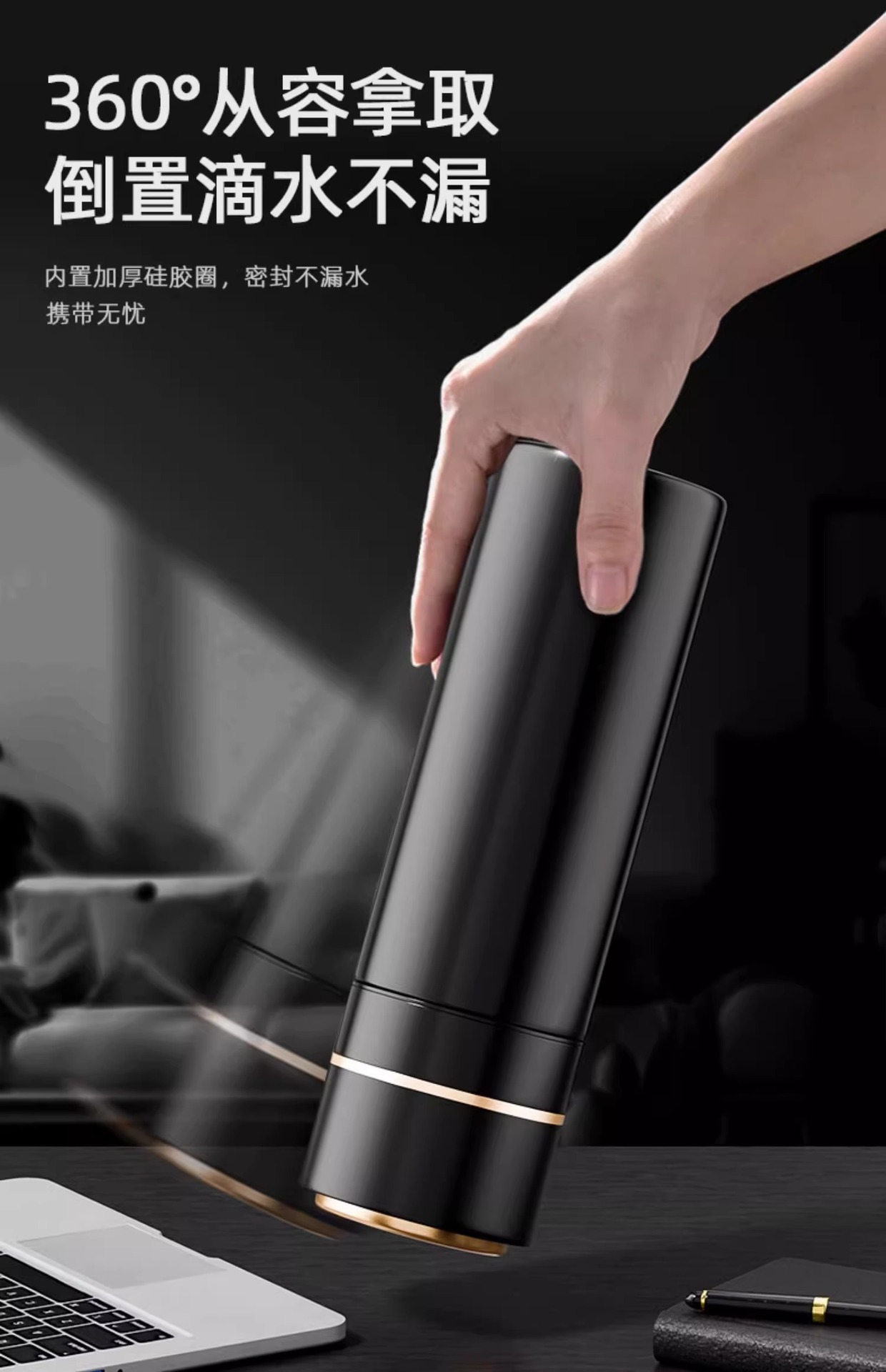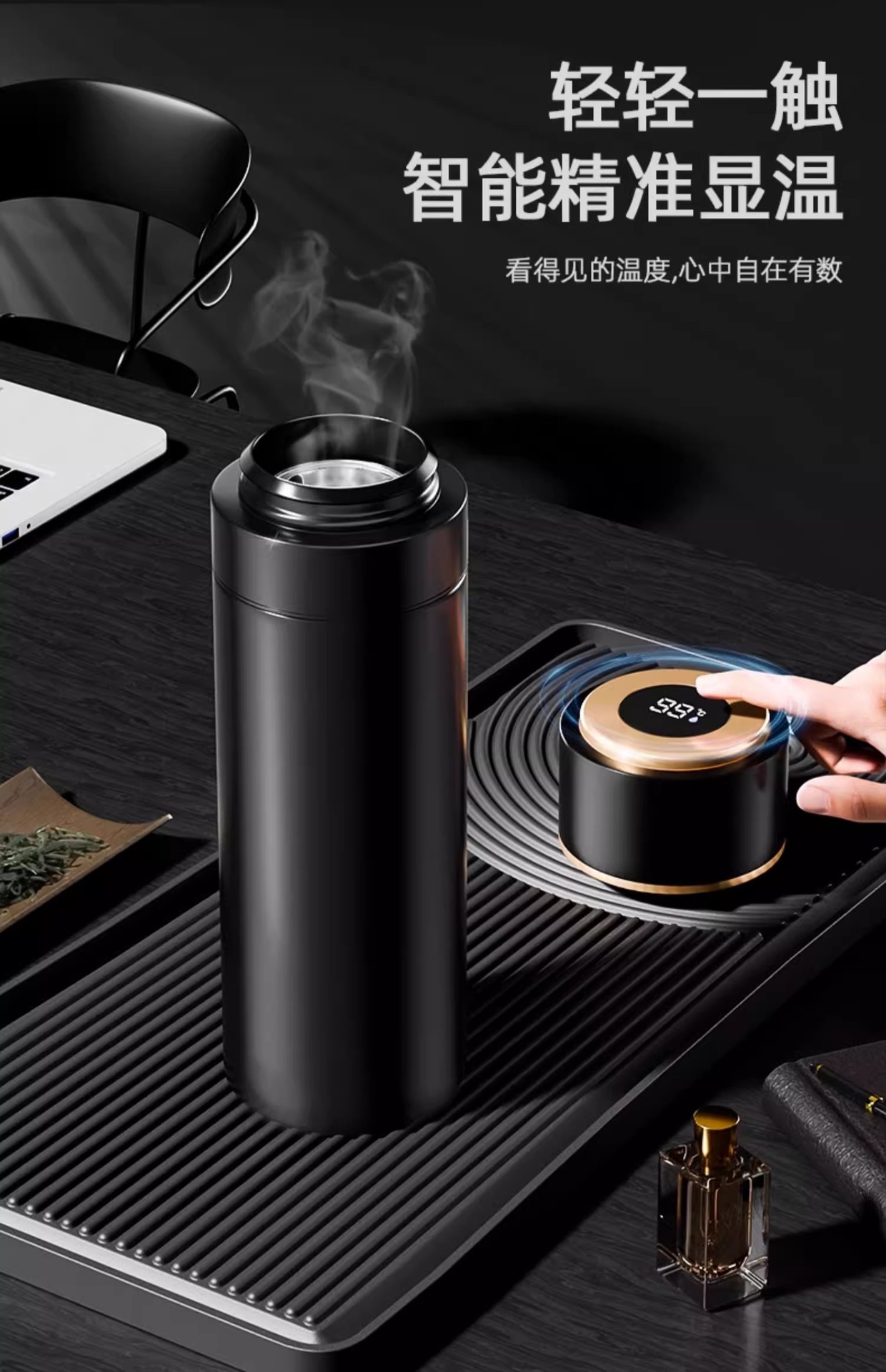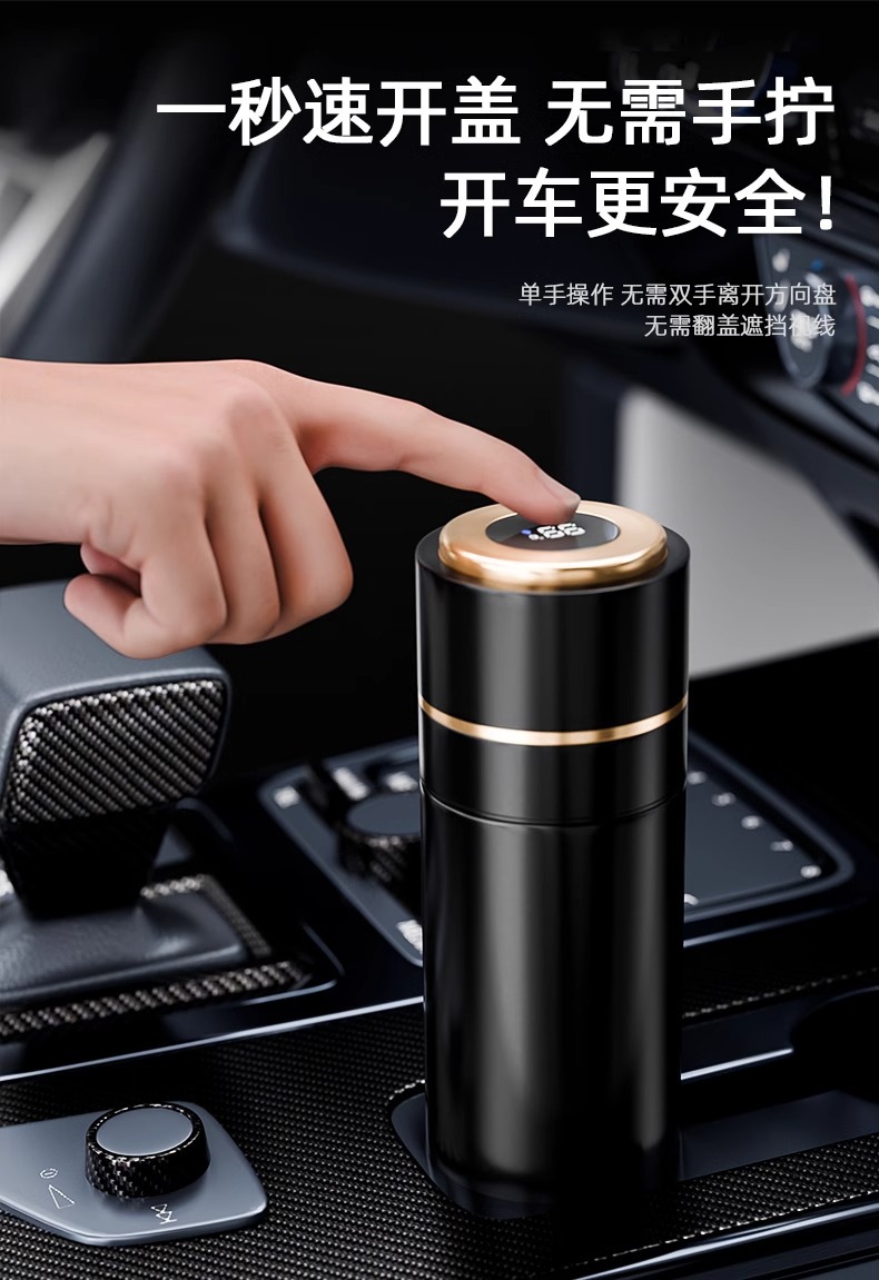 户外车载一键开盖智能保温杯广告礼品不锈钢茶水分离显温泡茶水杯