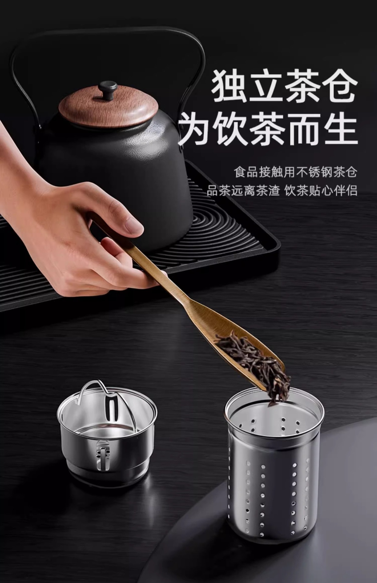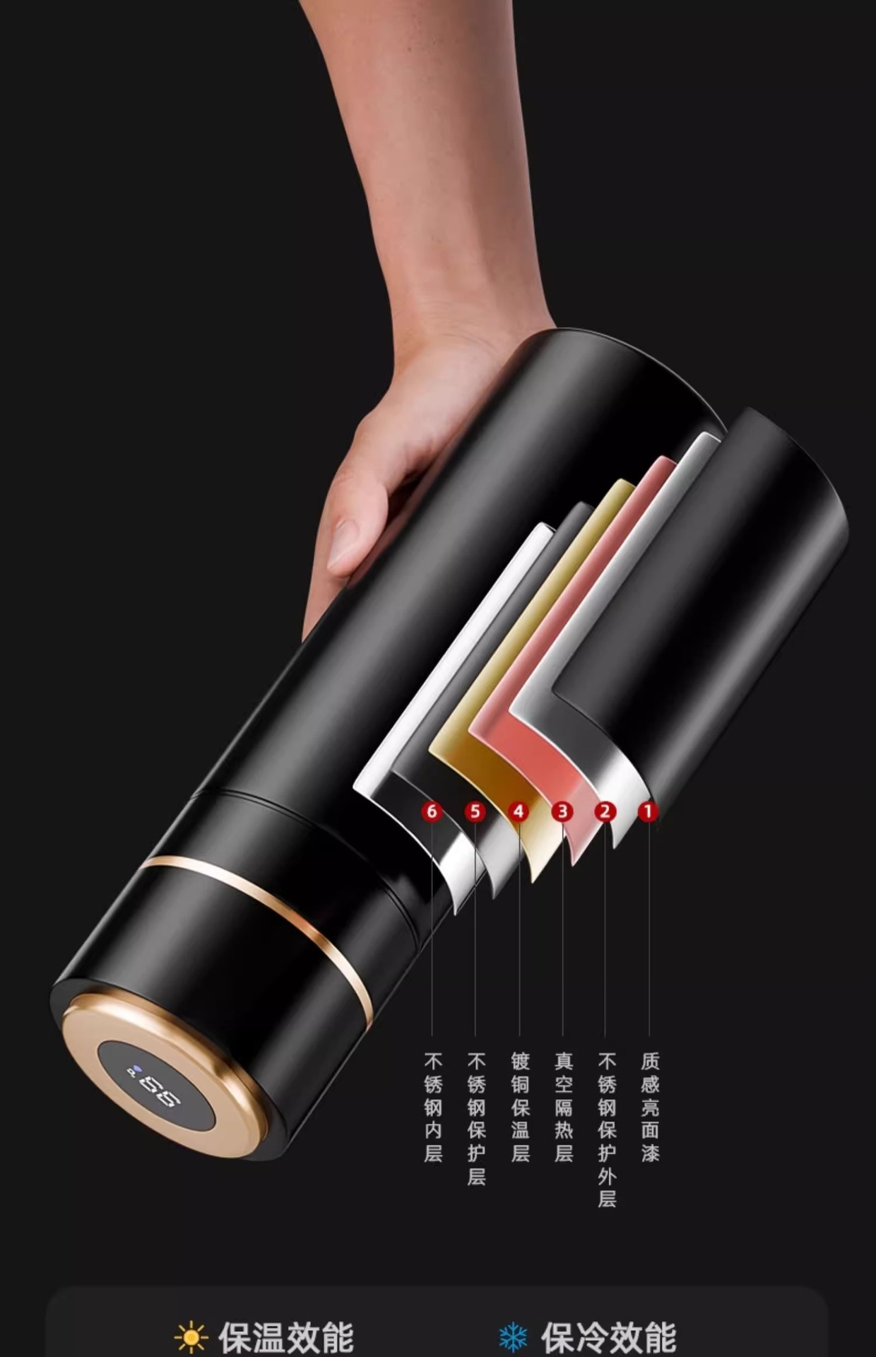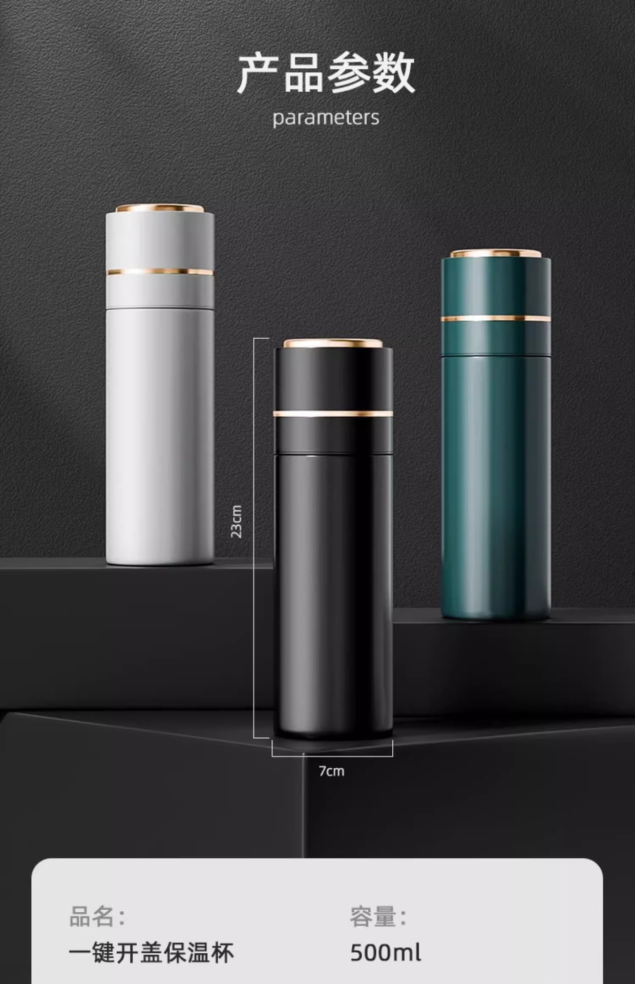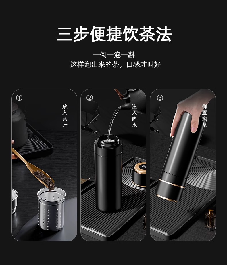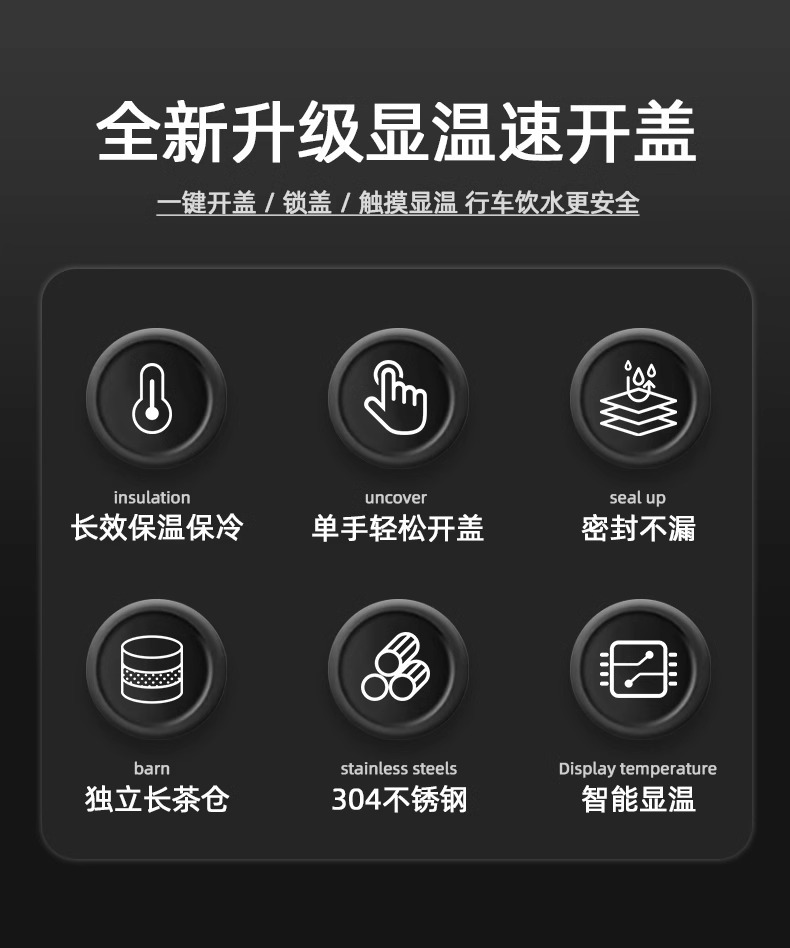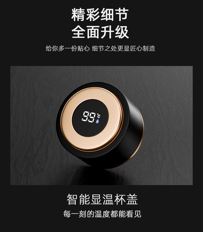 户外车载一键开盖智能保温杯广告礼品不锈钢茶水分离显温泡茶水杯
