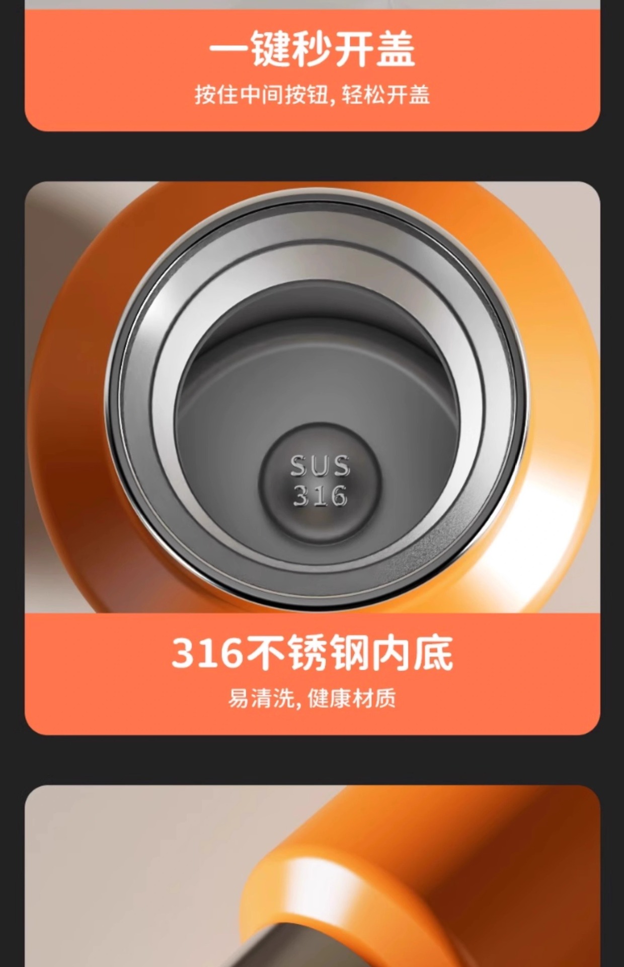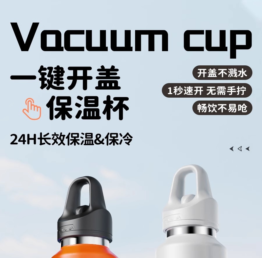 户外便携车载泡茶一键开盖大容量保温杯运动健身速开保温水杯