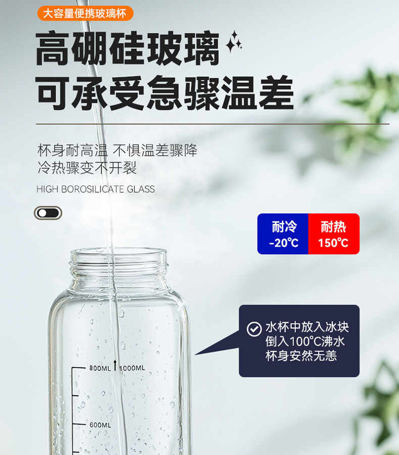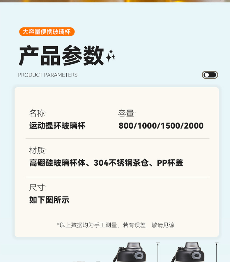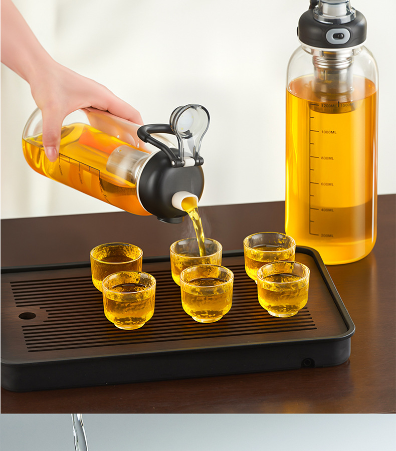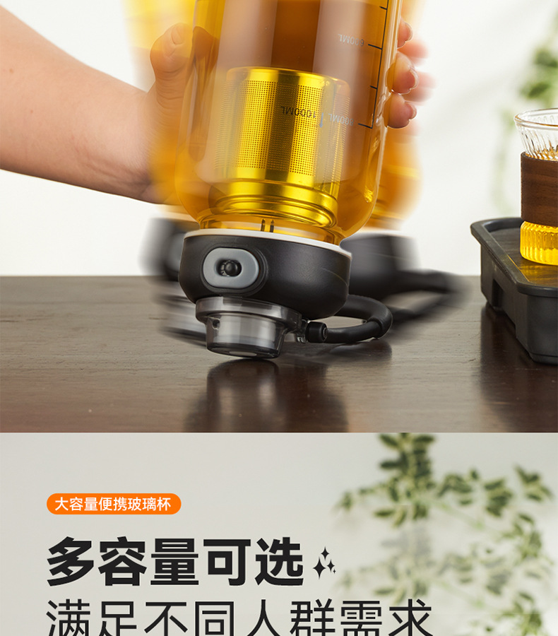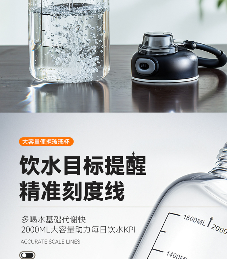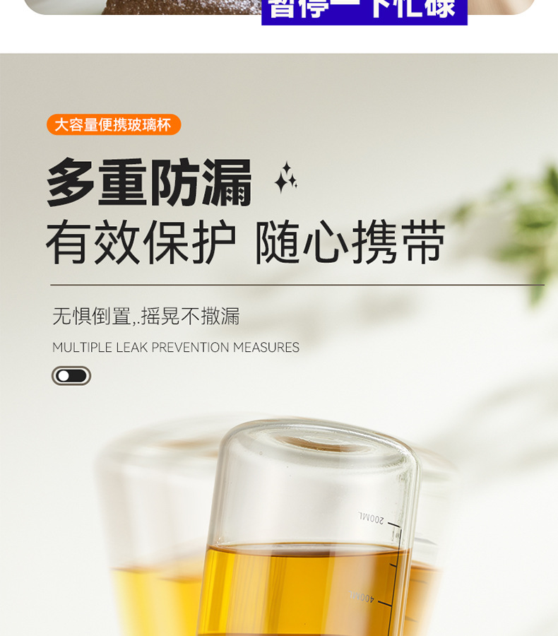 大容量便携高硼硅玻璃杯 一键开盖带刻度可手提茶水分离玻璃水杯
