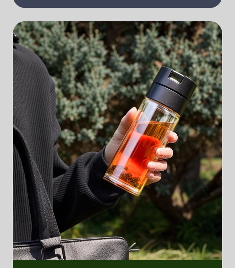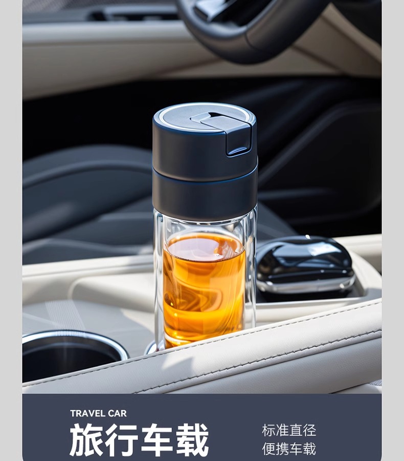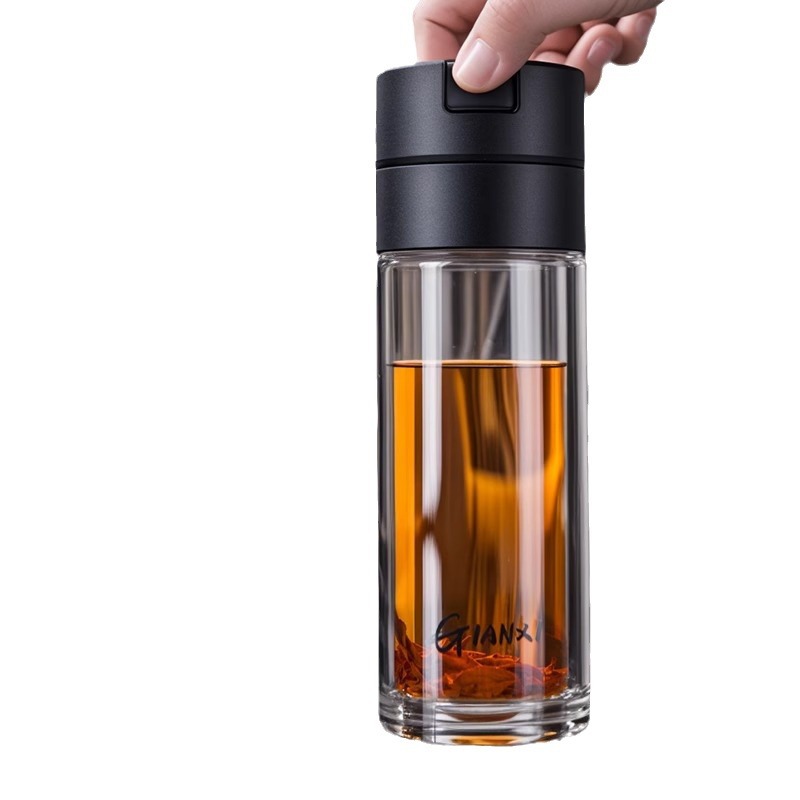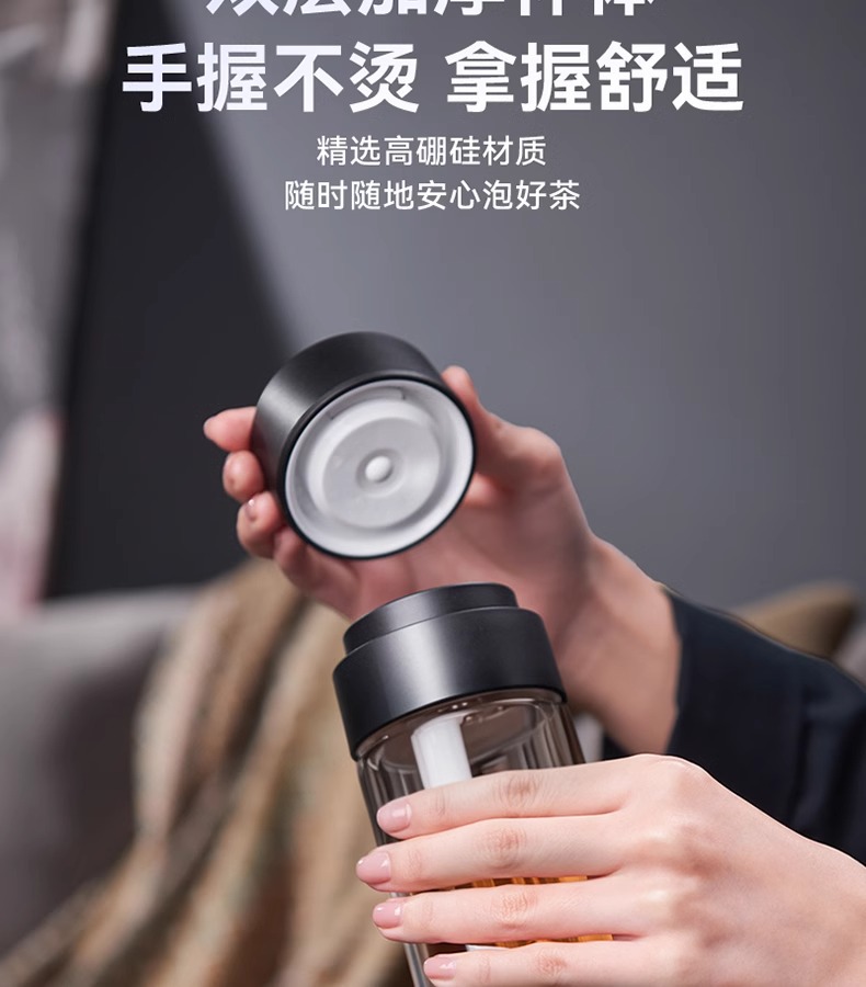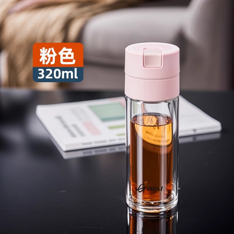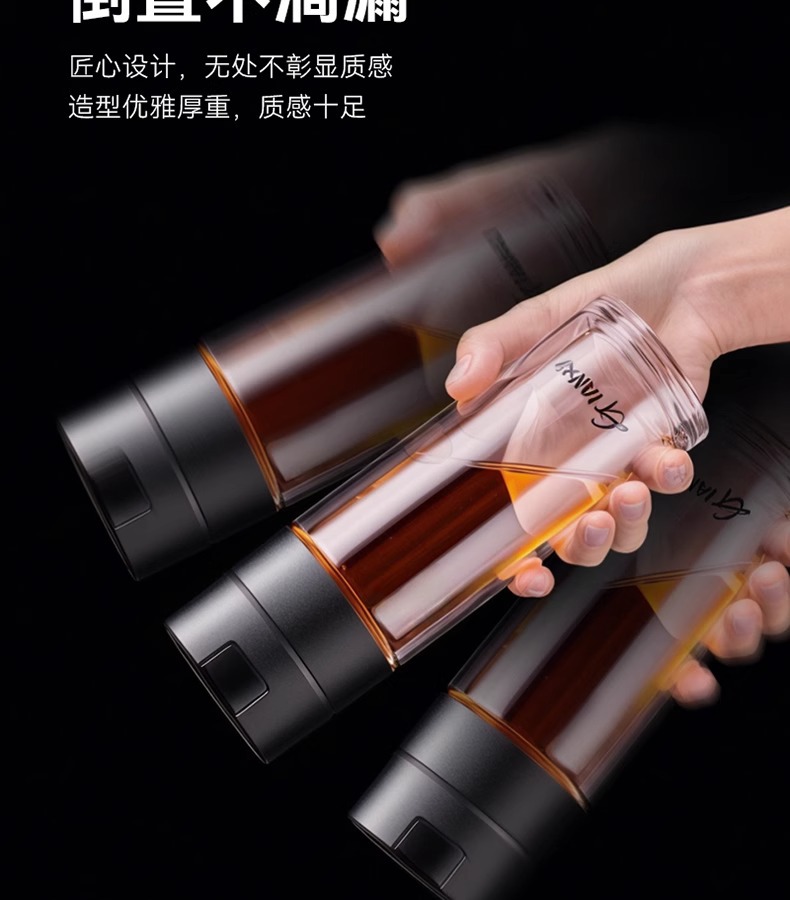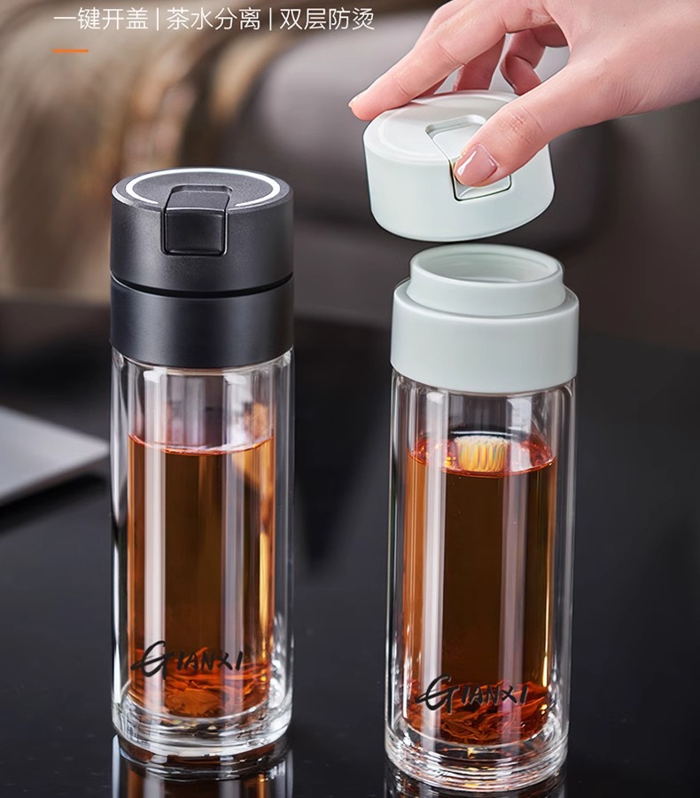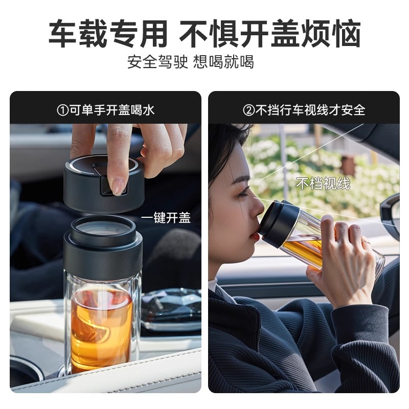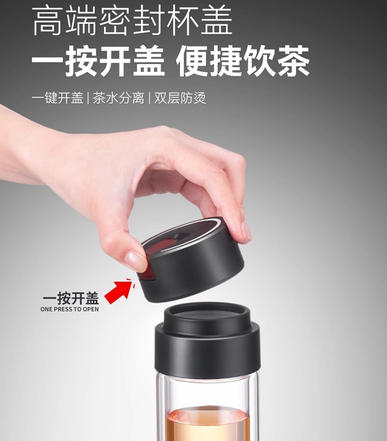 一键开盖双层高硼硅玻璃杯新款男女士泡茶茶水分离车载水杯