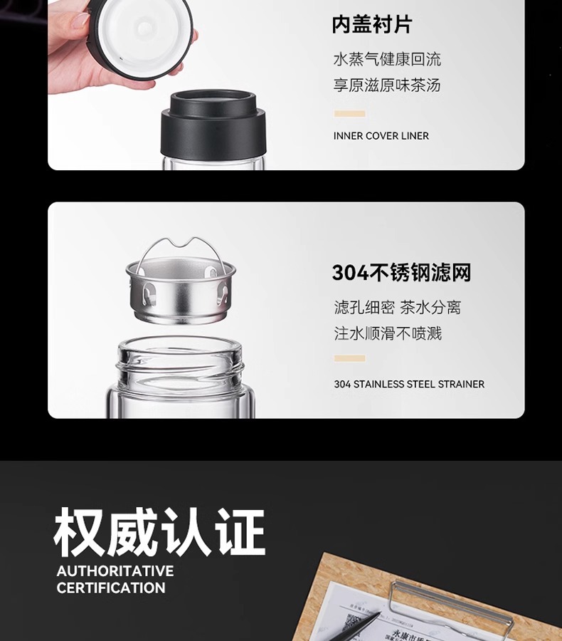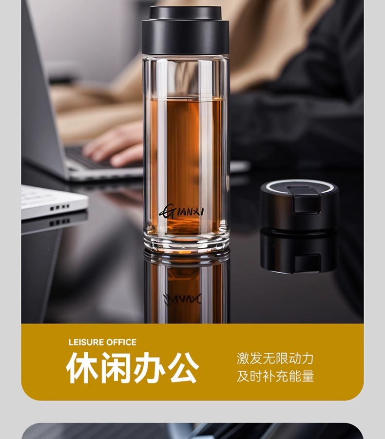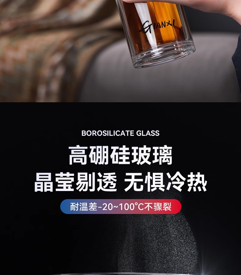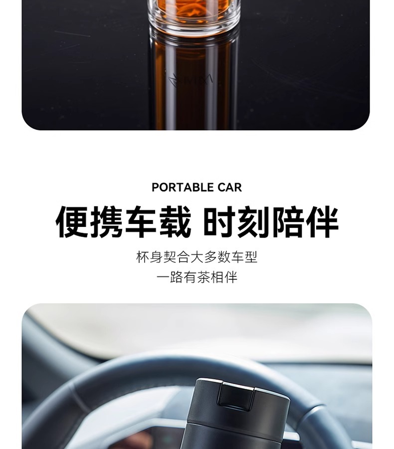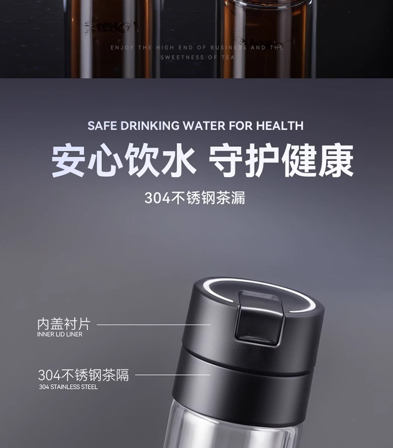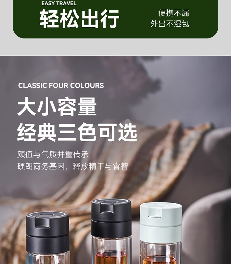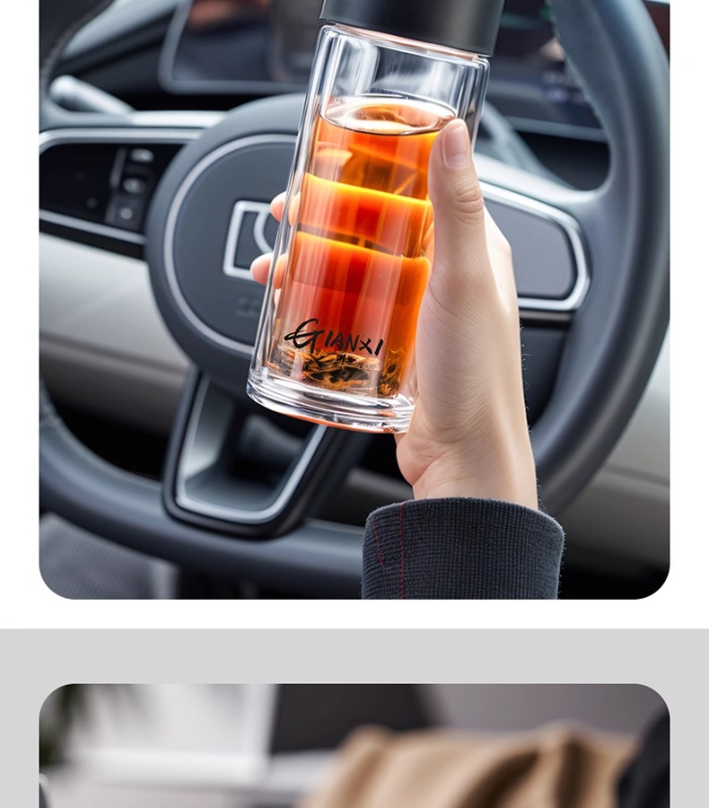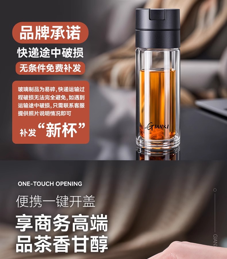 一键开盖双层高硼硅玻璃杯新款男女士泡茶茶水分离车载水杯