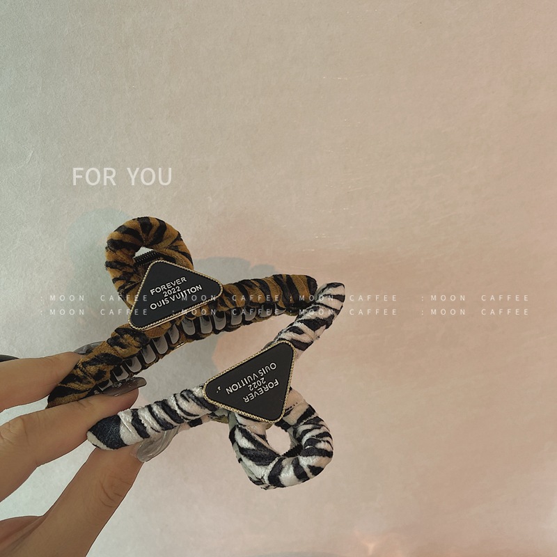韩国气质大号奶牛纹布艺字母鲨鱼夹简约复古时尚抓夹头饰发夹