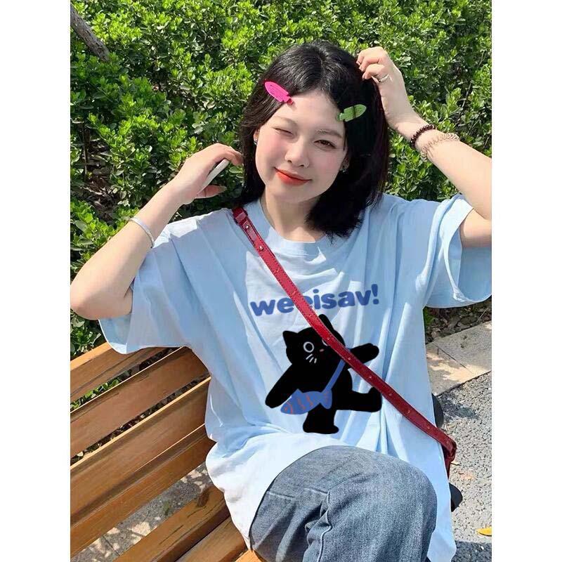 蓝色纯棉短袖t恤女新款独特别致卡通印花半袖夏季小清新上衣