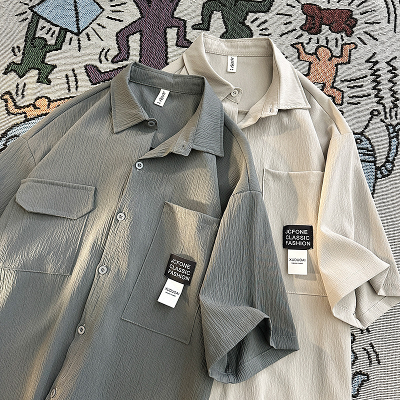 夏季薄款短袖衬衫男潮牌潮流休闲港风日系设计感韩版痞帅法式衬衣