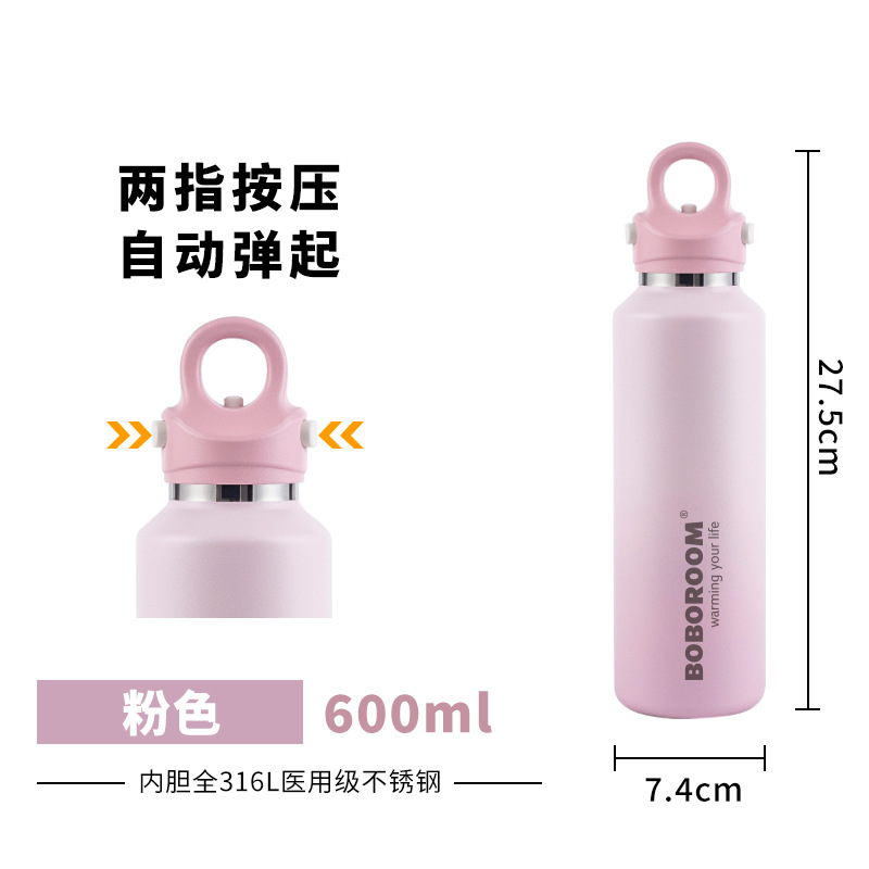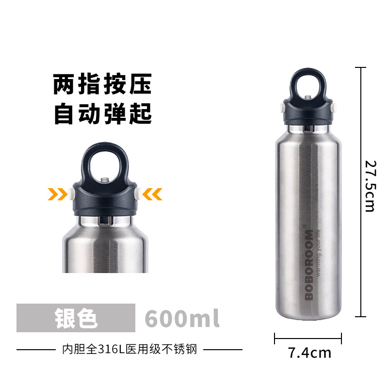 新款户外316不锈钢无螺纹保温保冷杯双层真空速开杯一键开盖