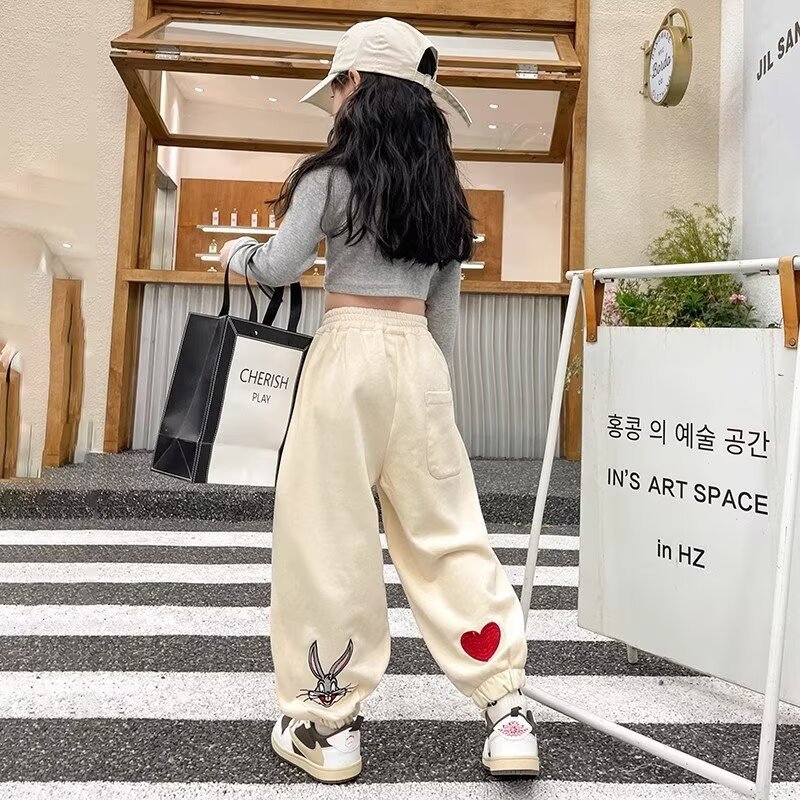 女童裤子春秋运动裤新款儿童休闲裤薄款女孩大童直筒卫裤秋装