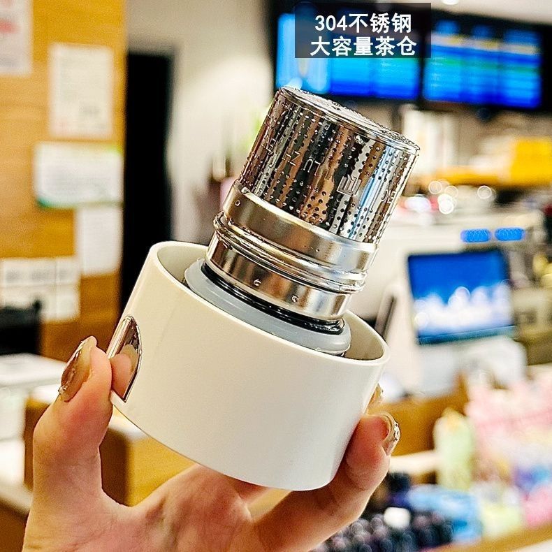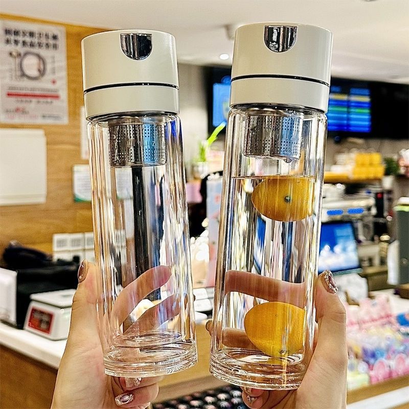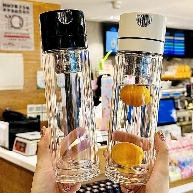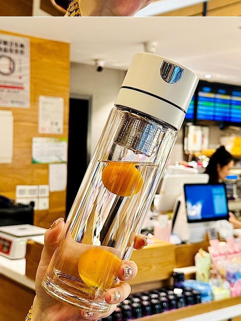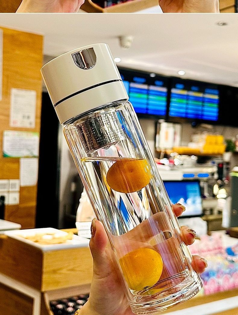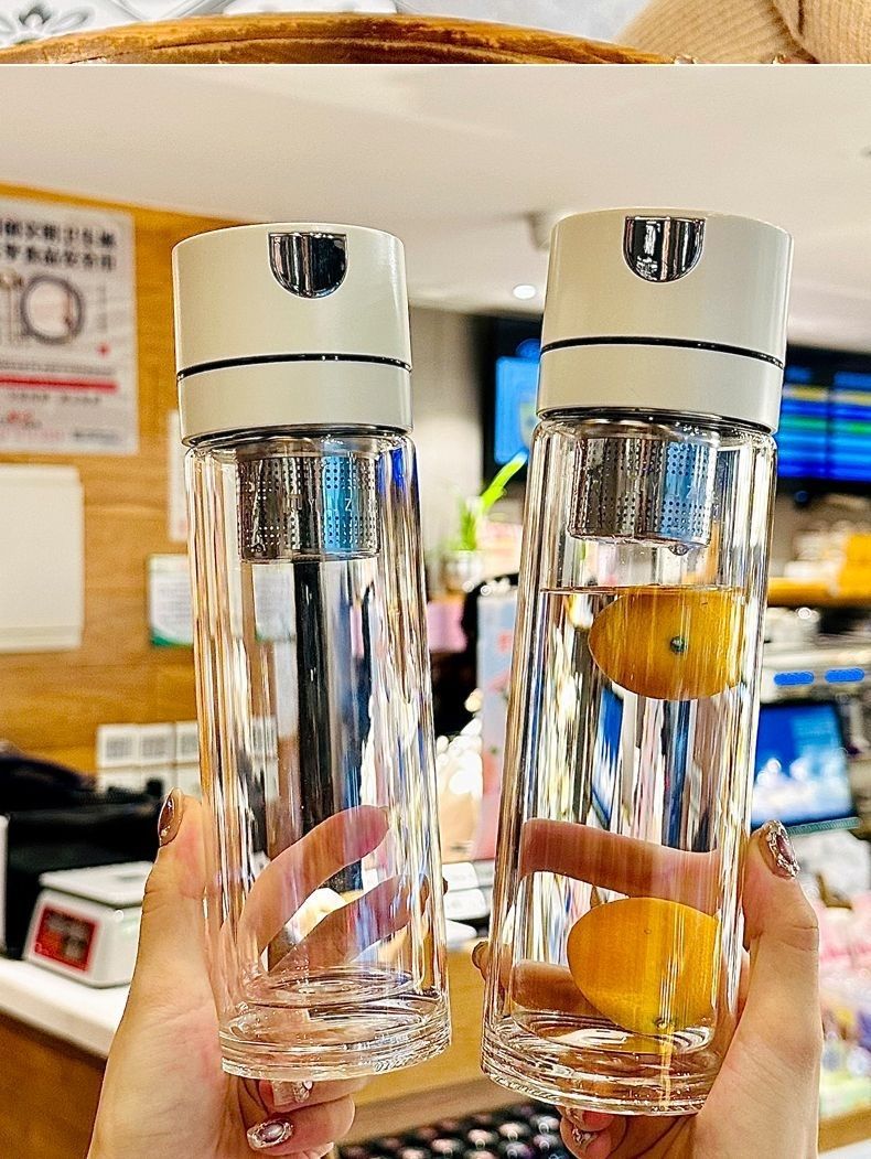 新款一键开盖磁吸速开杯双层高硼硅玻璃水杯车载茶水分离便携水杯