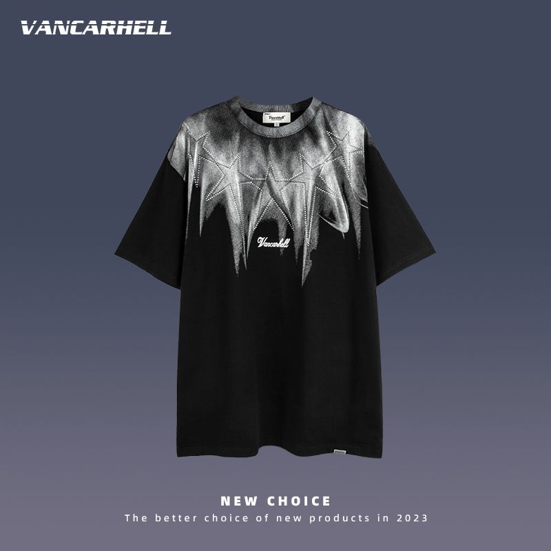 美式高街潮牌烫钻短袖T恤男oversize宽松小众设计感炸街情侣上衣