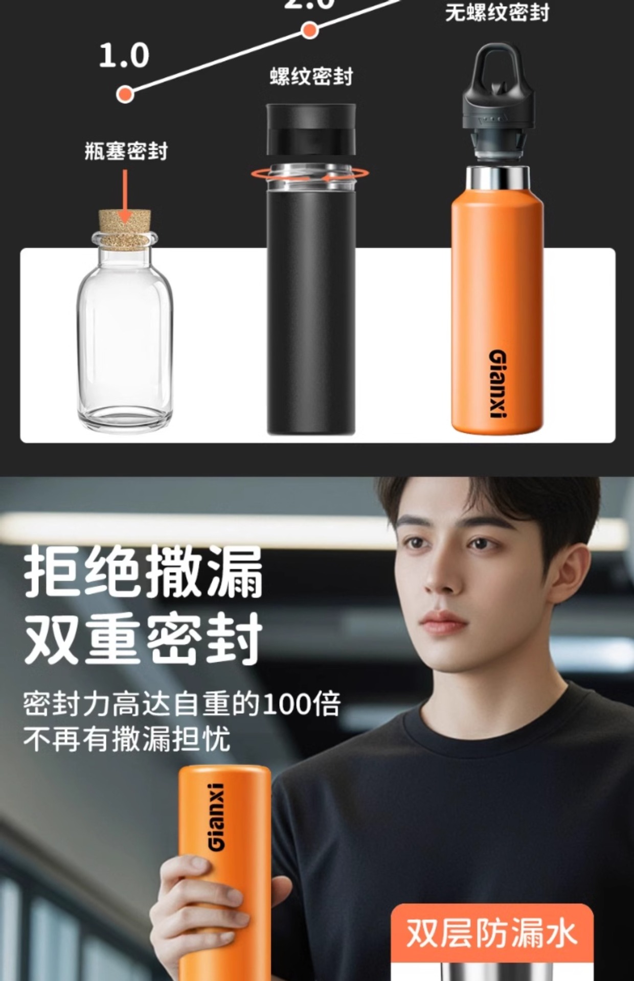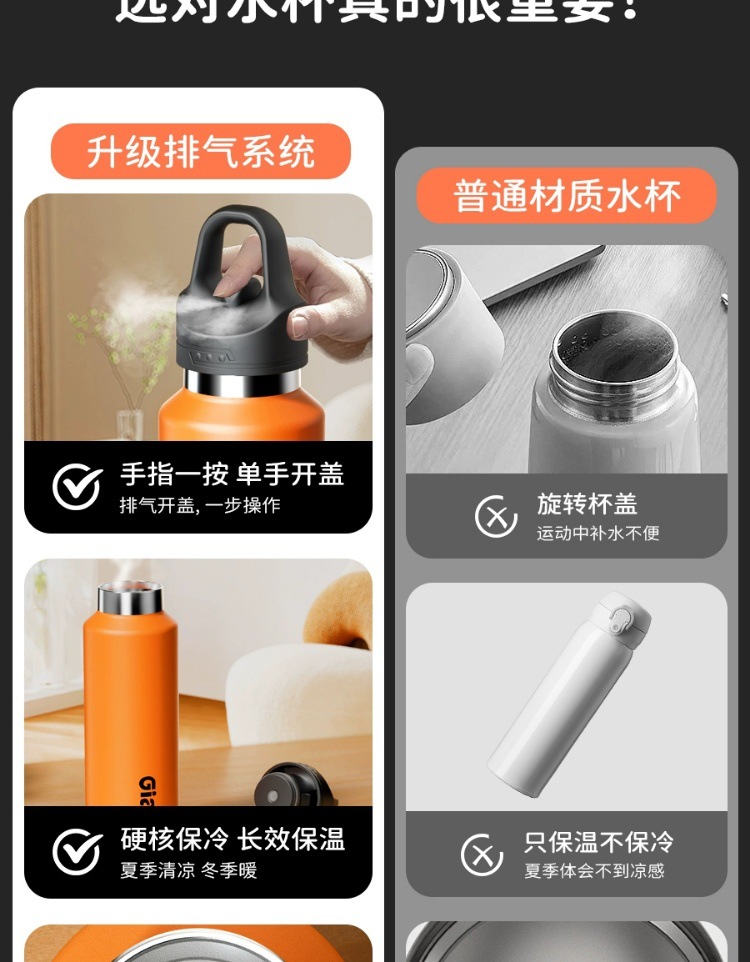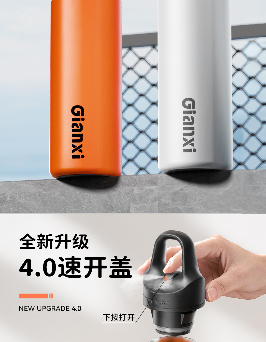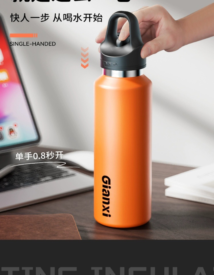 新款一键开盖保温杯男士保冷运动水杯大容量健身水壶便捷水杯