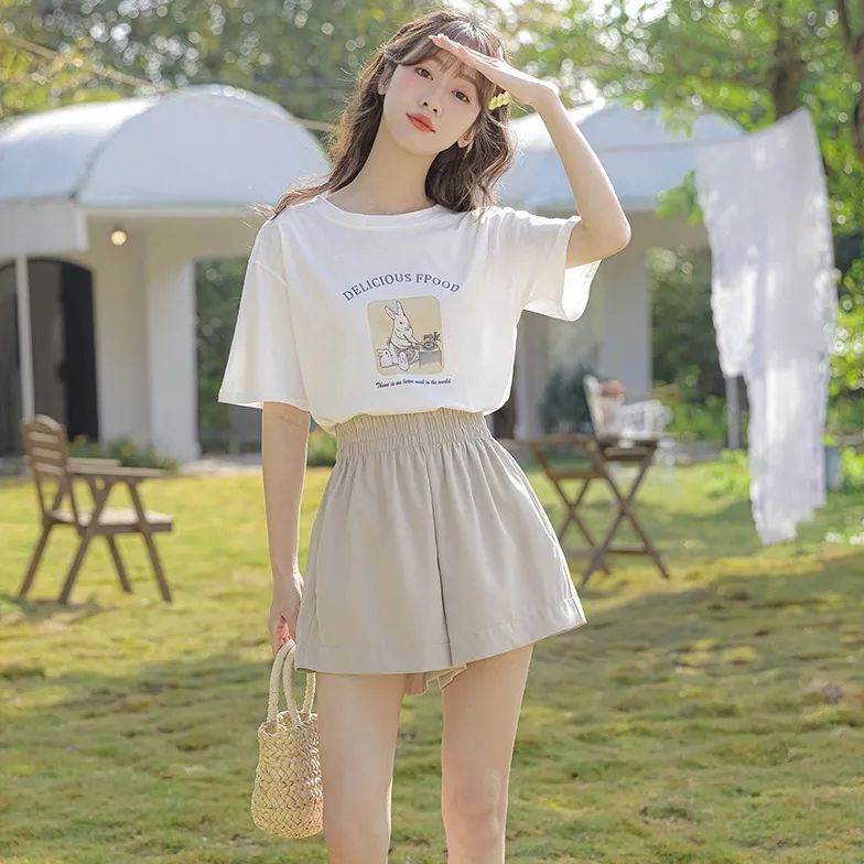 超手感莫代尔韩版小兔甜美宽松百搭卡通印花休闲短袖t恤女