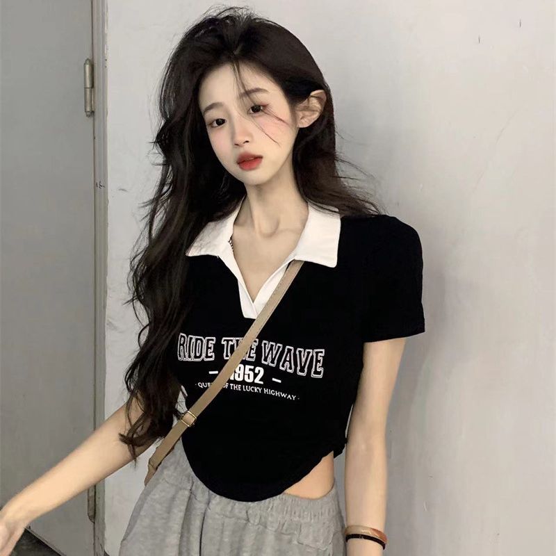 纯棉辣妹女装夏季新款短袖t恤女胖妹妹遮肚子显瘦正肩上衣设计感