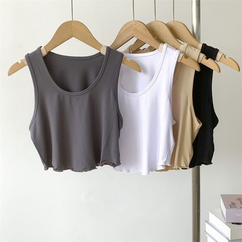 夏季新款纯色短款小背心女下摆木耳边修身弹力瑜伽上衣现代舞蹈服