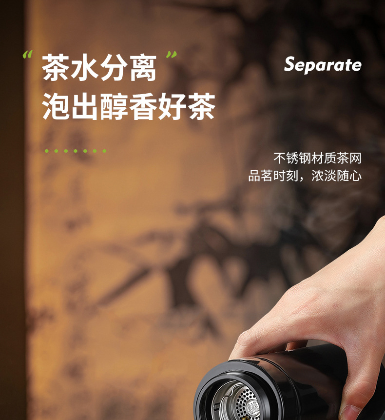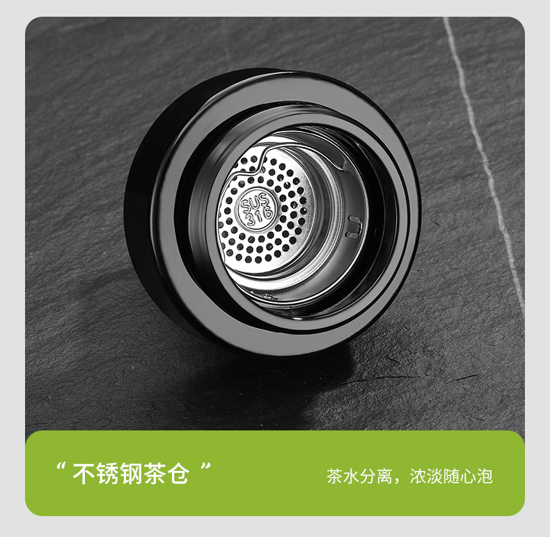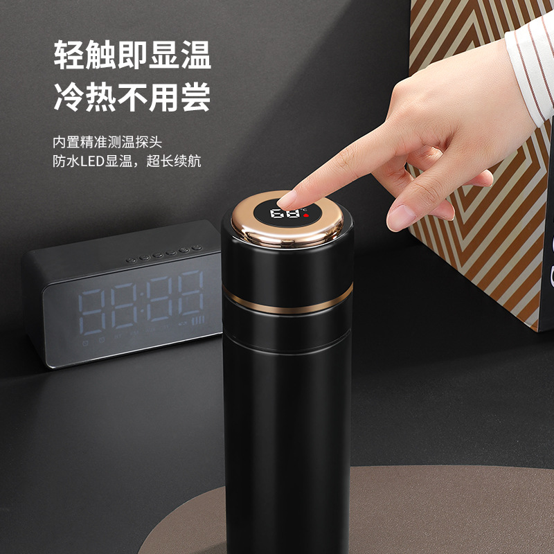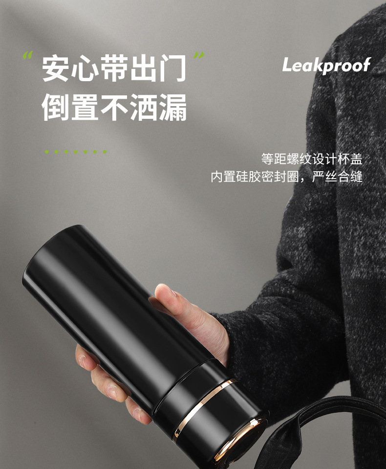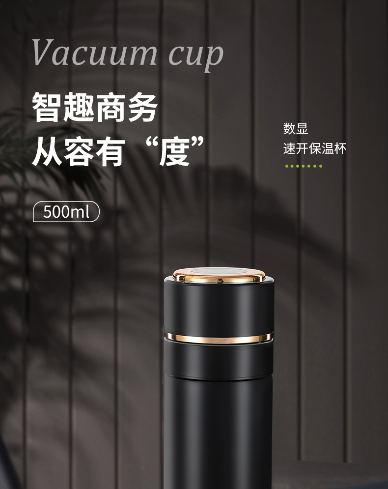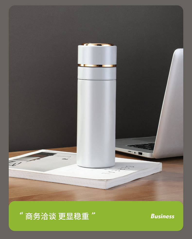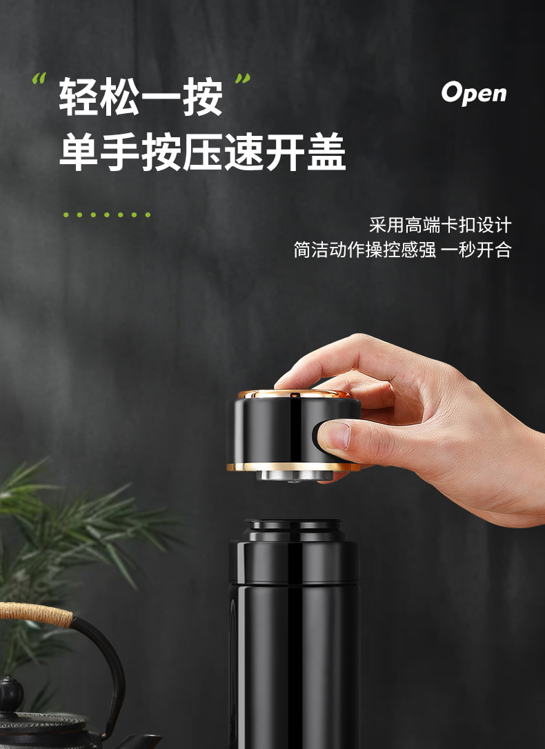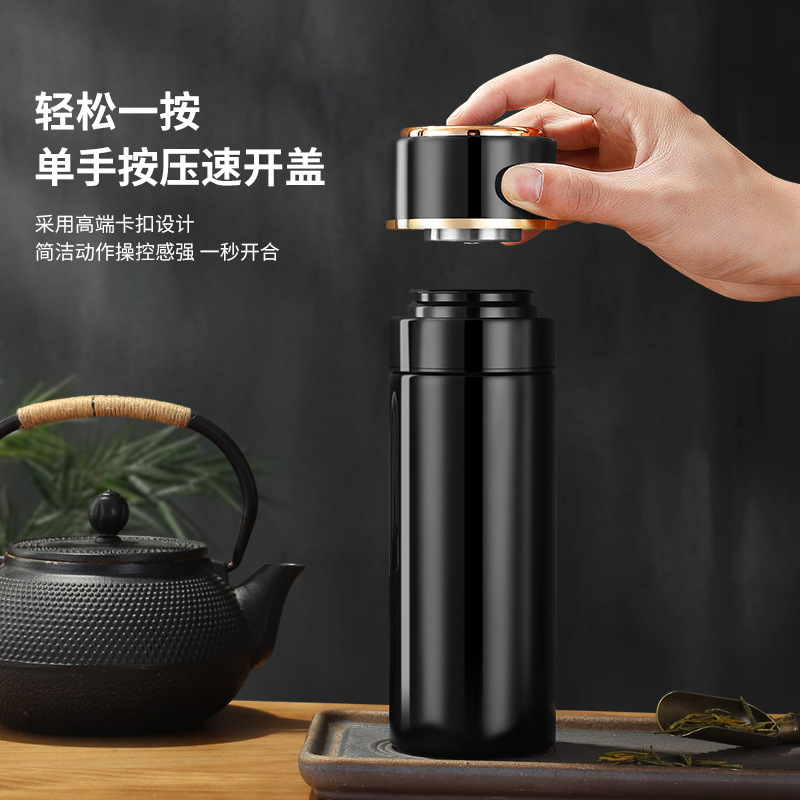 高档316不锈钢一键开盖保温杯商务智能显温速开杯茶水分离礼品杯