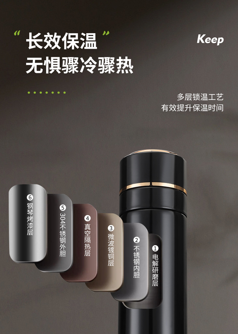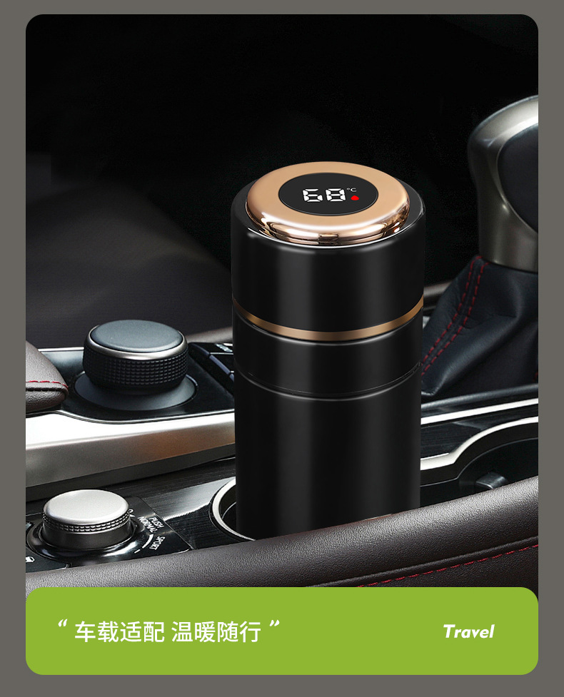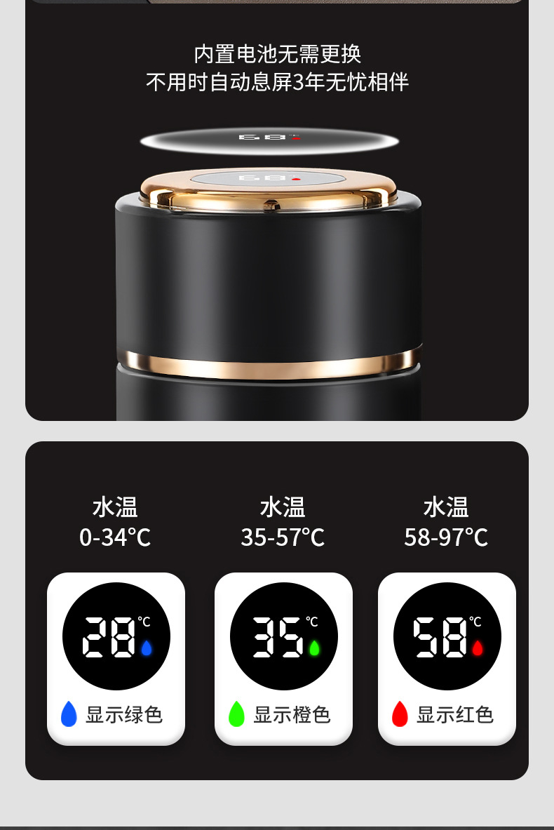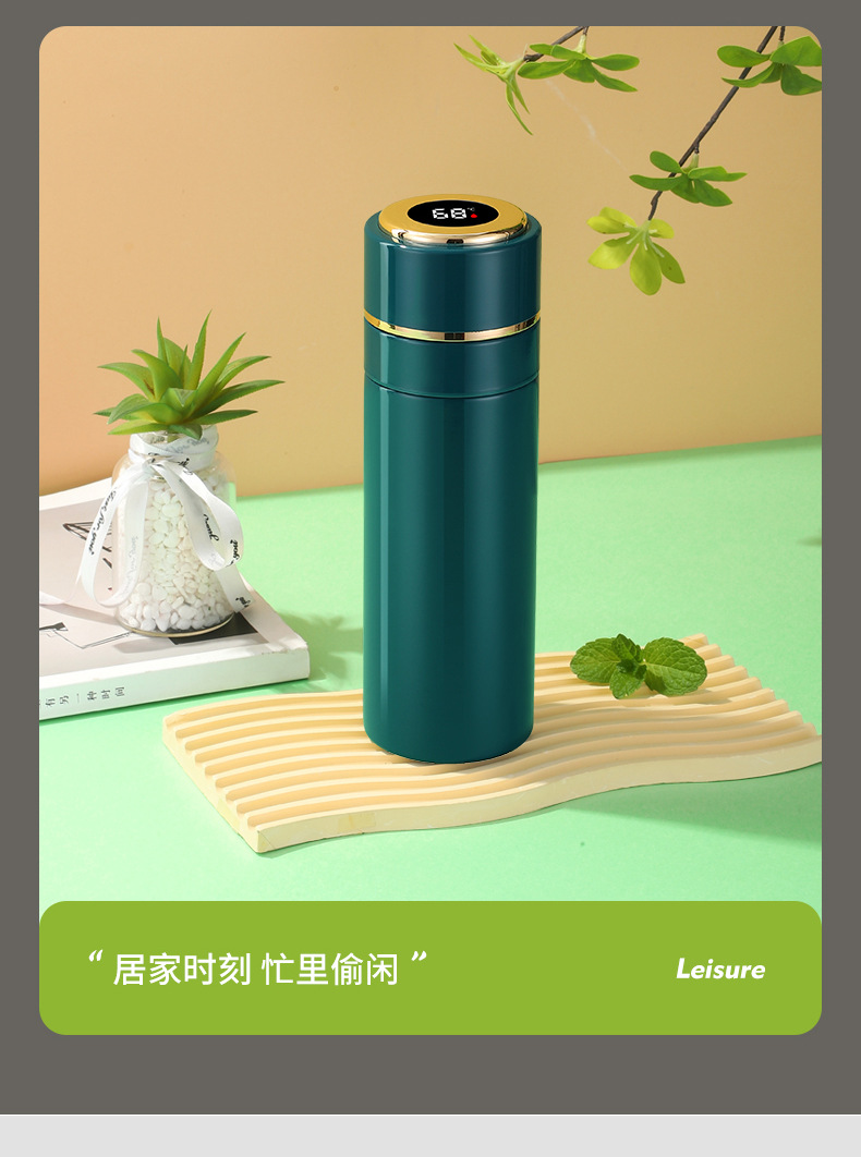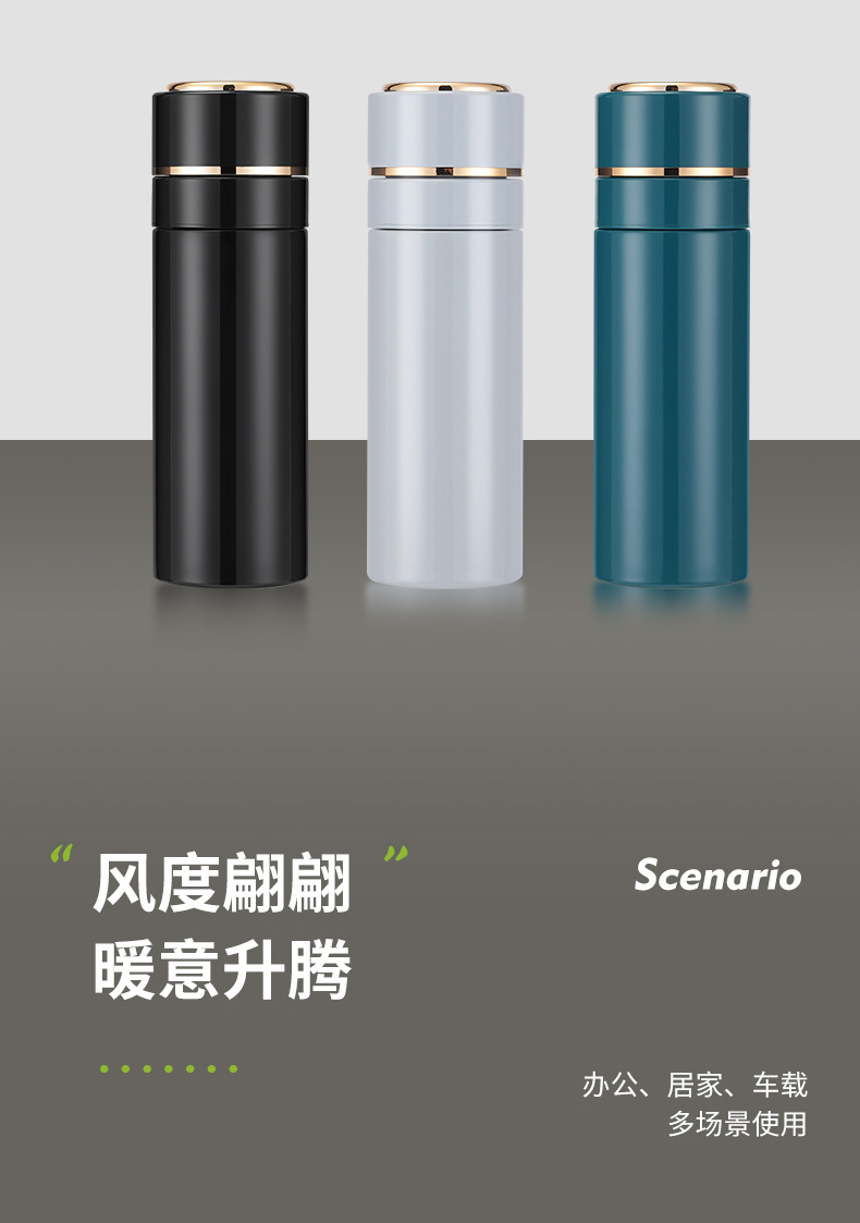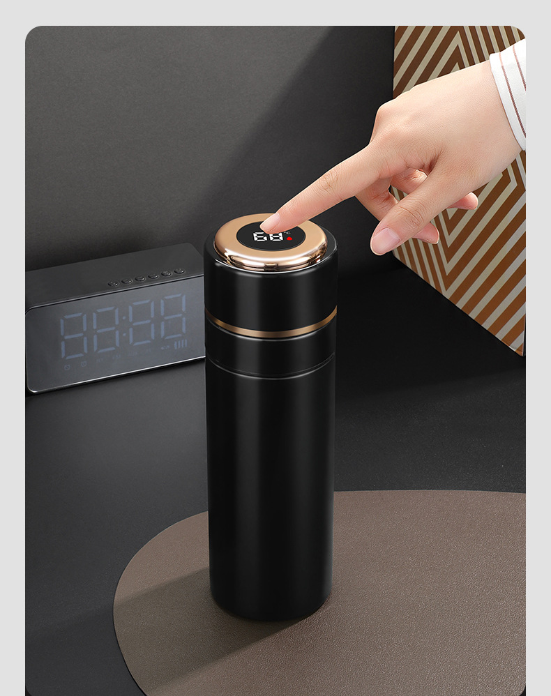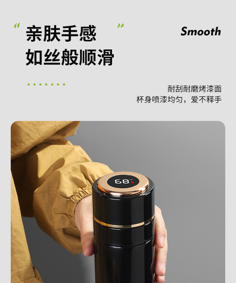高档316不锈钢一键开盖保温杯商务智能显温速开杯茶水分离礼品杯