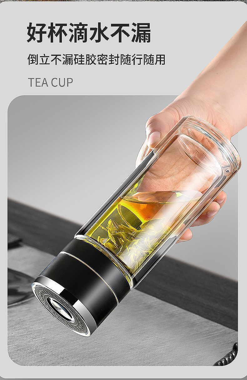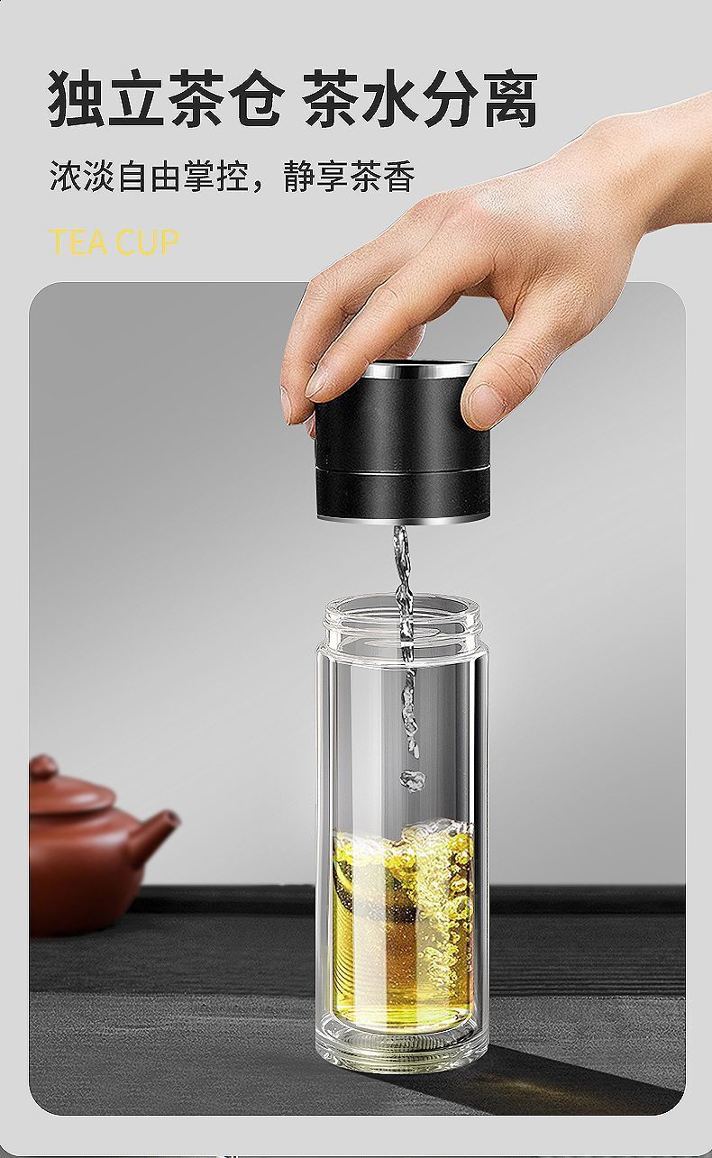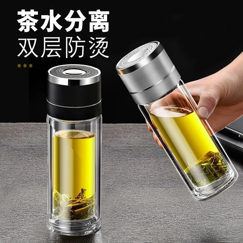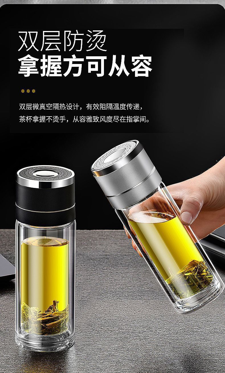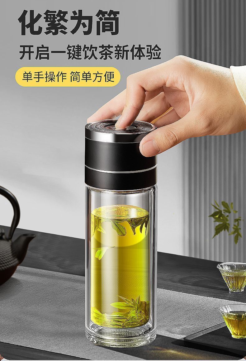 玻璃杯速开杯一键开盖茶水分离杯双层加厚车载商务水杯男女士茶杯