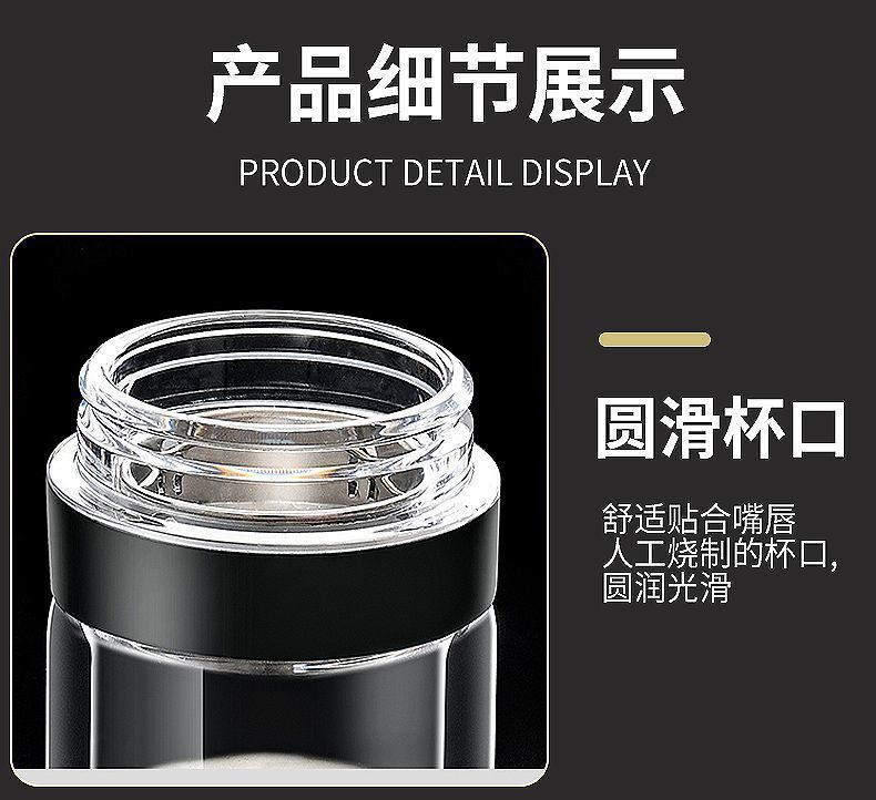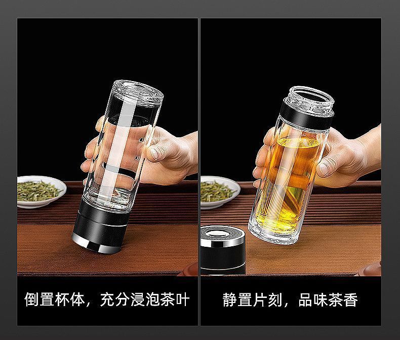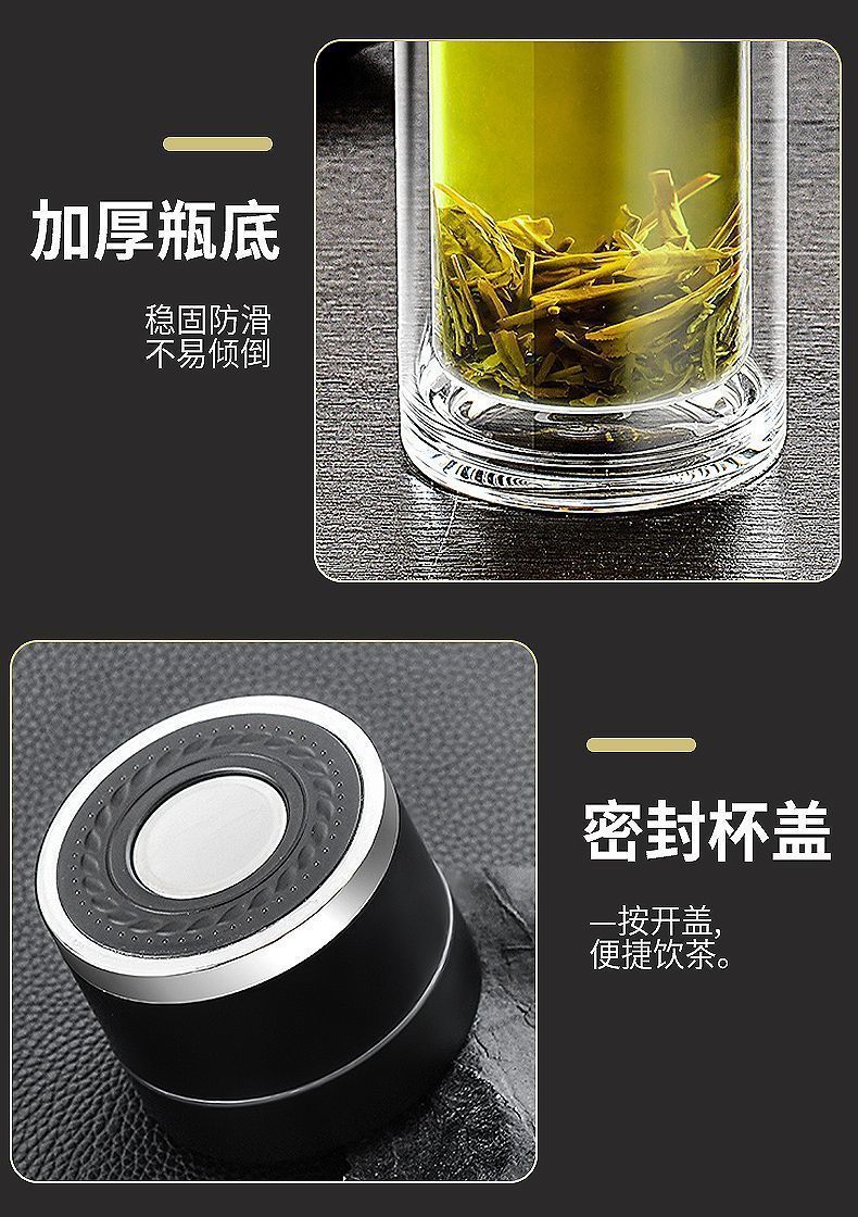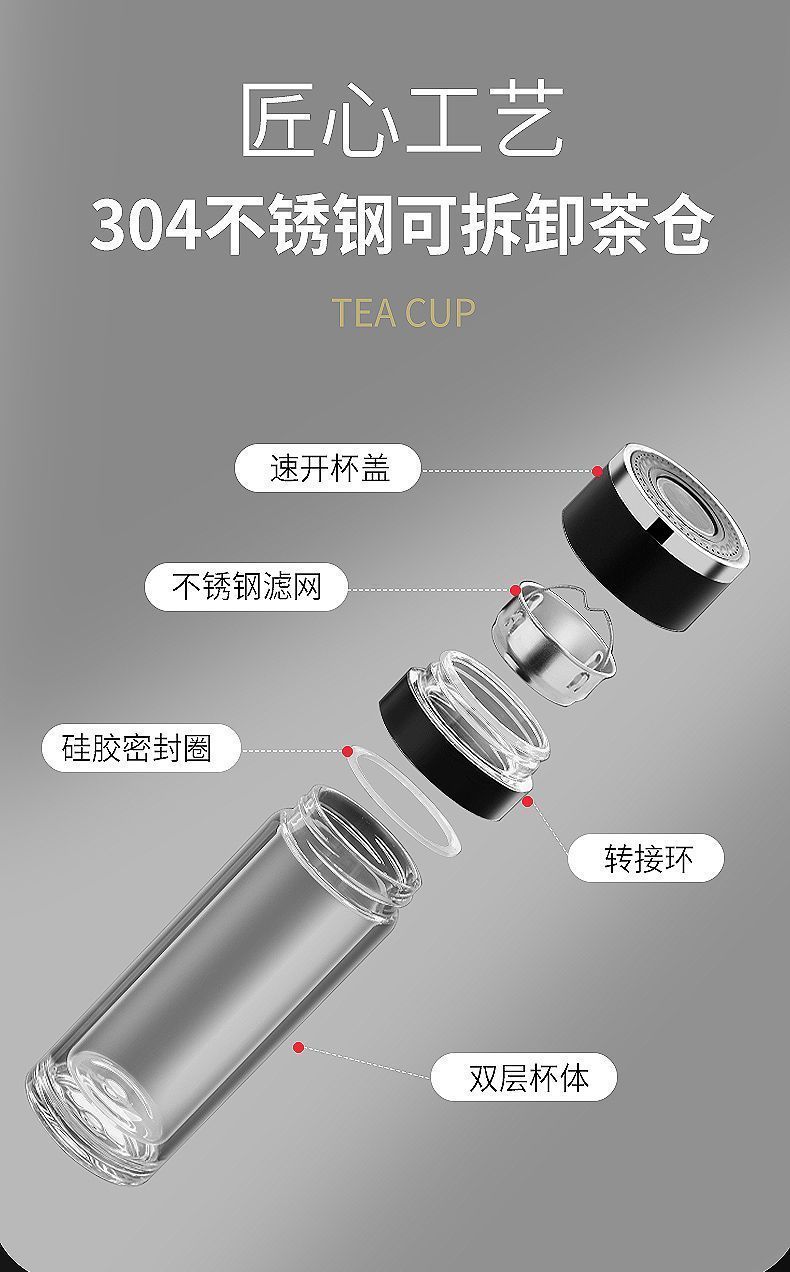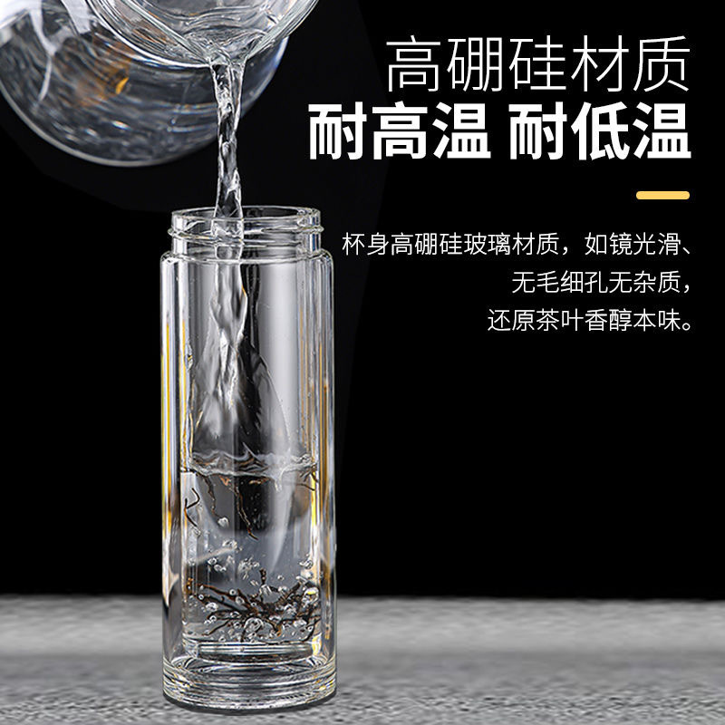 玻璃杯速开杯一键开盖茶水分离杯双层加厚车载商务水杯男女士茶杯