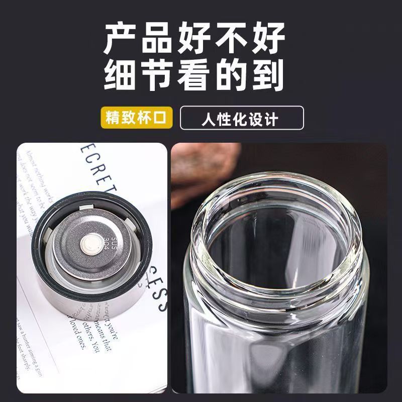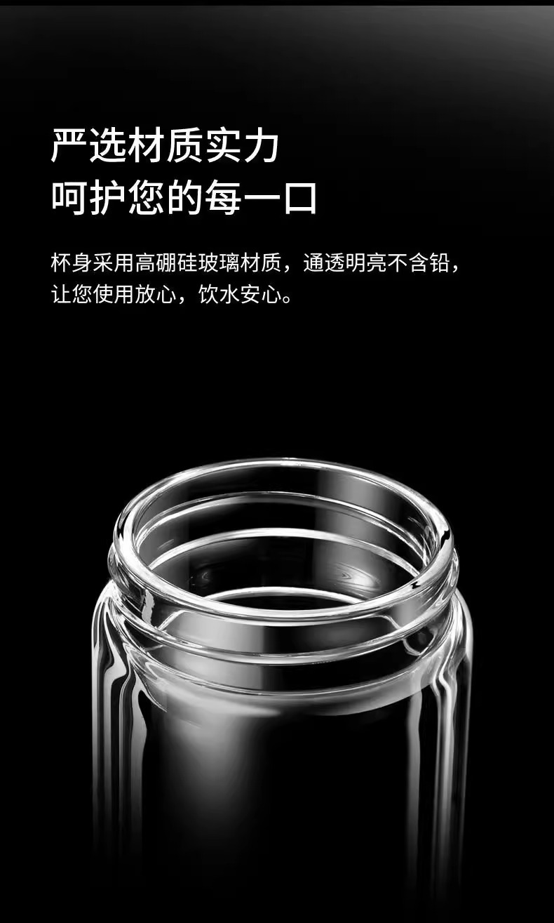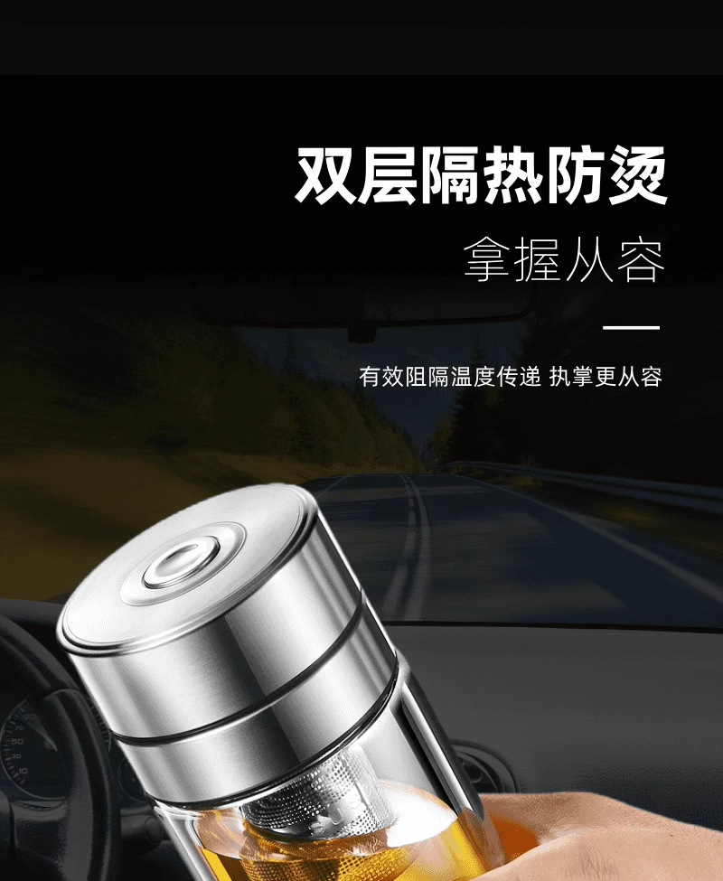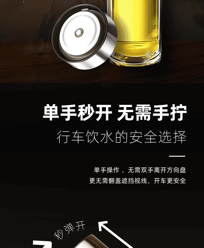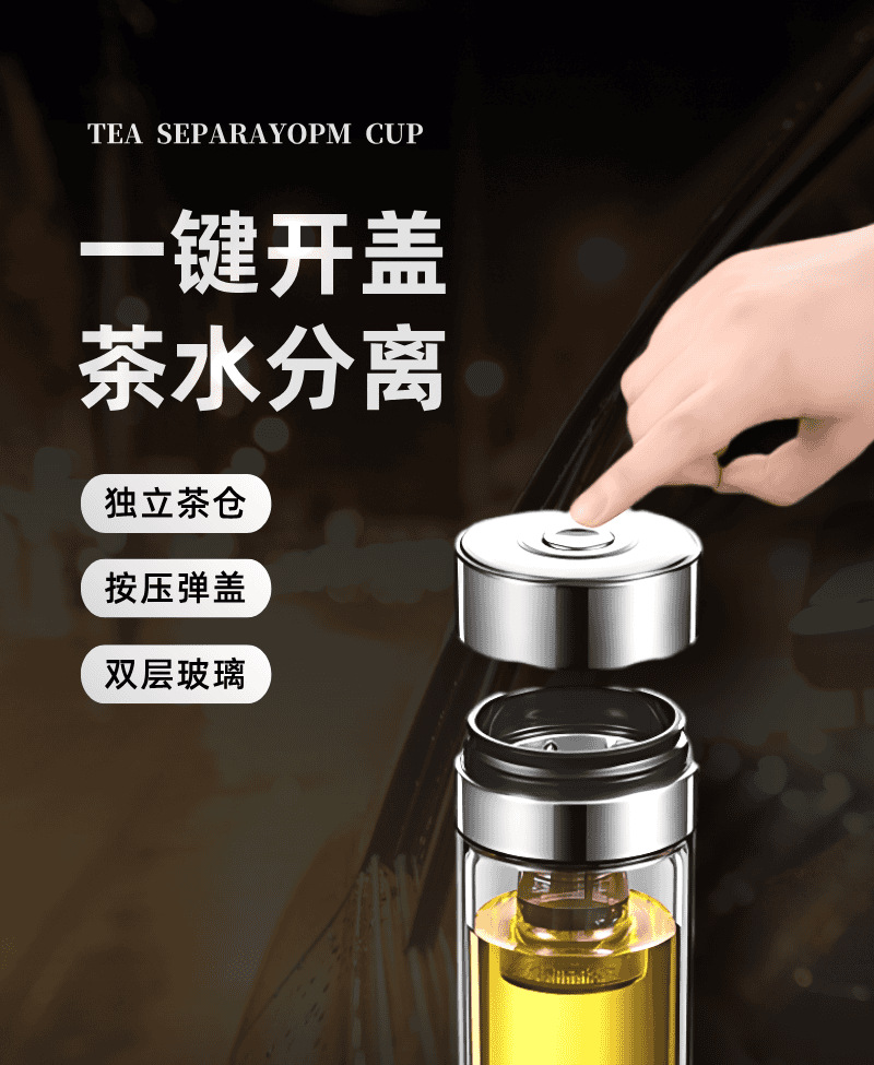 一键开盖车载松月轩大容量双层玻璃杯加厚速开茶水商务杯