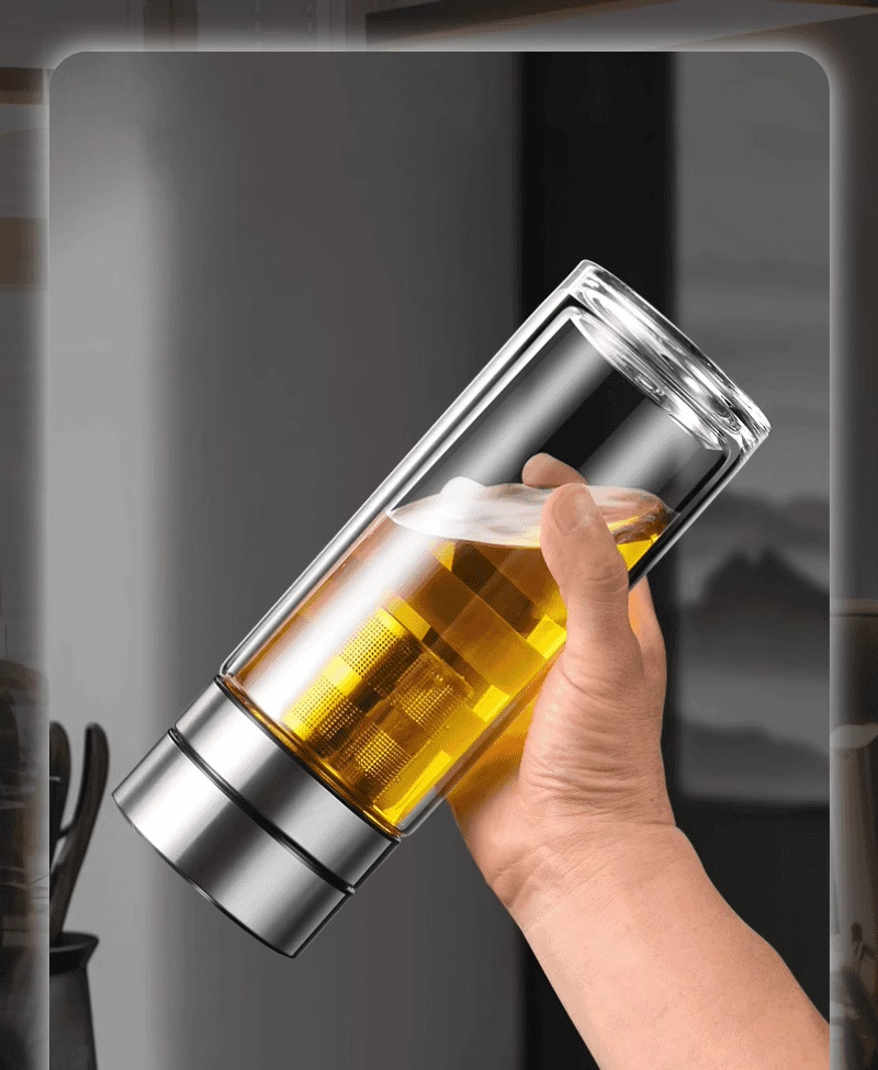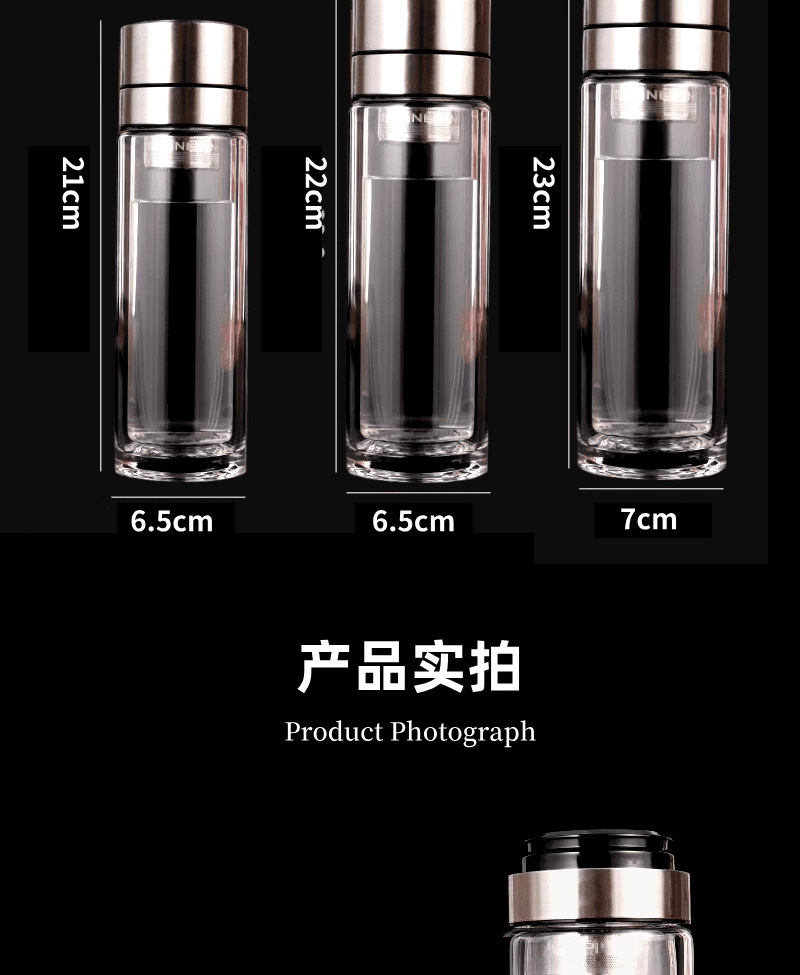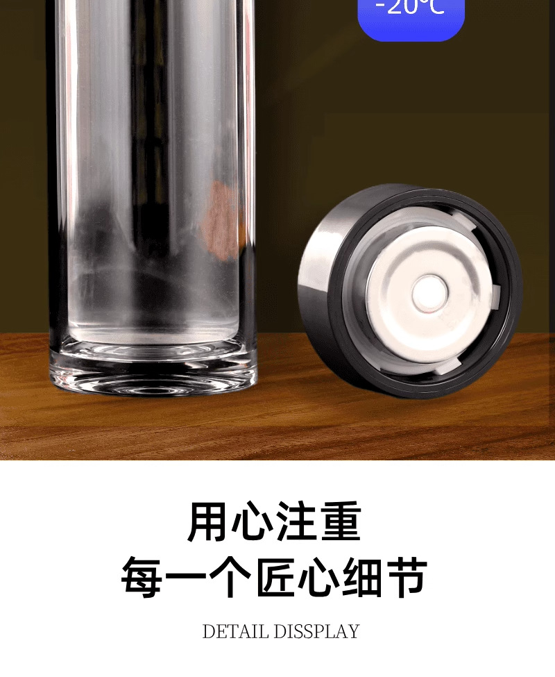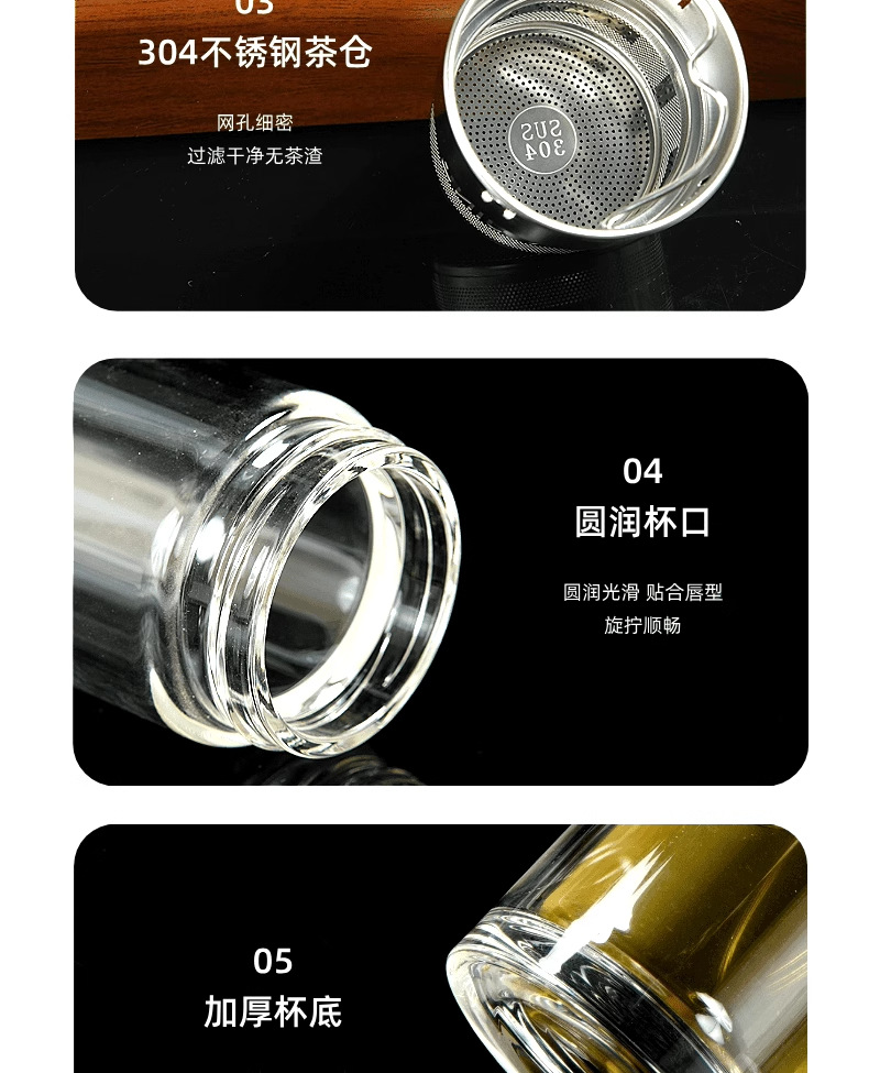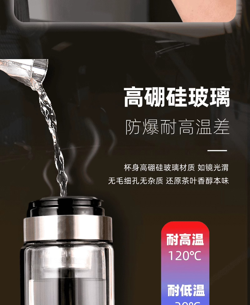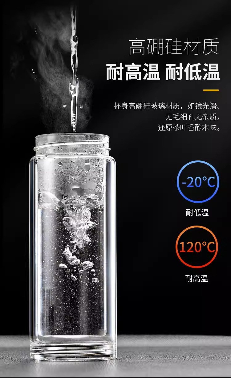 一键开盖车载松月轩大容量双层玻璃杯加厚速开茶水商务杯