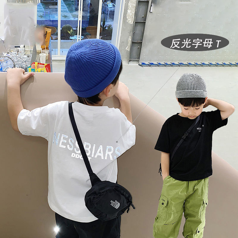 夏季韩版字母印花中小童短袖t恤衫棉质男童女童宽松打底衫上衣服