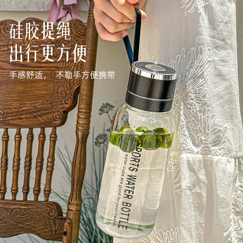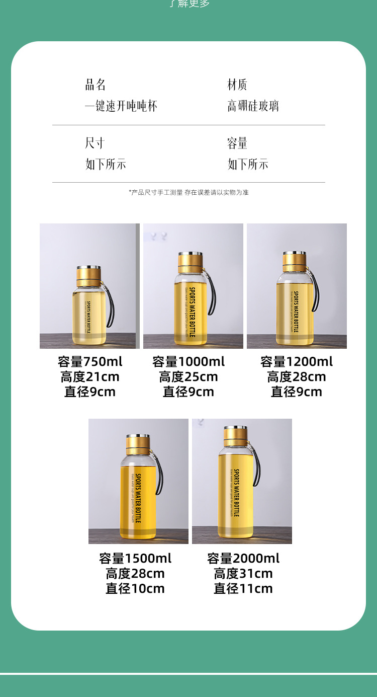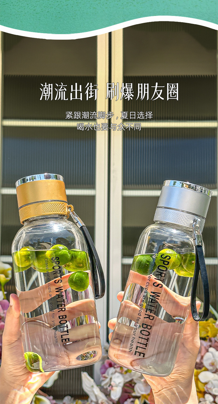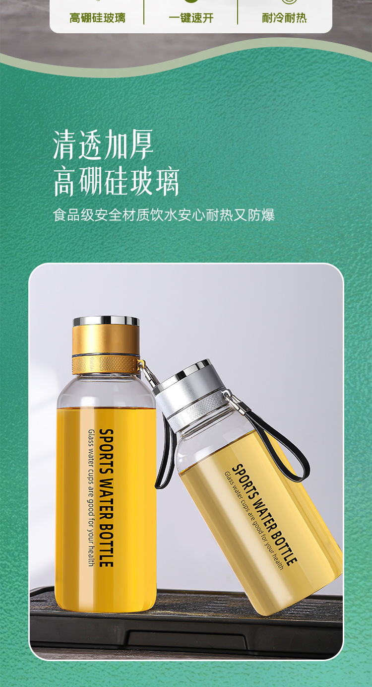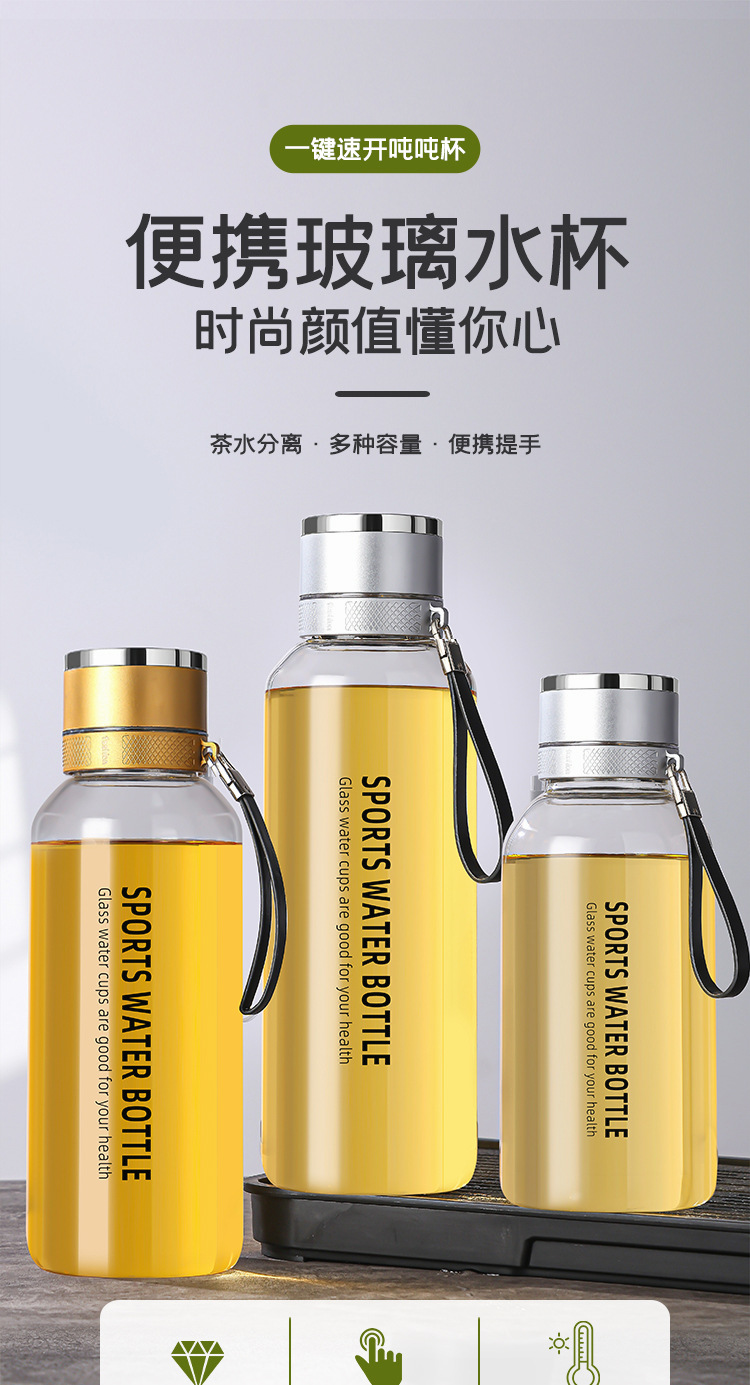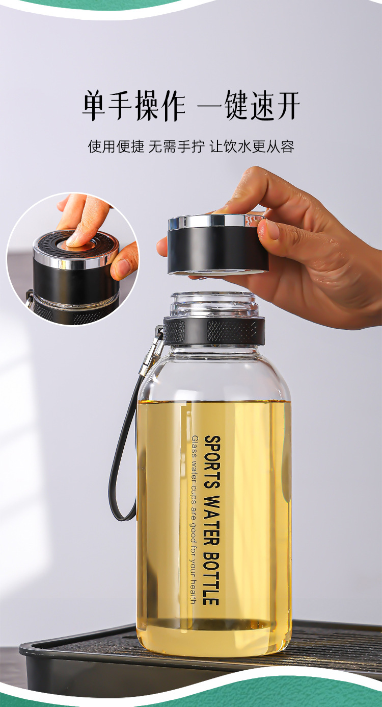 速开吨吨杯高硼硅玻璃斜跨杯套大容量运动水壶一键开盖茶水分离杯