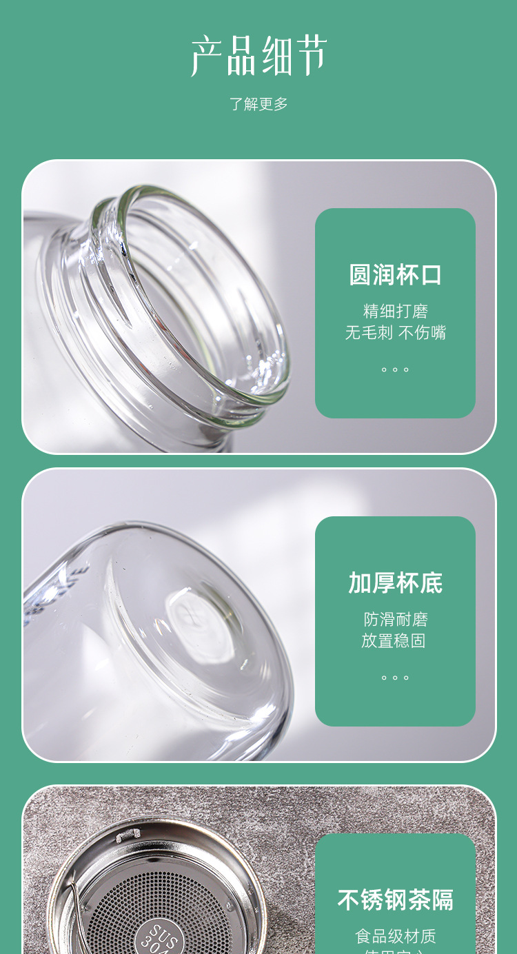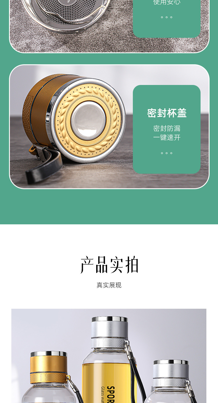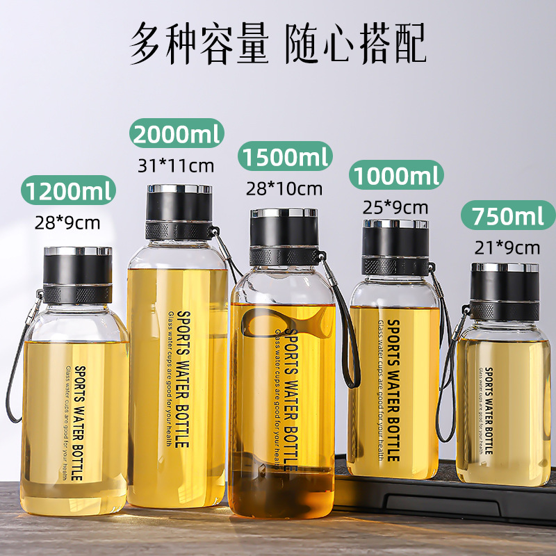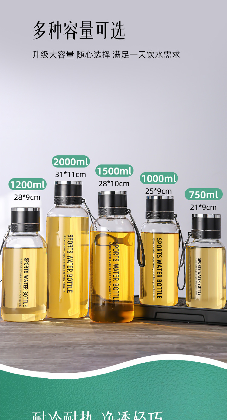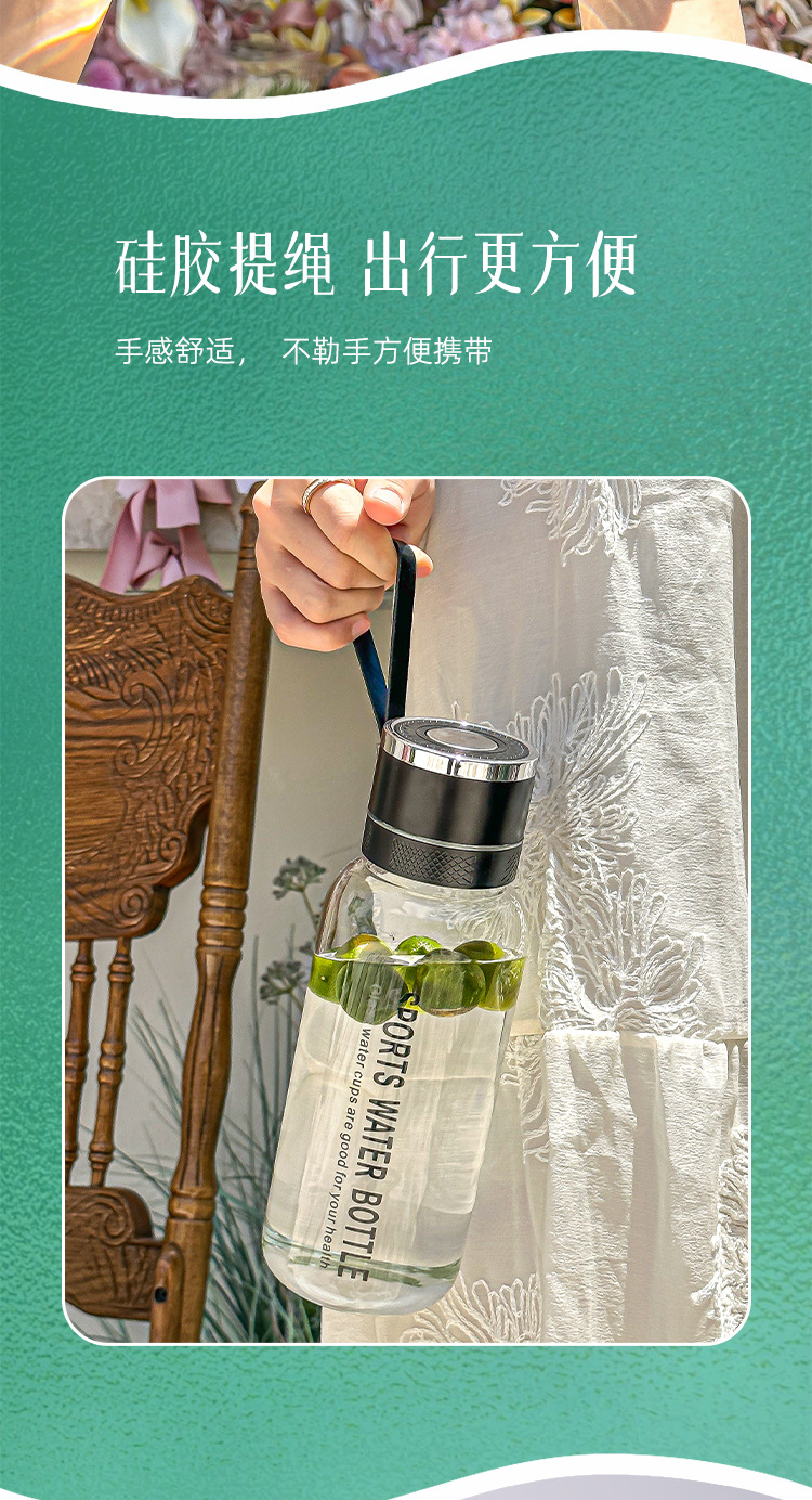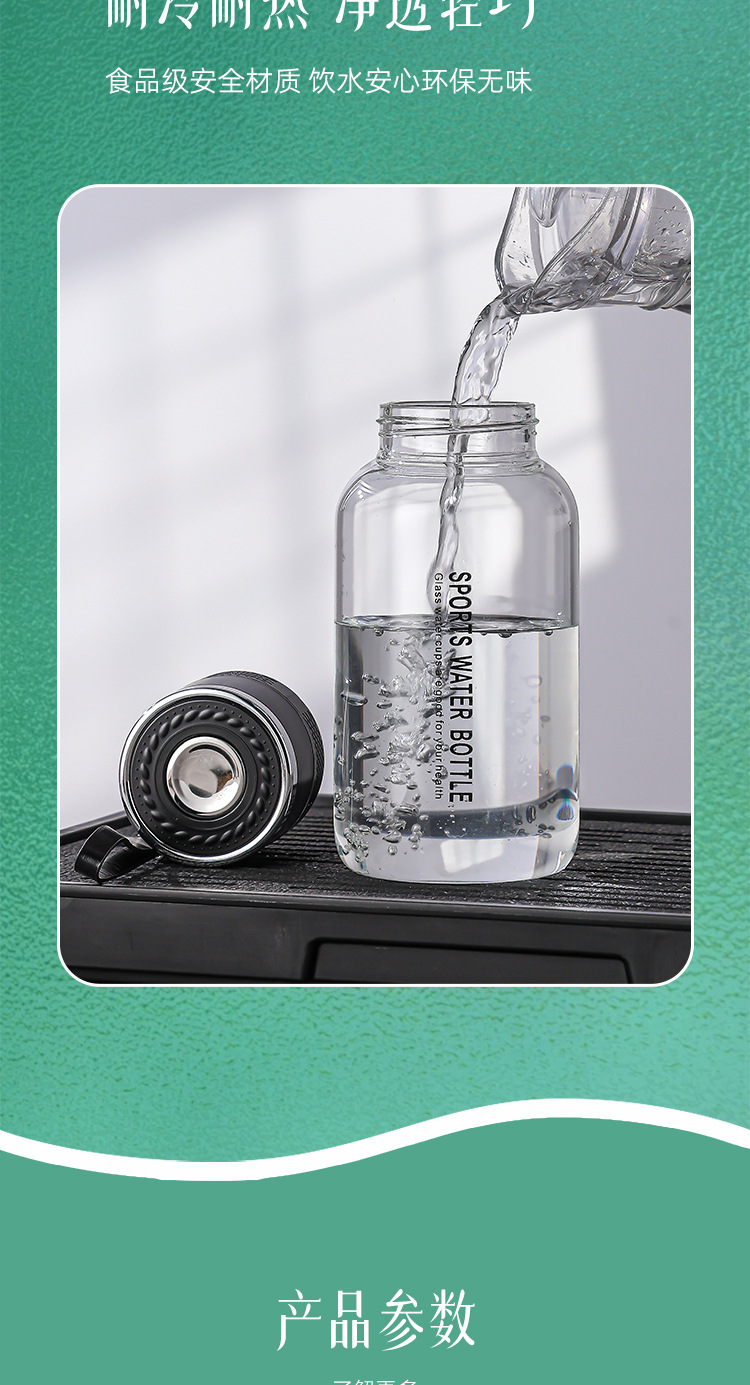 速开吨吨杯高硼硅玻璃斜跨杯套大容量运动水壶一键开盖茶水分离杯
