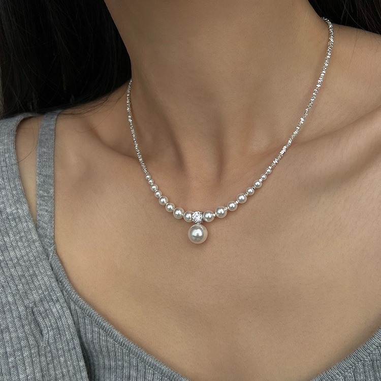 原创施家强光珍珠渐变项链小众设计高级感锁骨链