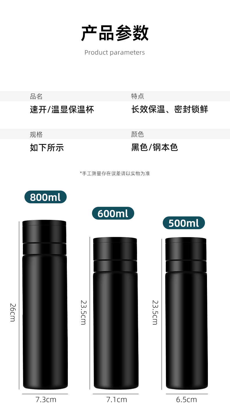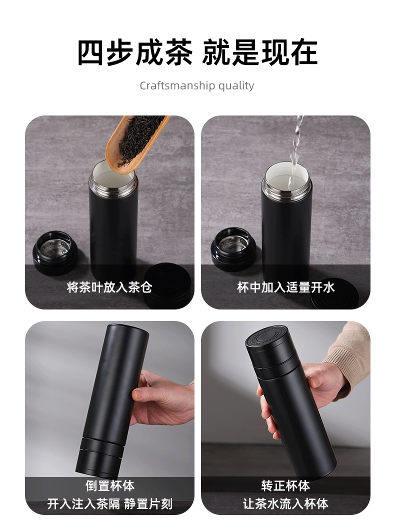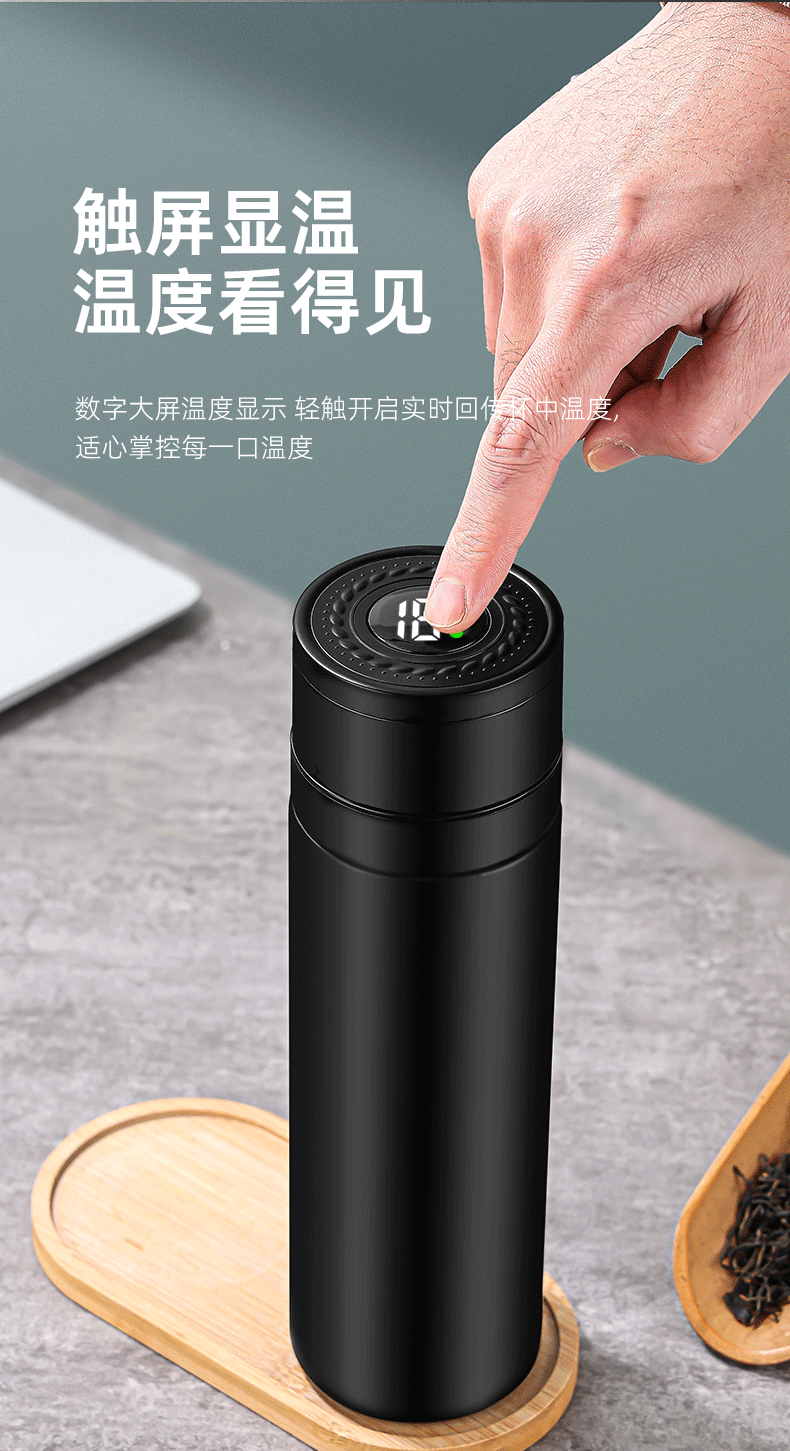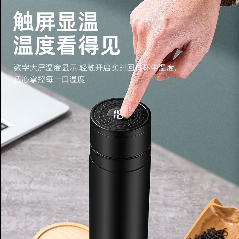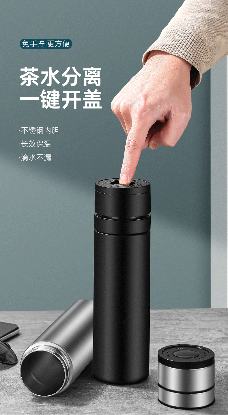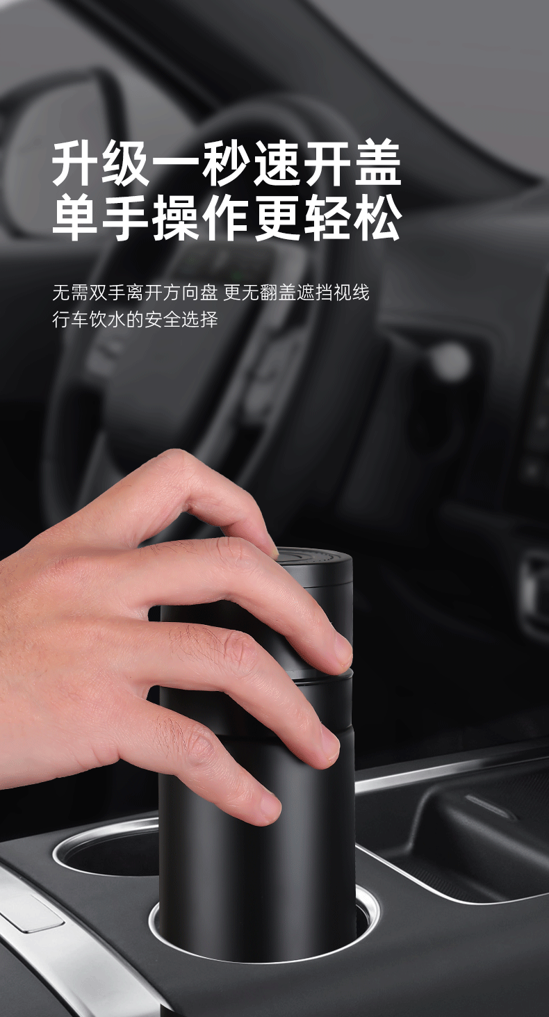 智能显温一键开盖速开保温杯车载泡茶杯子办公室商务茶水分离杯子