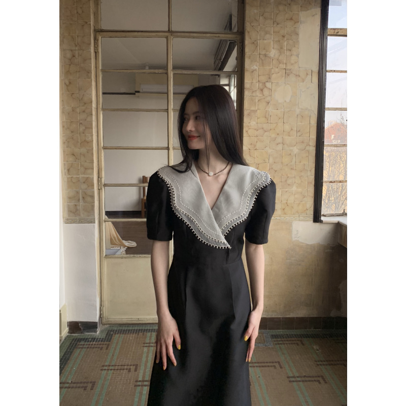 诠释美 NEW OPEN夏季翻领连衣裙女高级感收腰荷叶领裙子81277