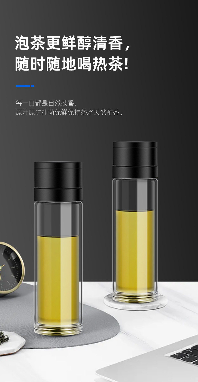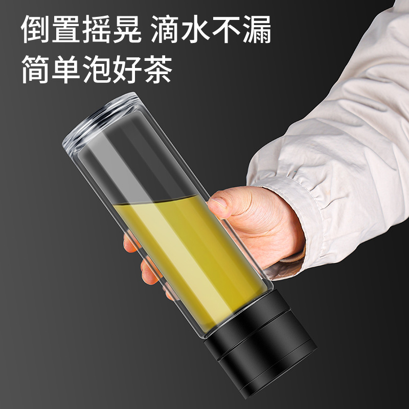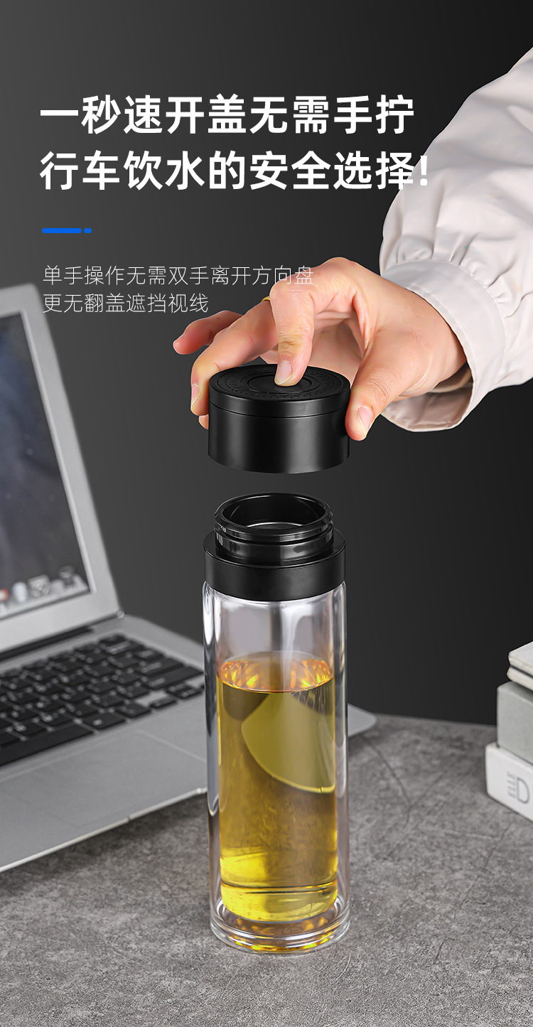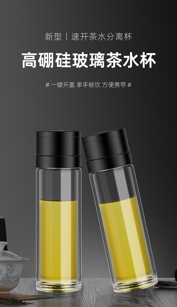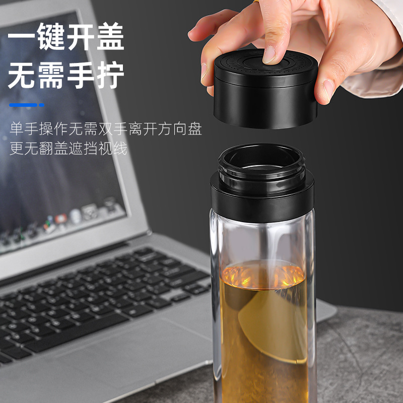 一键开盖显温速开双层玻璃杯高硼硅茶水分离杯子车载办公室泡茶杯