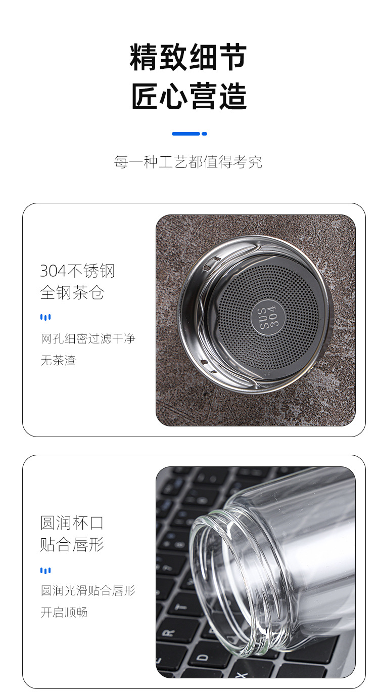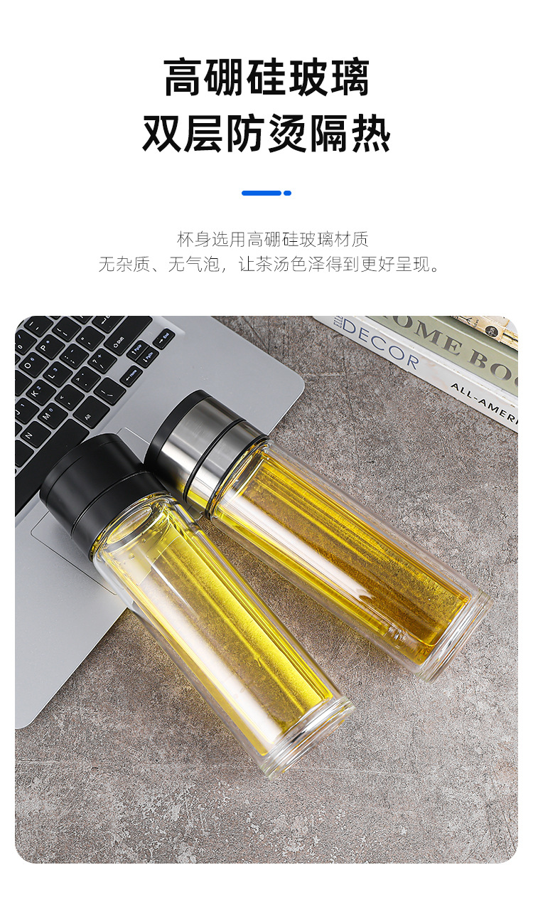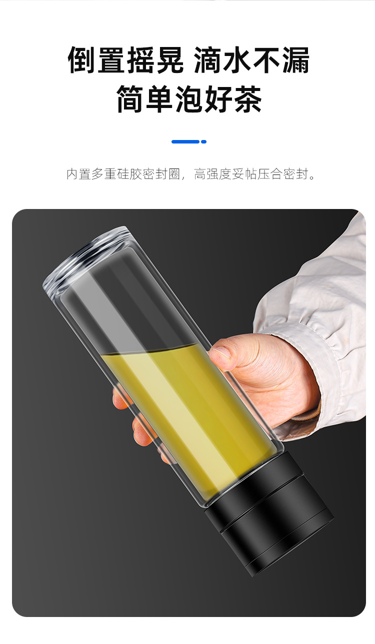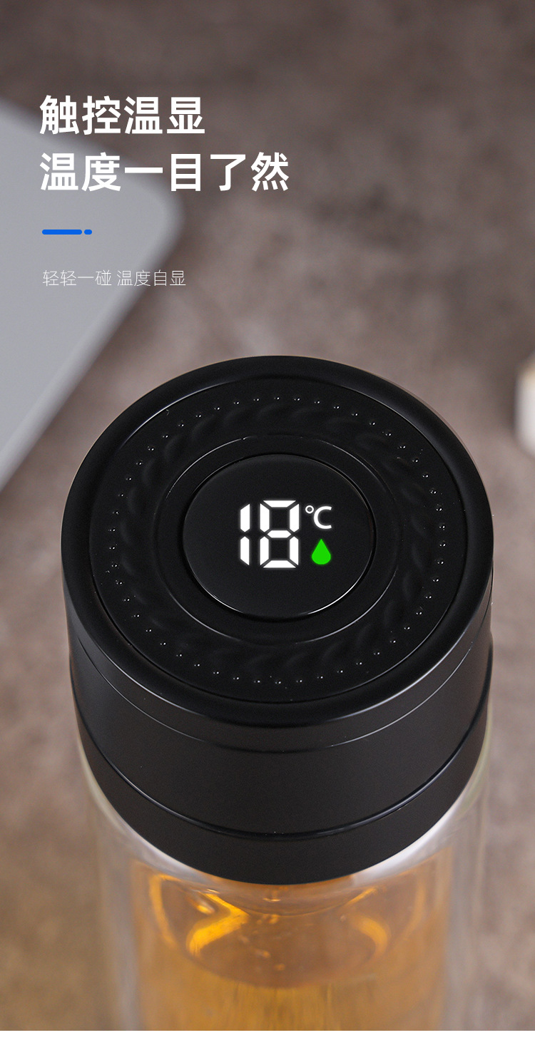 一键开盖显温速开双层玻璃杯高硼硅茶水分离杯子车载办公室泡茶杯