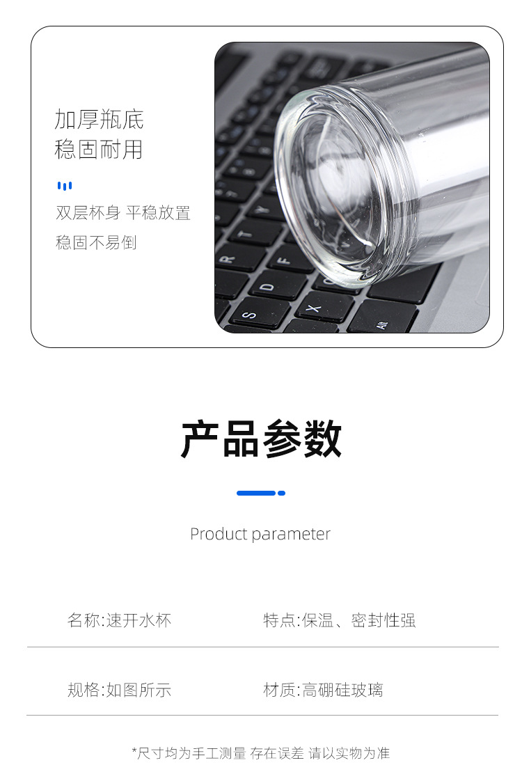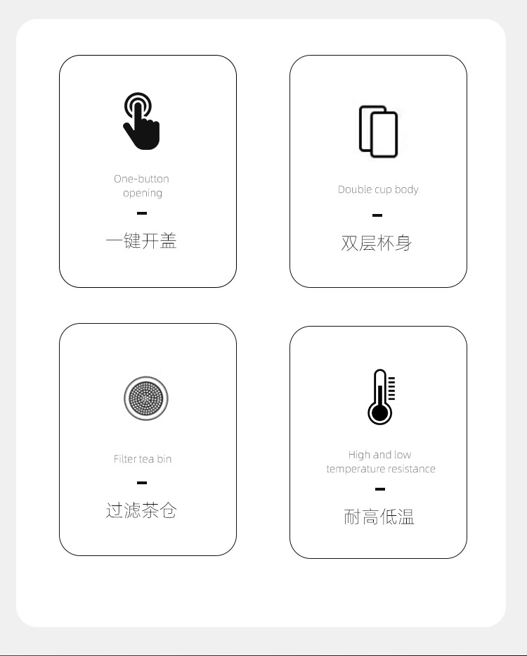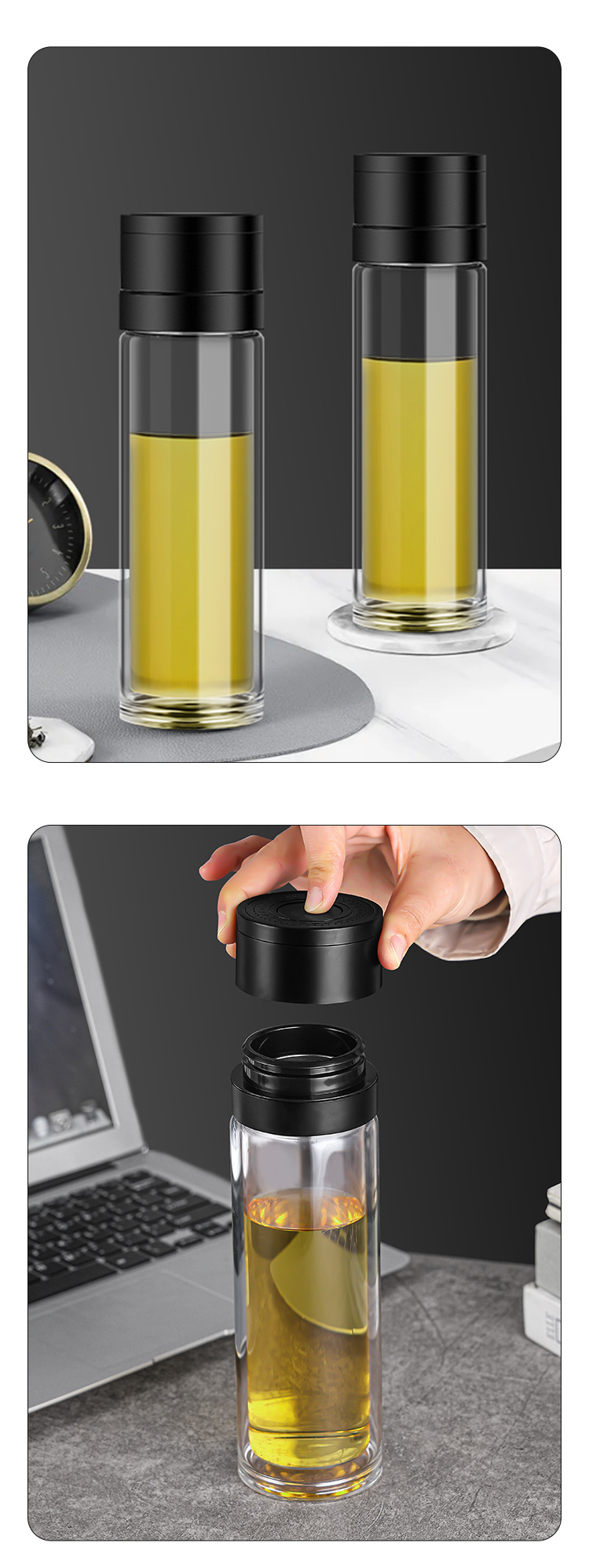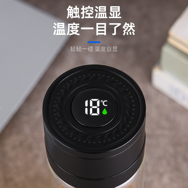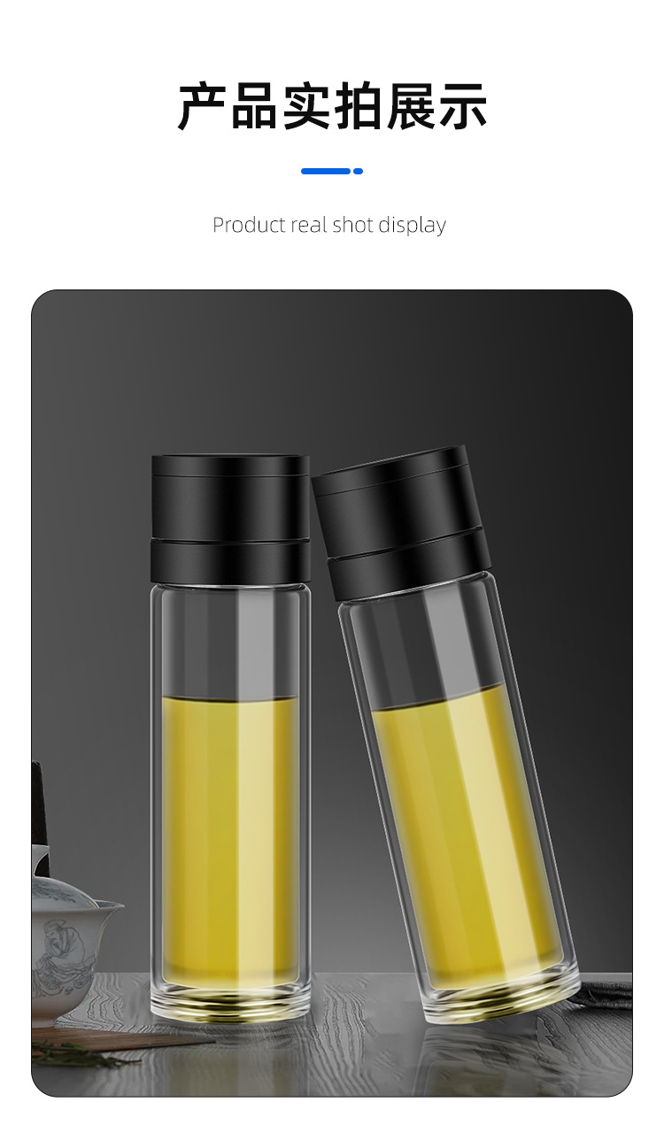 一键开盖显温速开双层玻璃杯高硼硅茶水分离杯子车载办公室泡茶杯