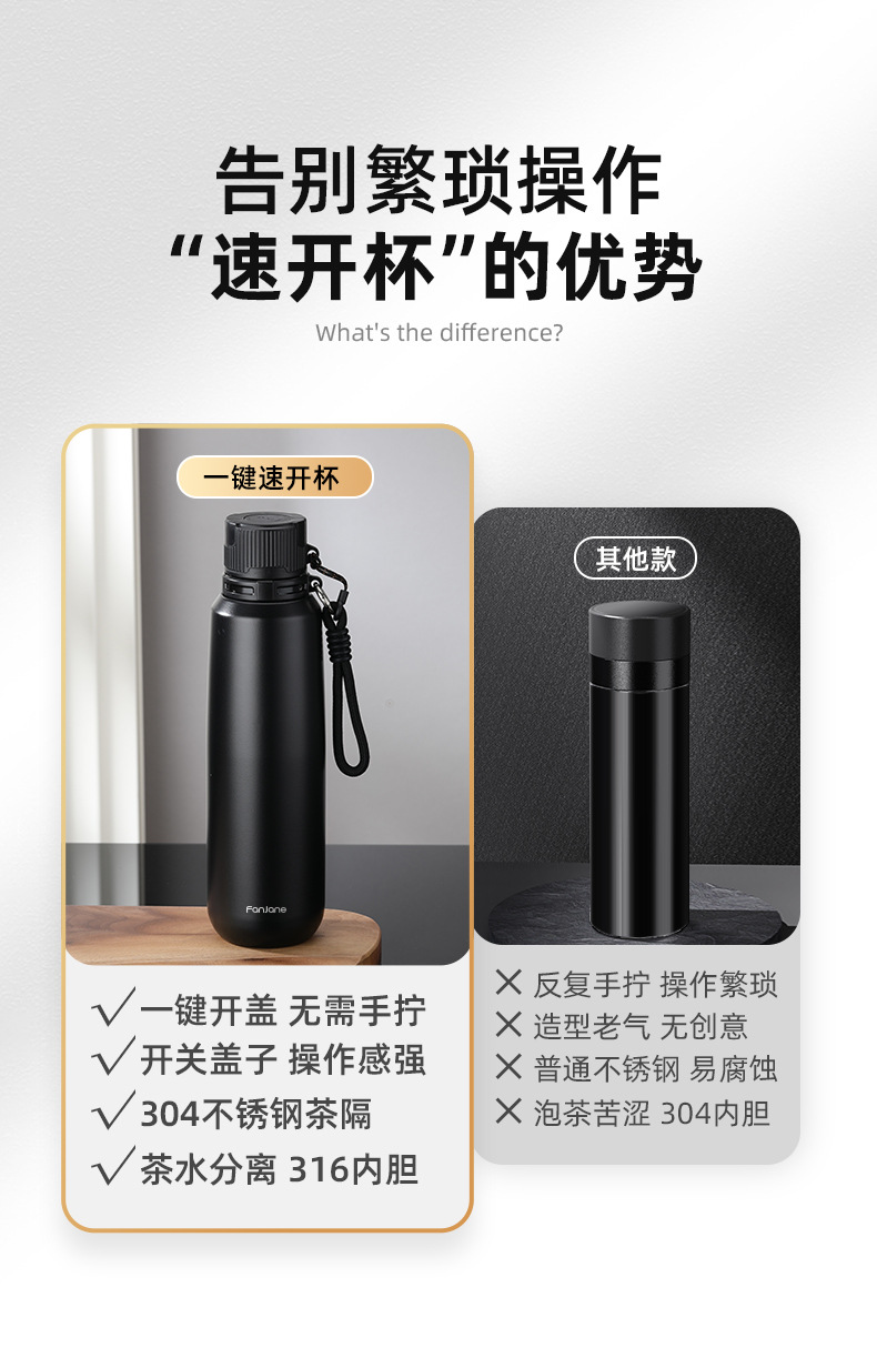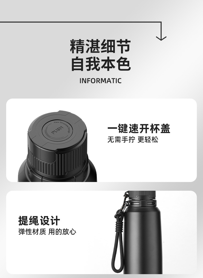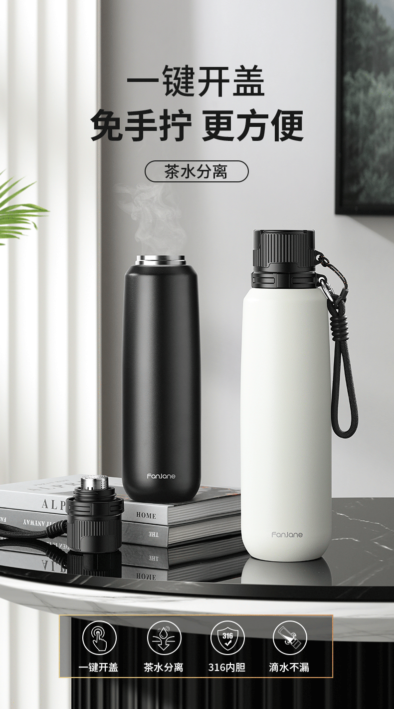一键开盖保温杯男女士316不锈钢大容量运动水杯喝水杯子