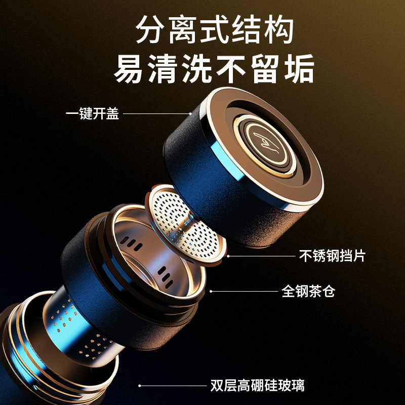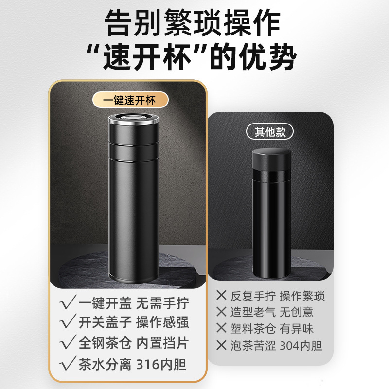 一键开盖保温杯开车男士车载316不锈钢茶水分离泡茶杯子
