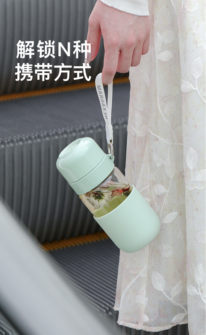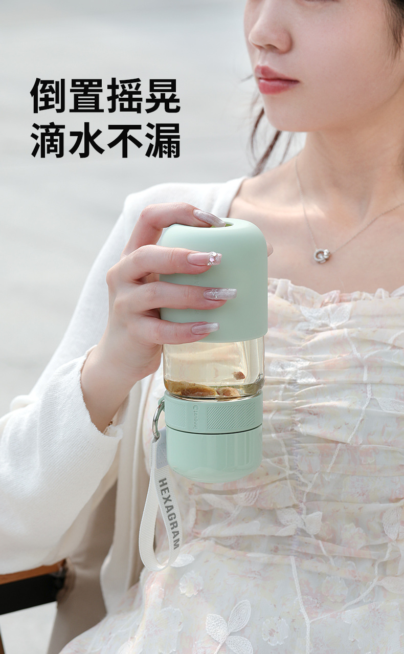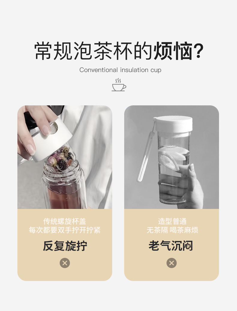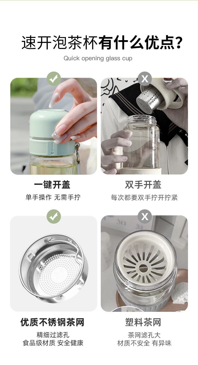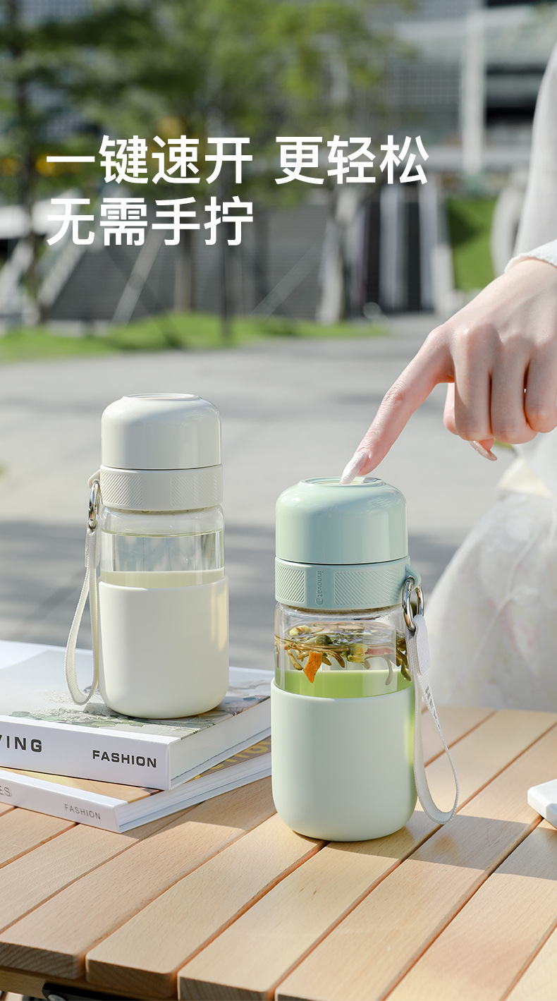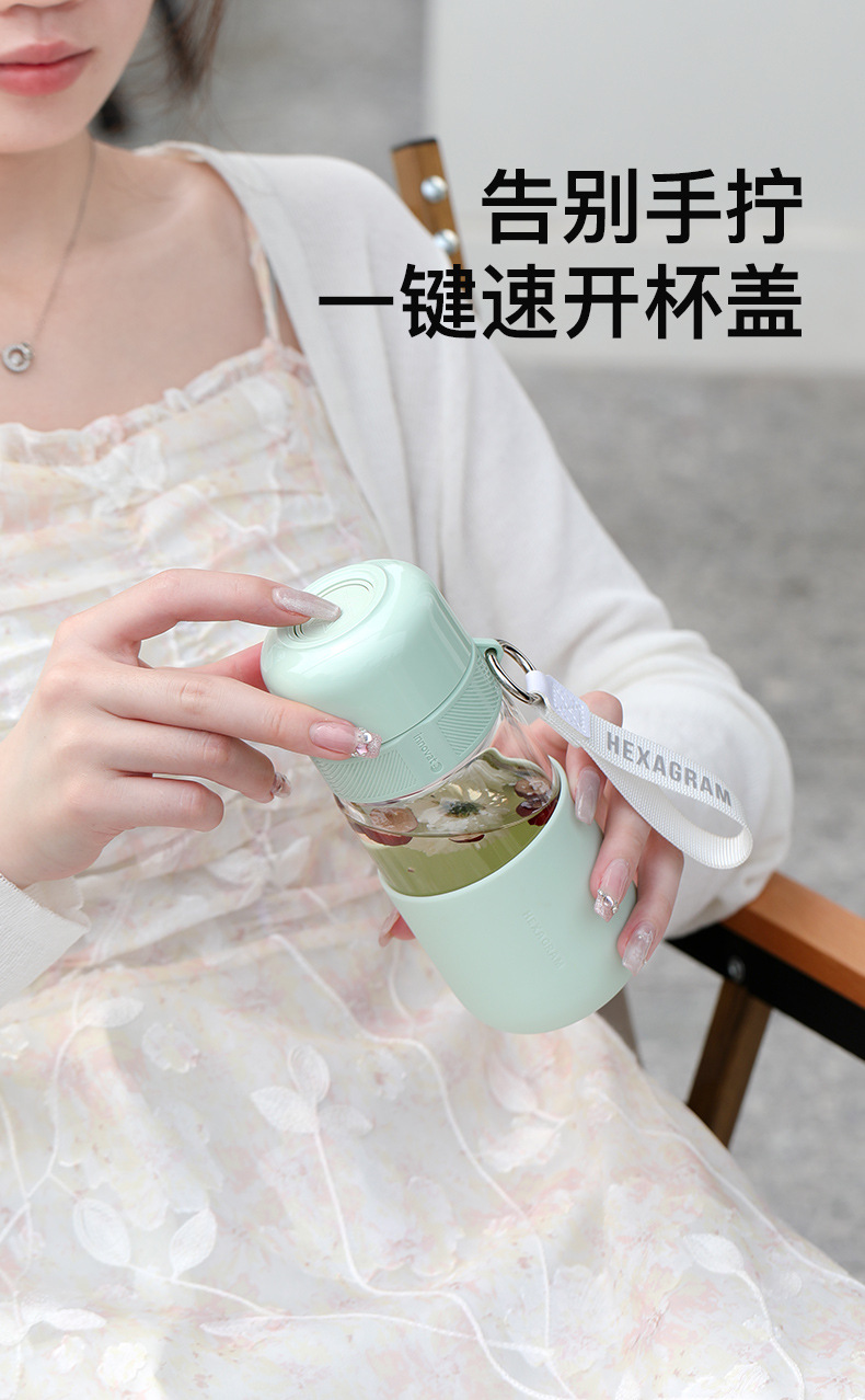 一键开盖速开泡茶杯女茶水分离杯高颜值办公室玻璃杯水杯子
