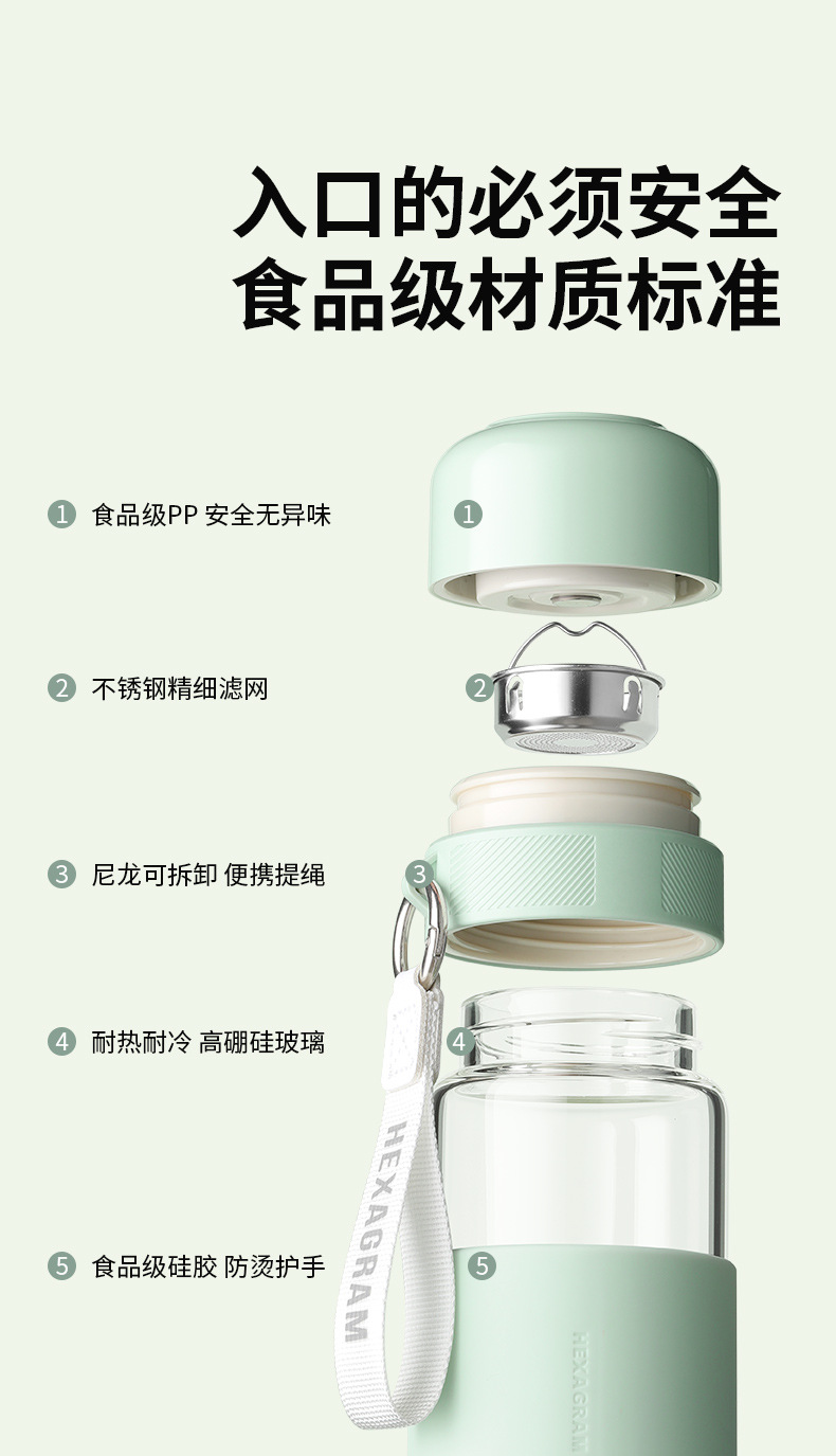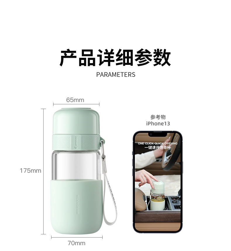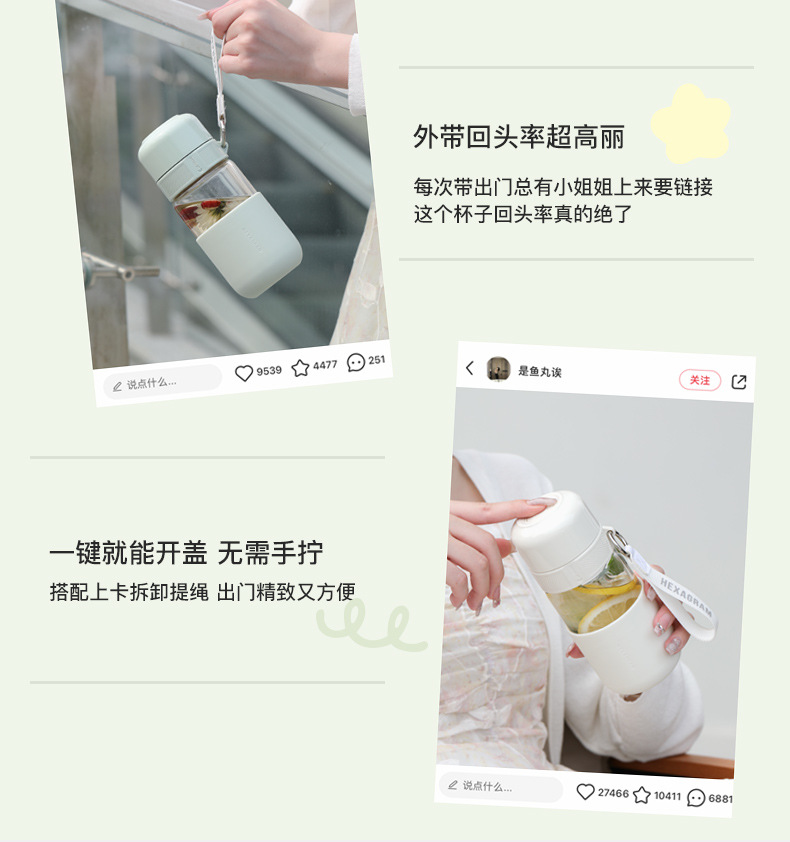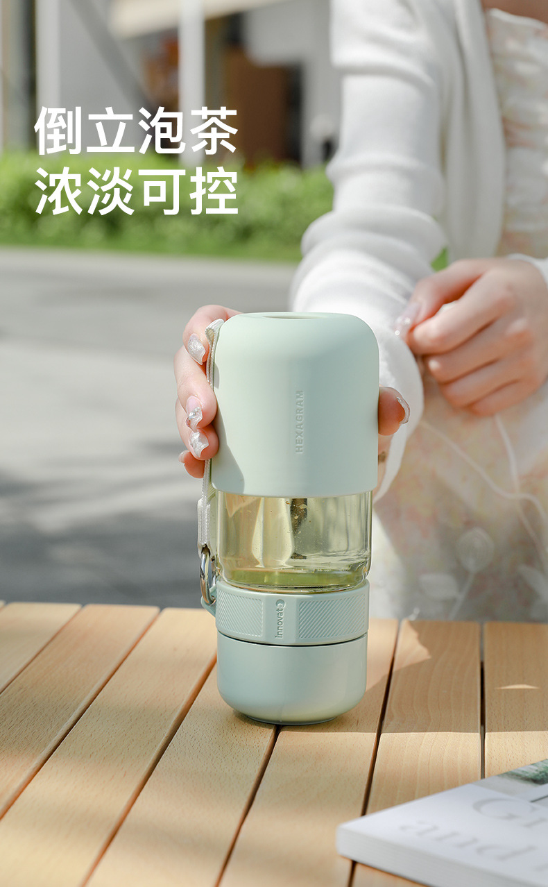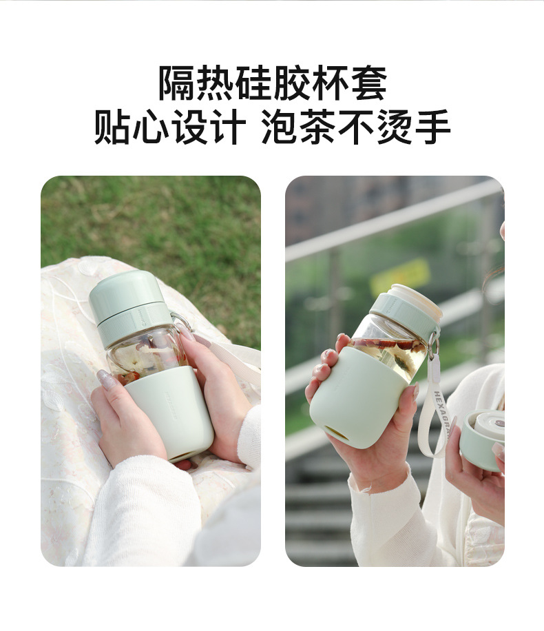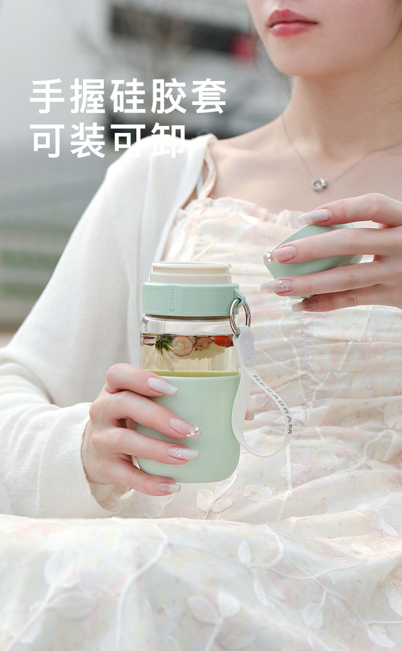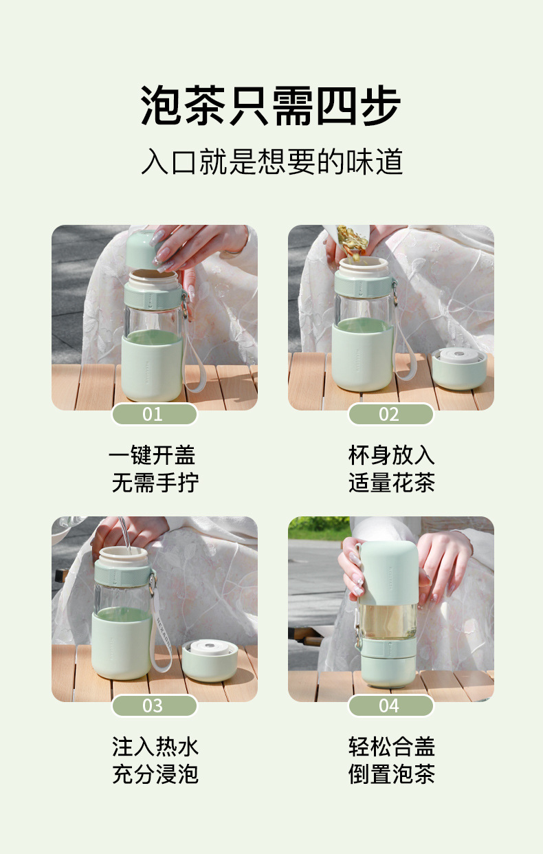 一键开盖速开泡茶杯女茶水分离杯高颜值办公室玻璃杯水杯子