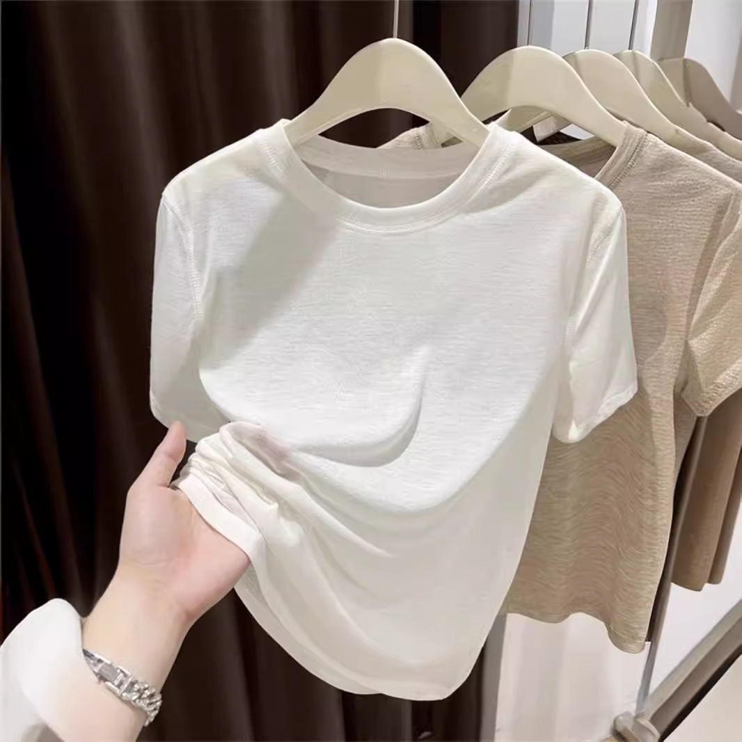 柔软天丝面膜短袖t恤女夏季新款小个子正肩白色薄款冰丝上衣