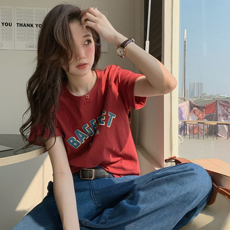 纯棉欧美风短款短袖T恤女甜辣风洋气时髦设计感韩范欧货上衣