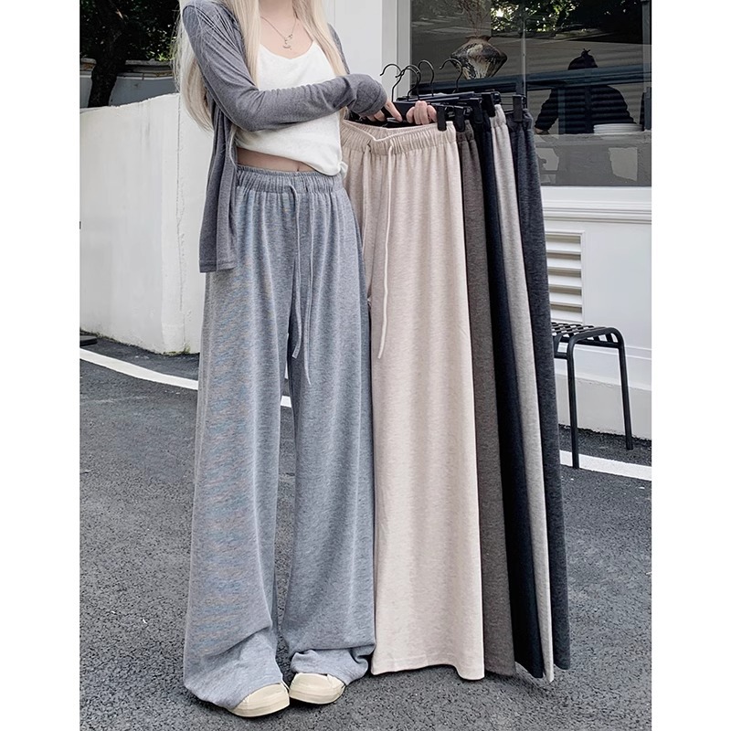 抽绳松紧高腰拖地休闲裤女秋季新款宽松显瘦百搭遛弯垂感长裤