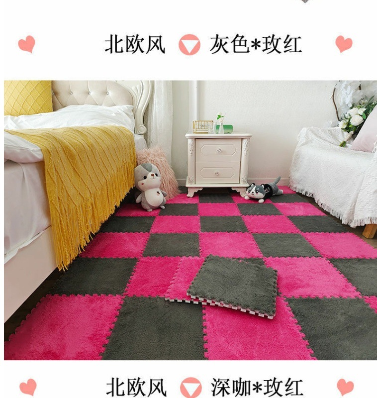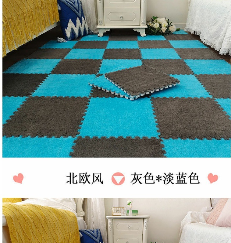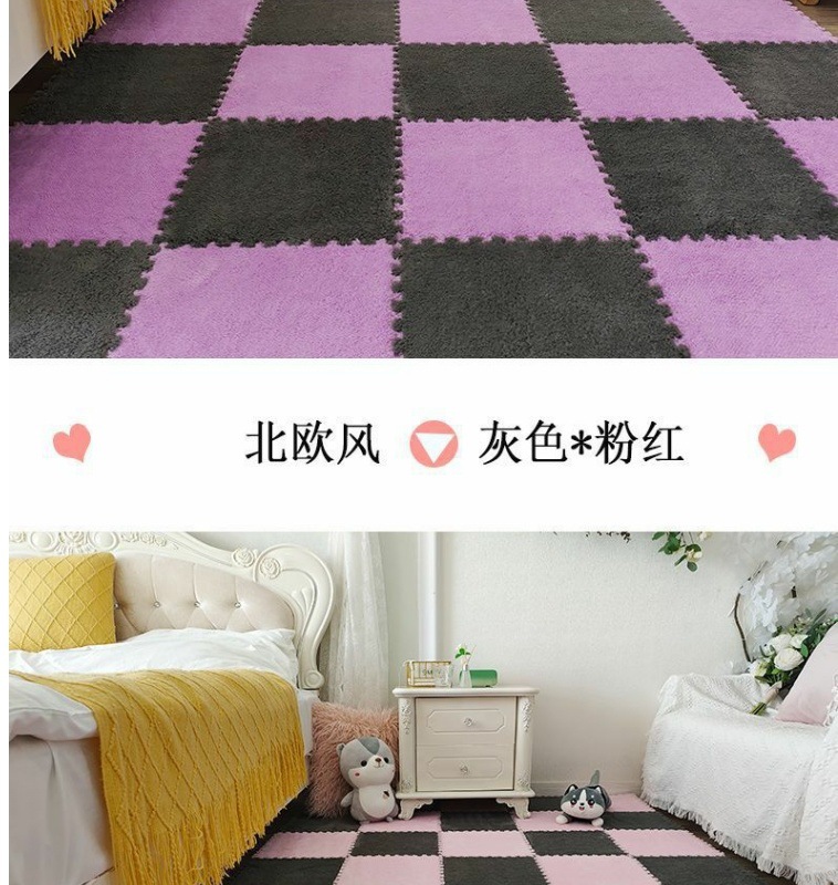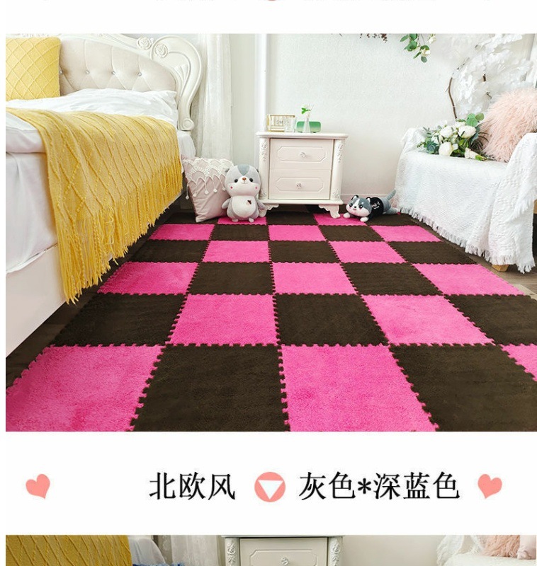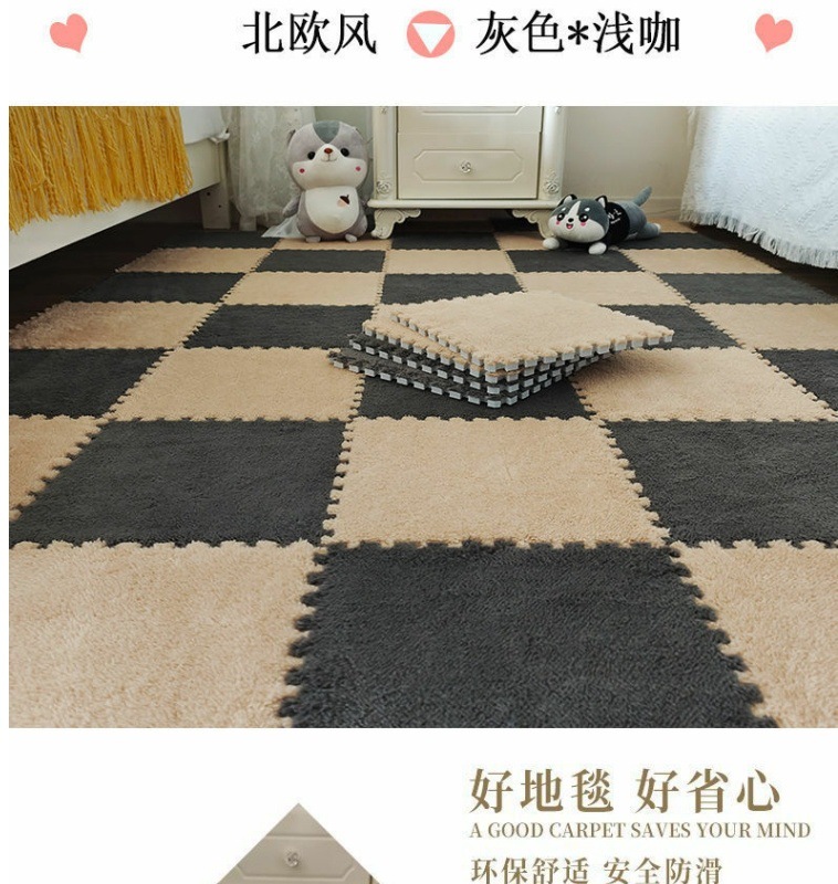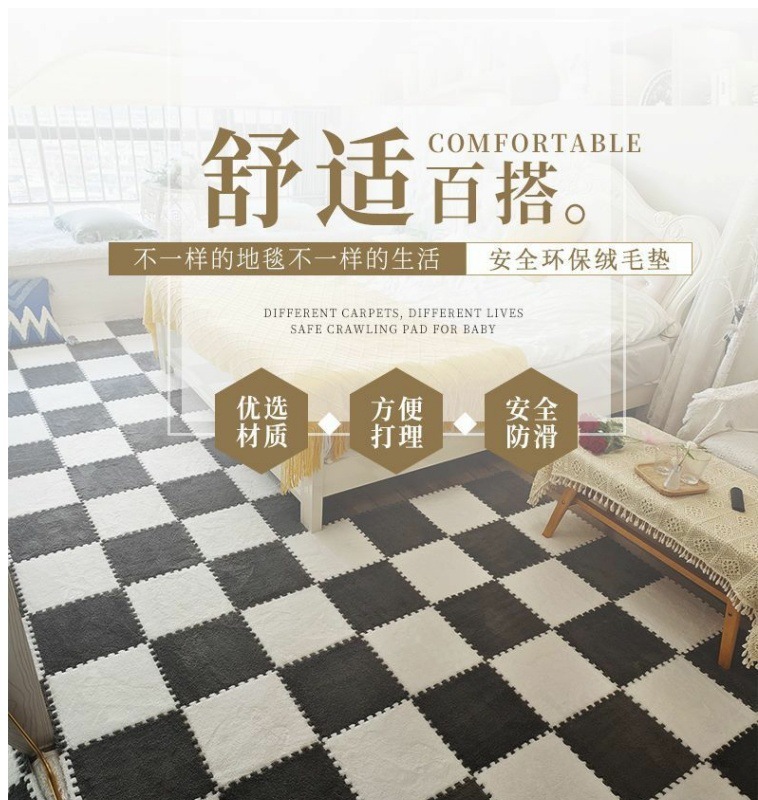毛绒拼接地垫地毯卧室家用植绒床边毯绒面爬爬垫儿童拼图泡沫地垫