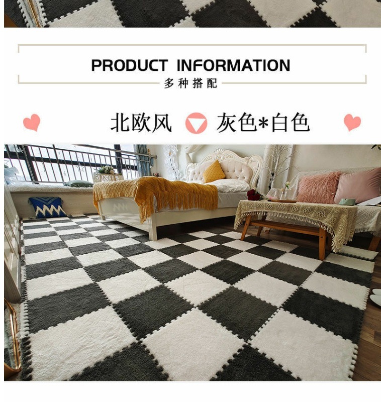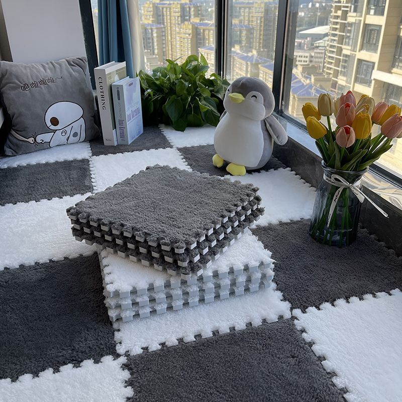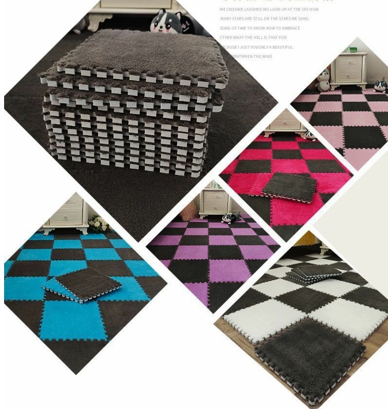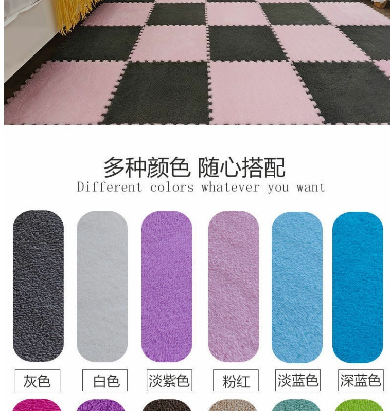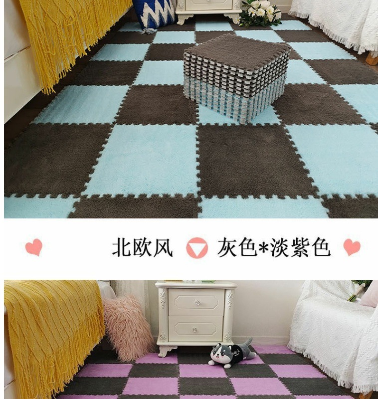 毛绒拼接地垫地毯卧室家用植绒床边毯绒面爬爬垫儿童拼图泡沫地垫