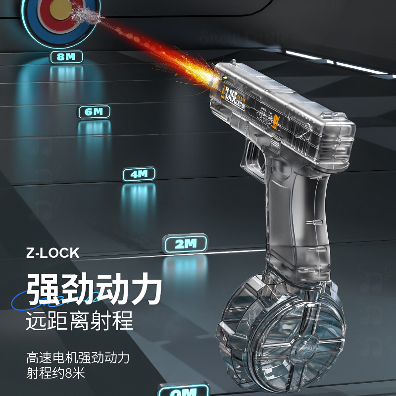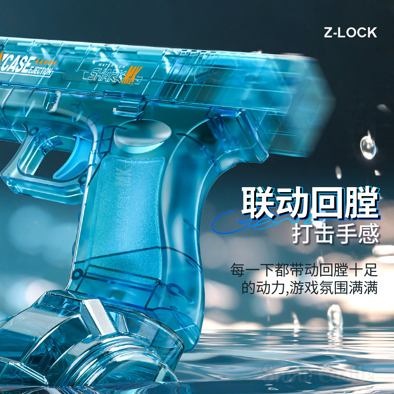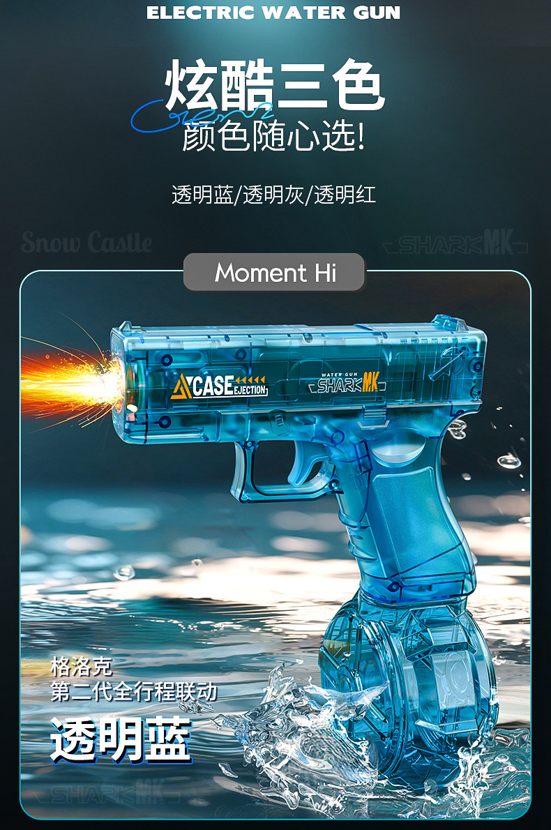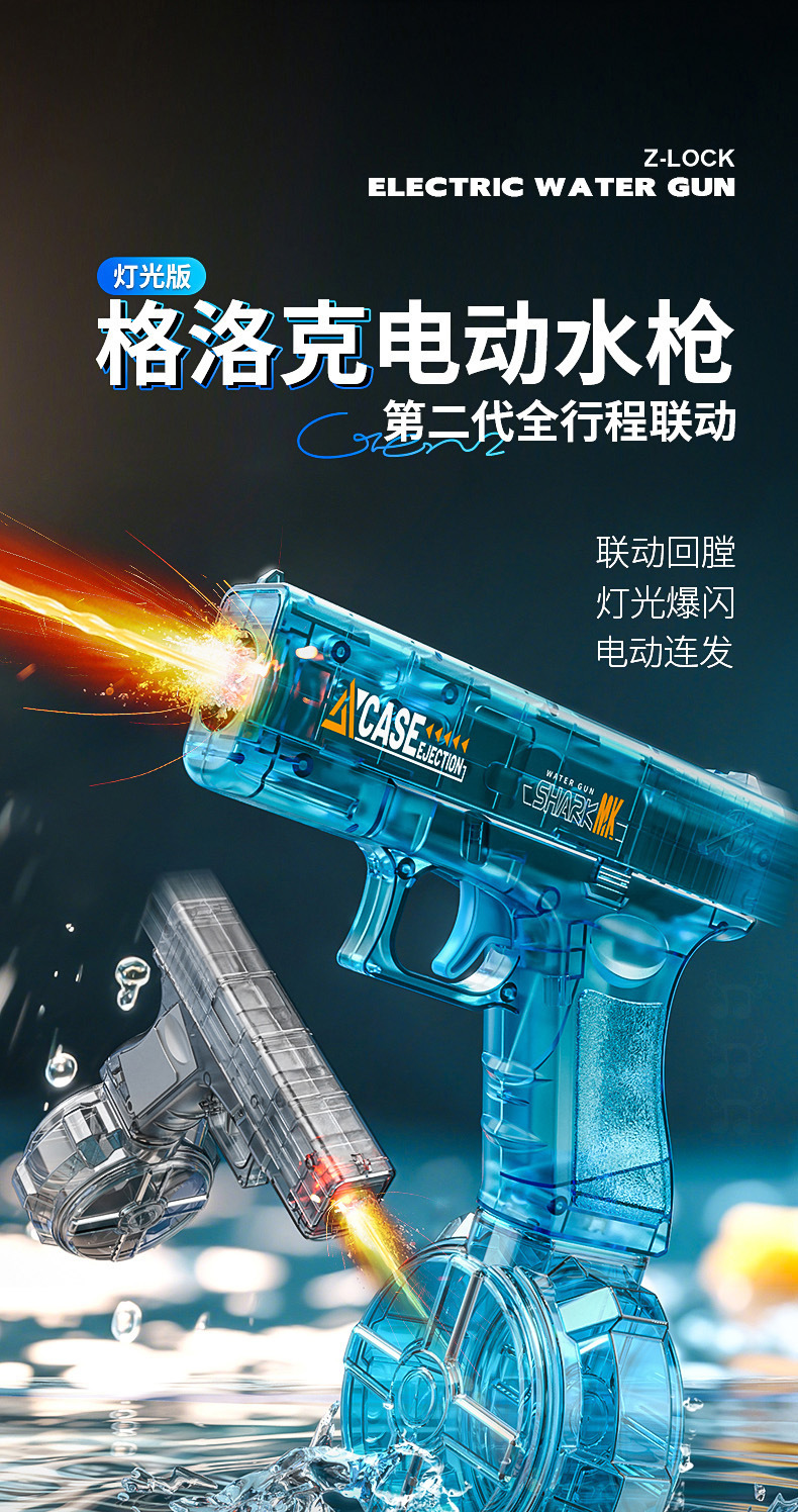 - 【透明蓝-喷火版】高速联动格洛克水枪(英文彩盒)