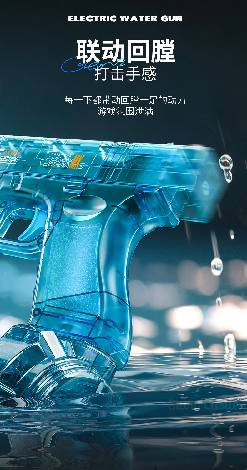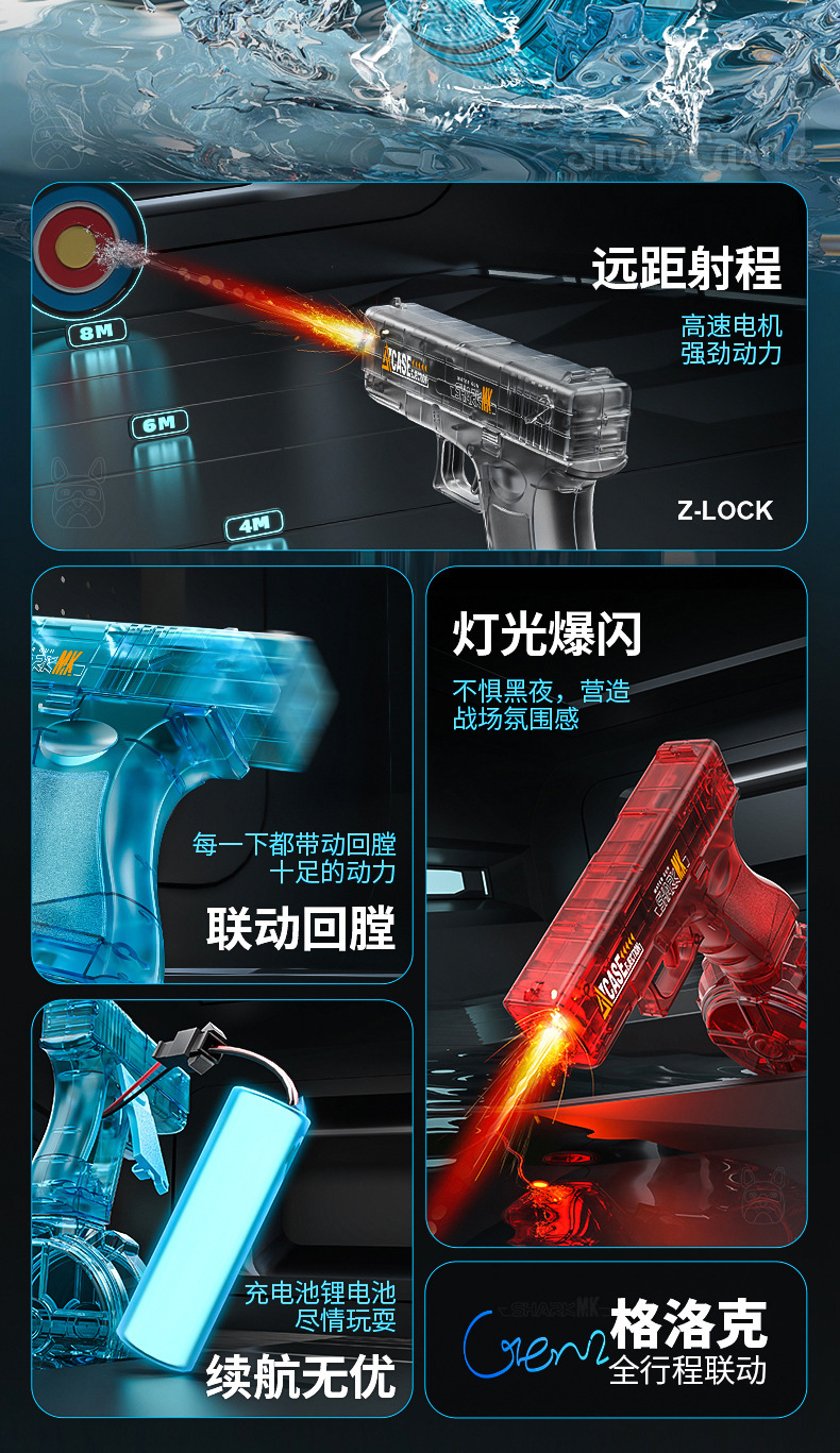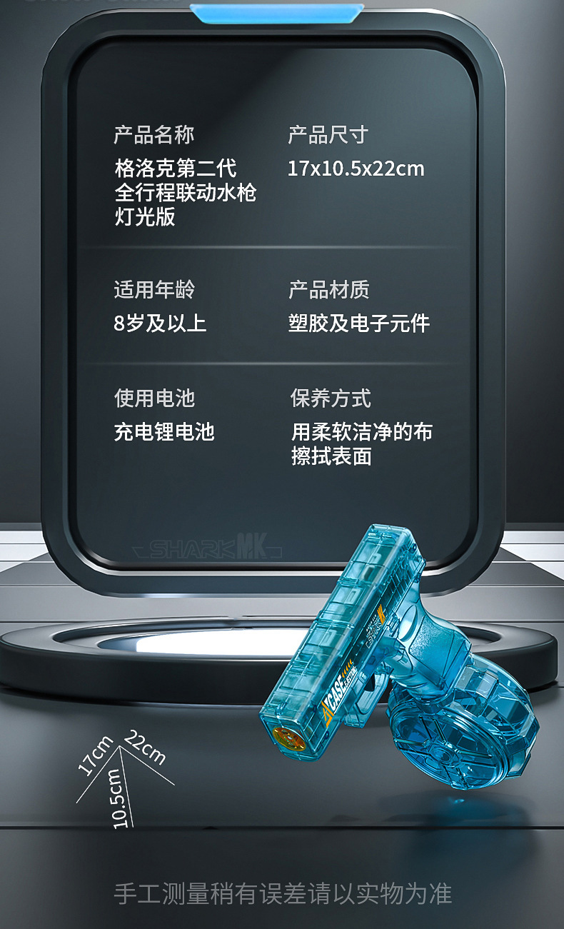 - 【透明蓝-喷火版】高速联动格洛克水枪(英文彩盒)