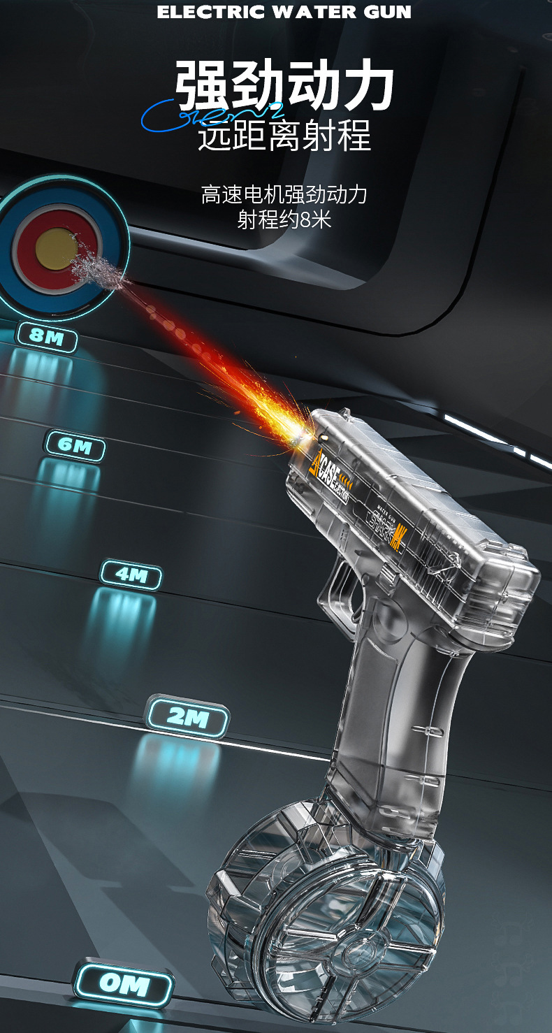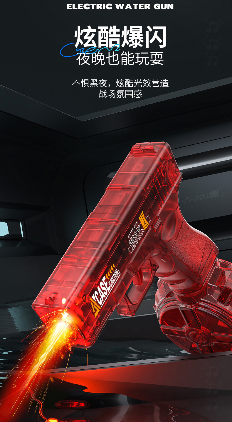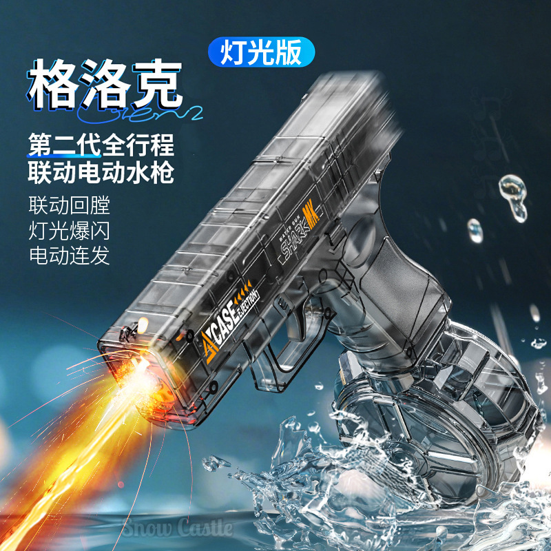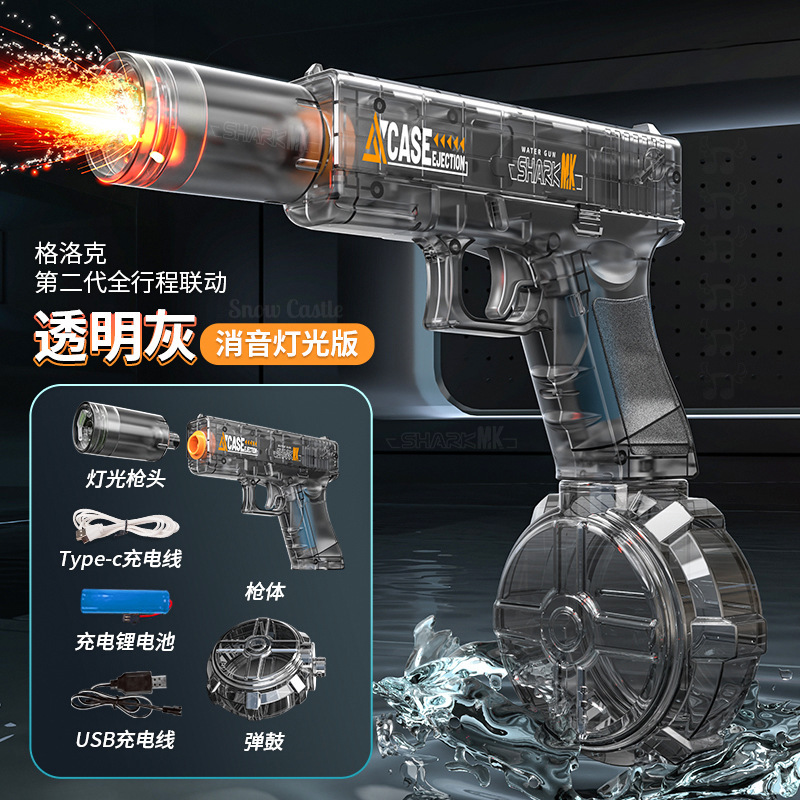 透明格洛克电动水枪灯光喷火大容量高速联动连发儿童男孩玩具