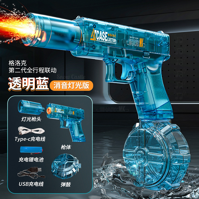 - 【透明蓝-消音喷火版】高速联动格洛克水枪(英文彩盒)
