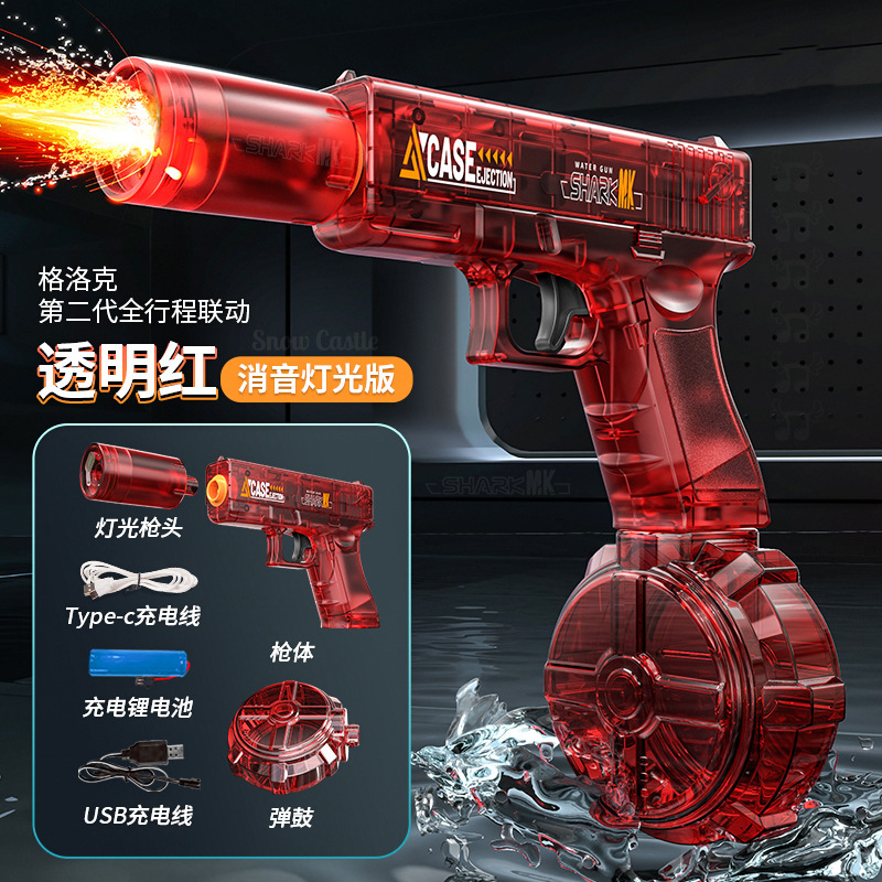 - 【透明红-消音喷火版】高速联动格洛克水枪(英文彩盒)