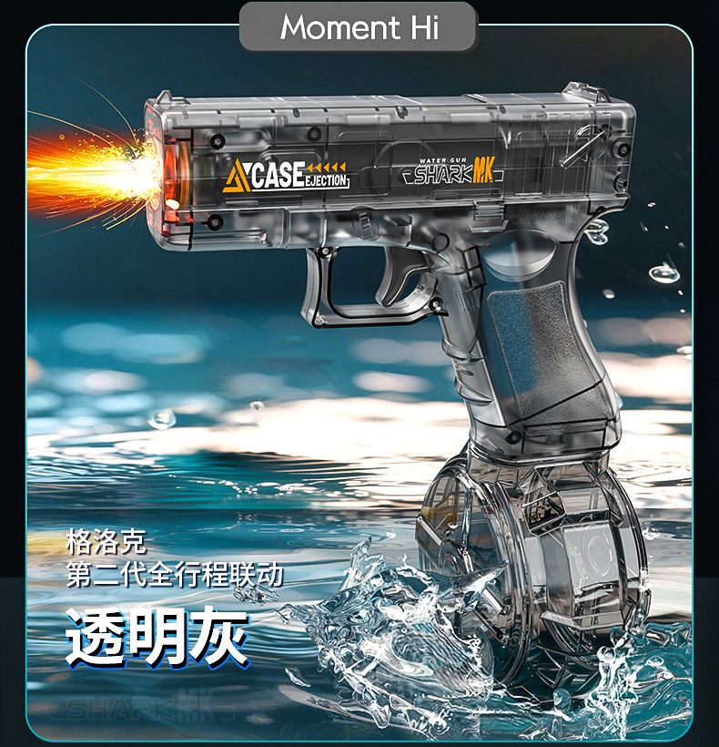 - 【透明黑-消音喷火版】高速联动格洛克水枪(英文彩盒)